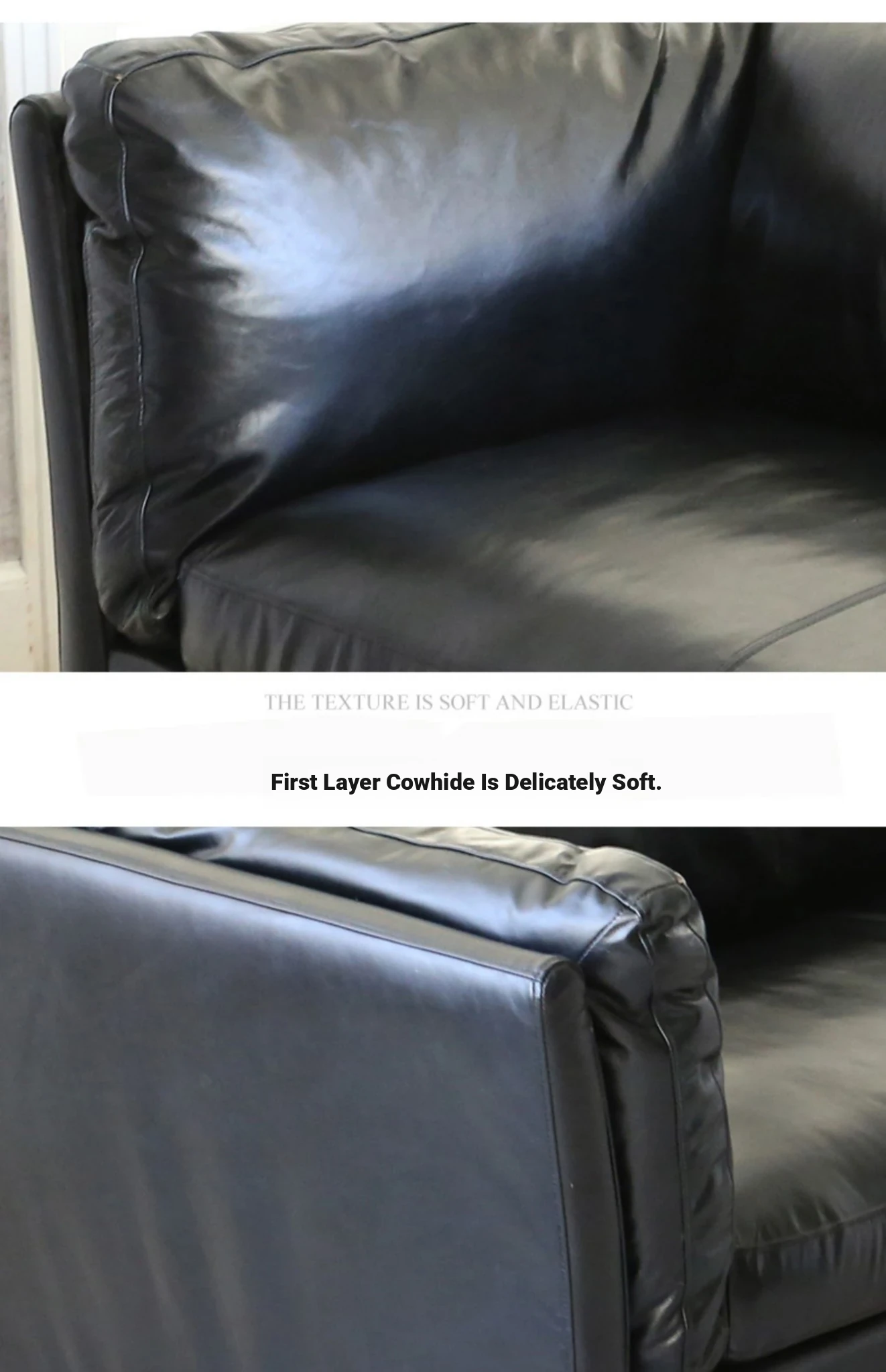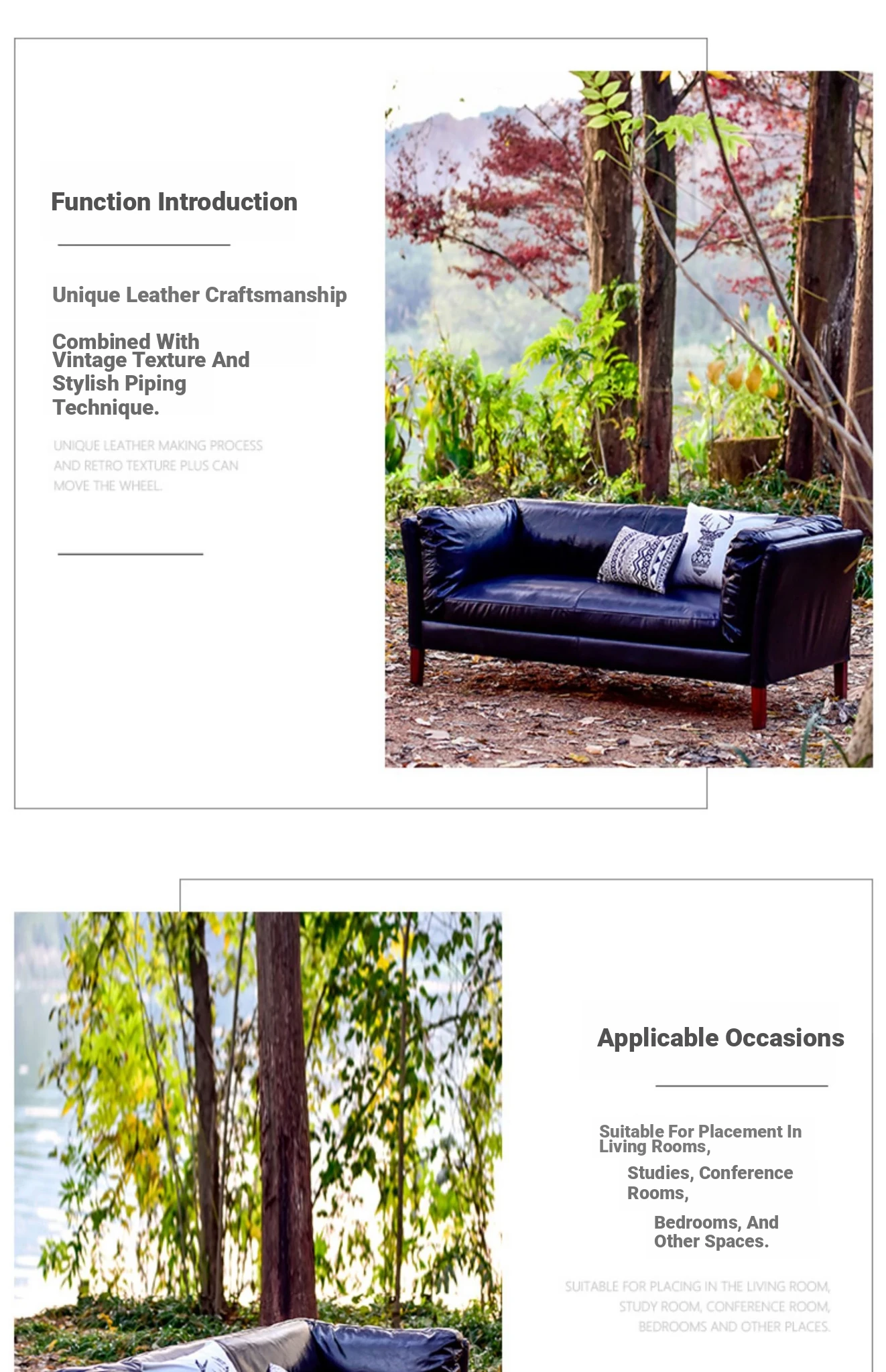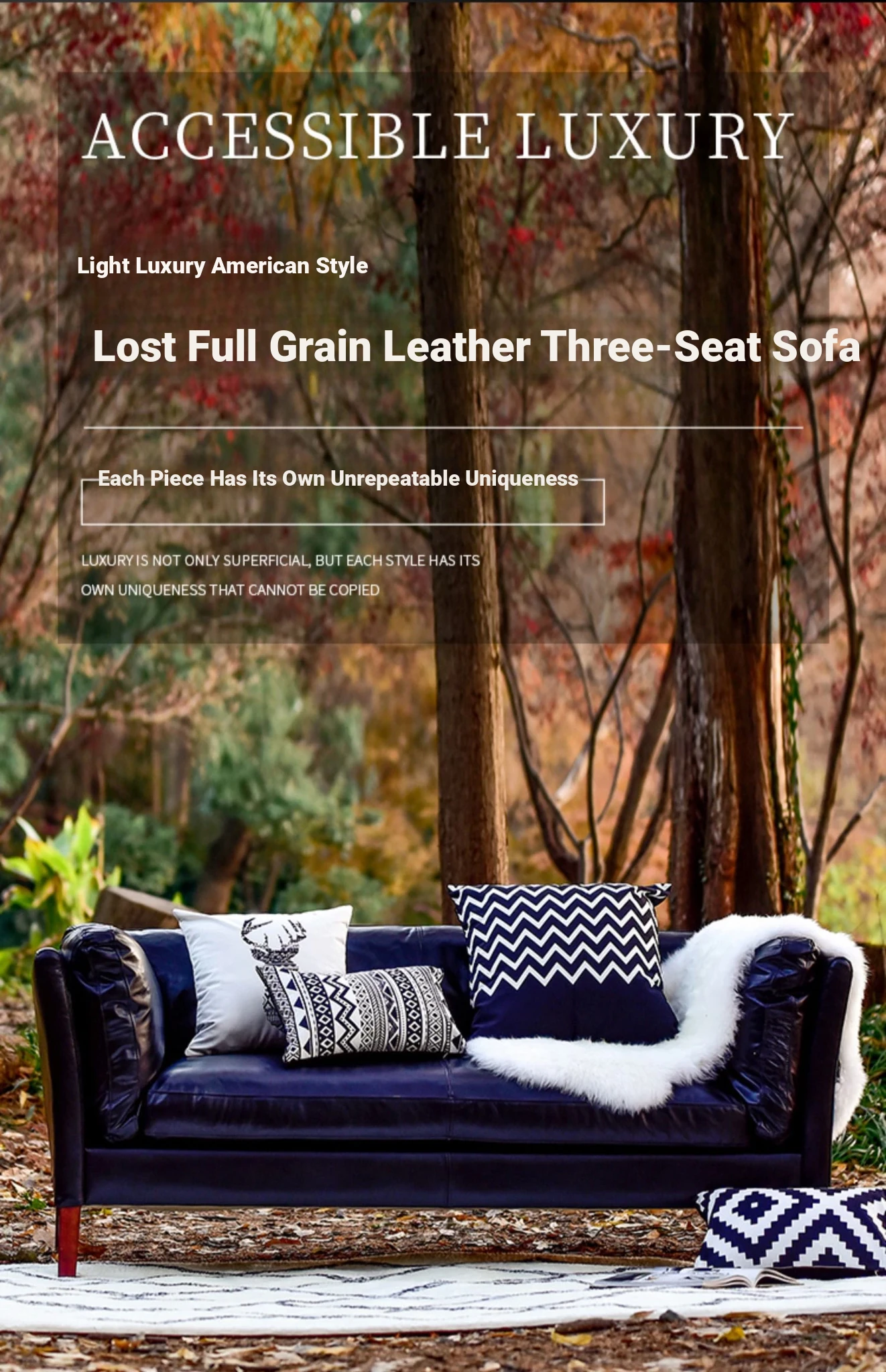 Modern American Country Genuine Leather Sofa - Top Grain Cowhide Upholstered for Office and Living Room, Stylish and Durable Furniture Piece for Home Use