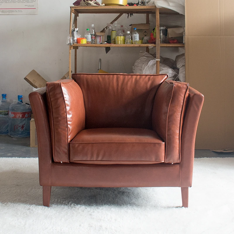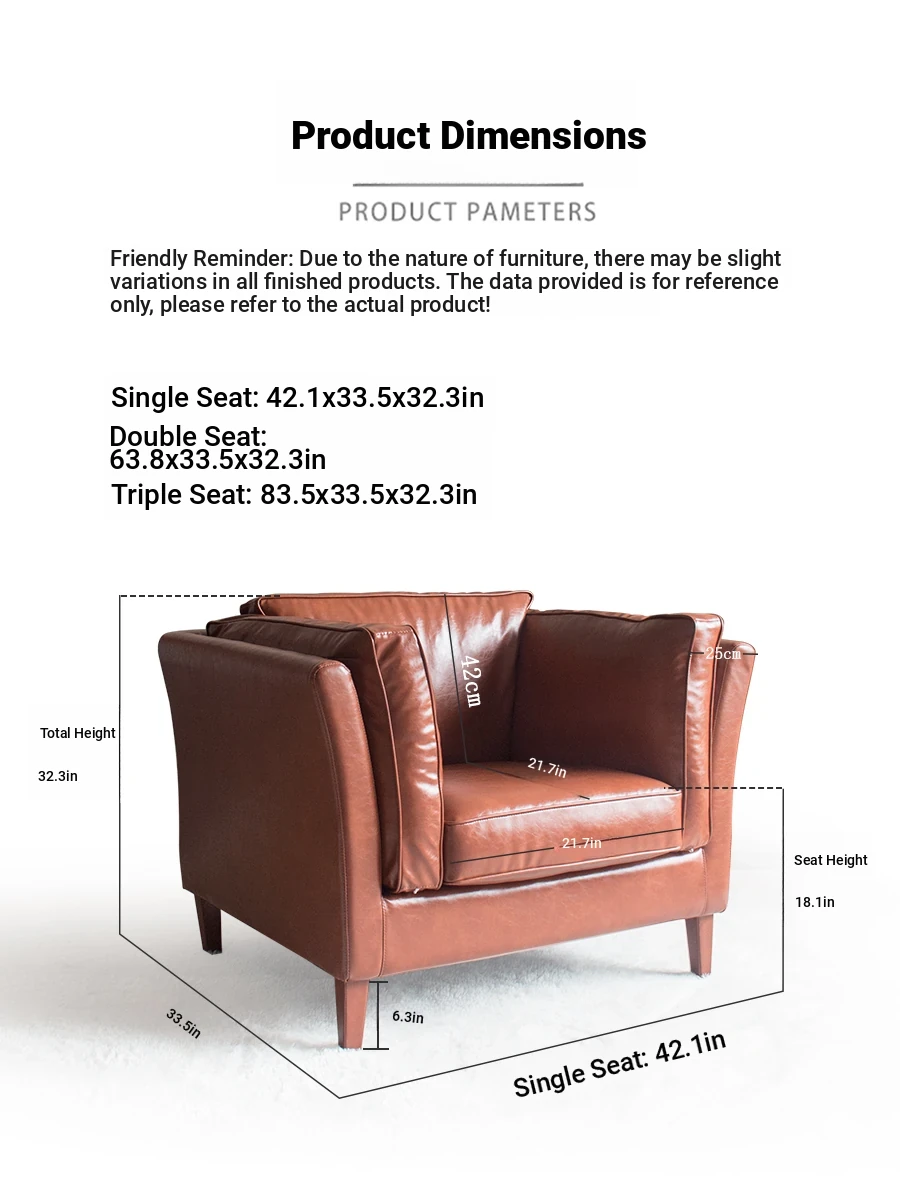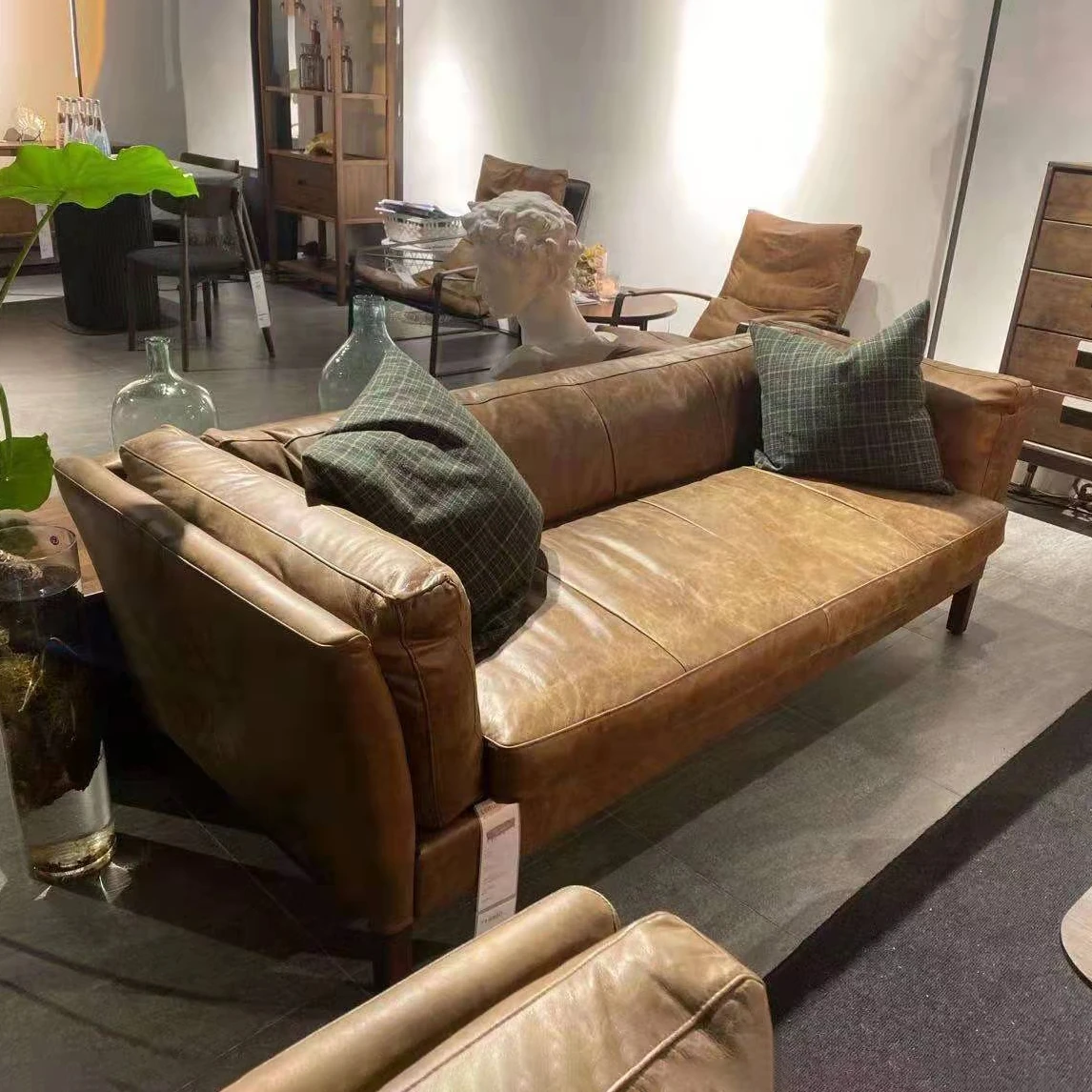Modern American Country Genuine Leather Sofa - Top Grain Cowhide Upholstered for Office and Living Room, Stylish and Durable Furniture Piece for Home Use