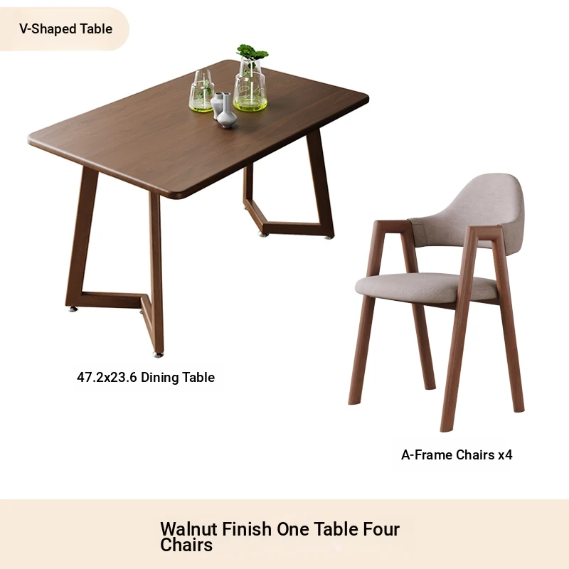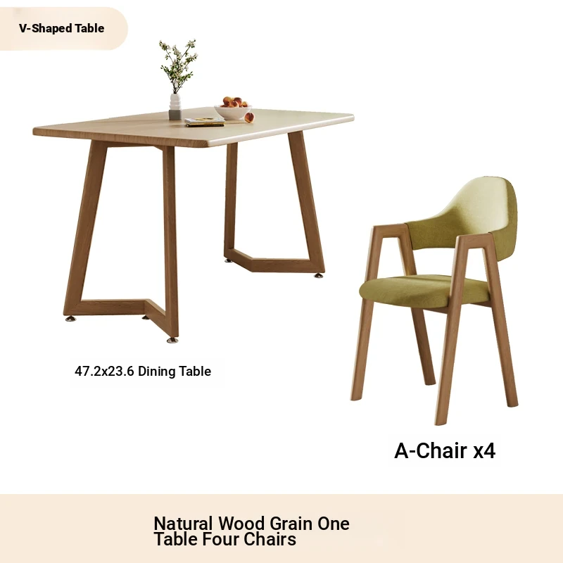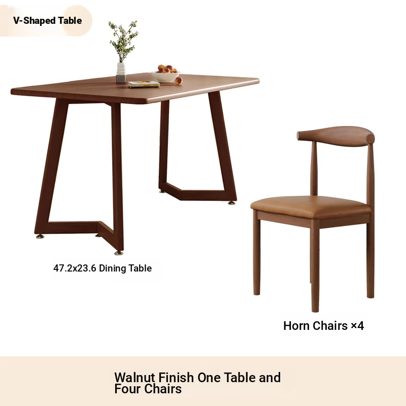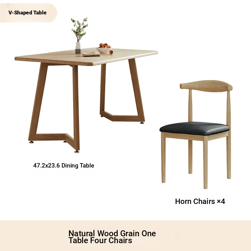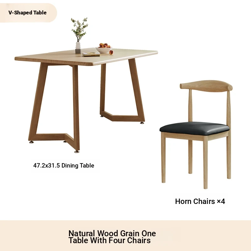 Original wood grain V 120*80 + Black Pu horn chair * 4