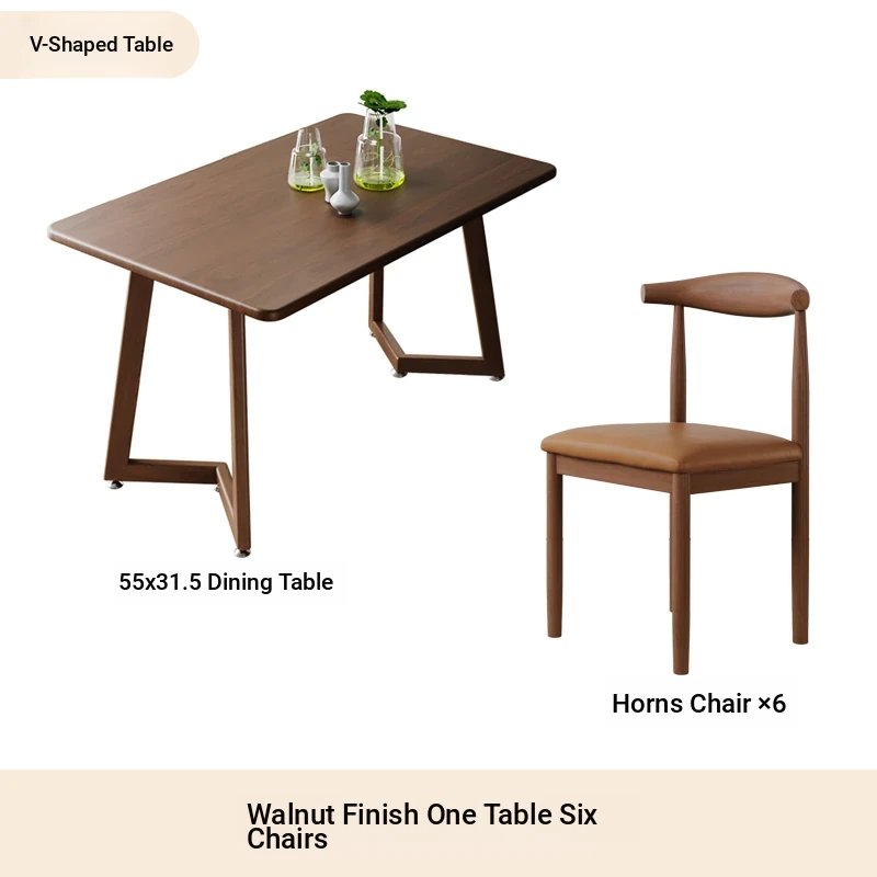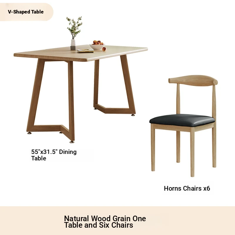 Original wood grain V 140*80 + Black Pu horn chair * 6