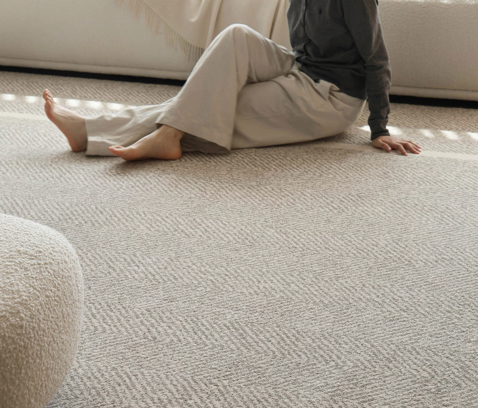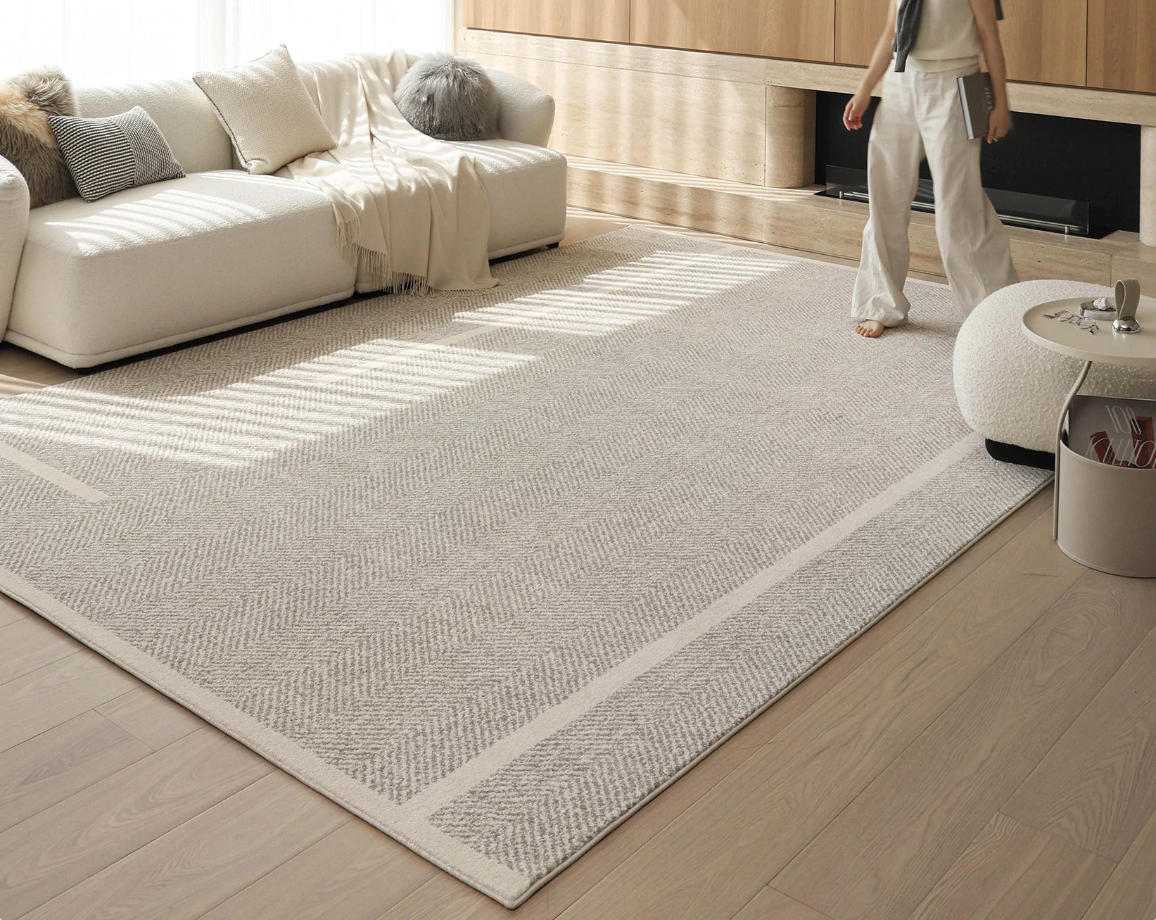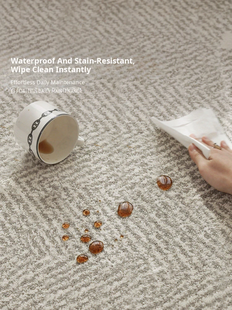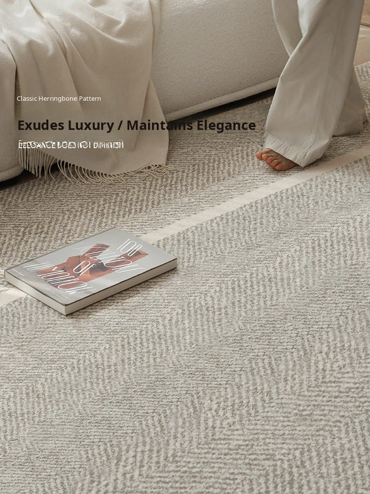 Modern Waterproof Non-Adhesive Herringbone Carpet - Stylish & Minimalist Design for Living Room and Bedroom, Stain-Resistant & Antibacterial, Perfect for Chic Accommodations