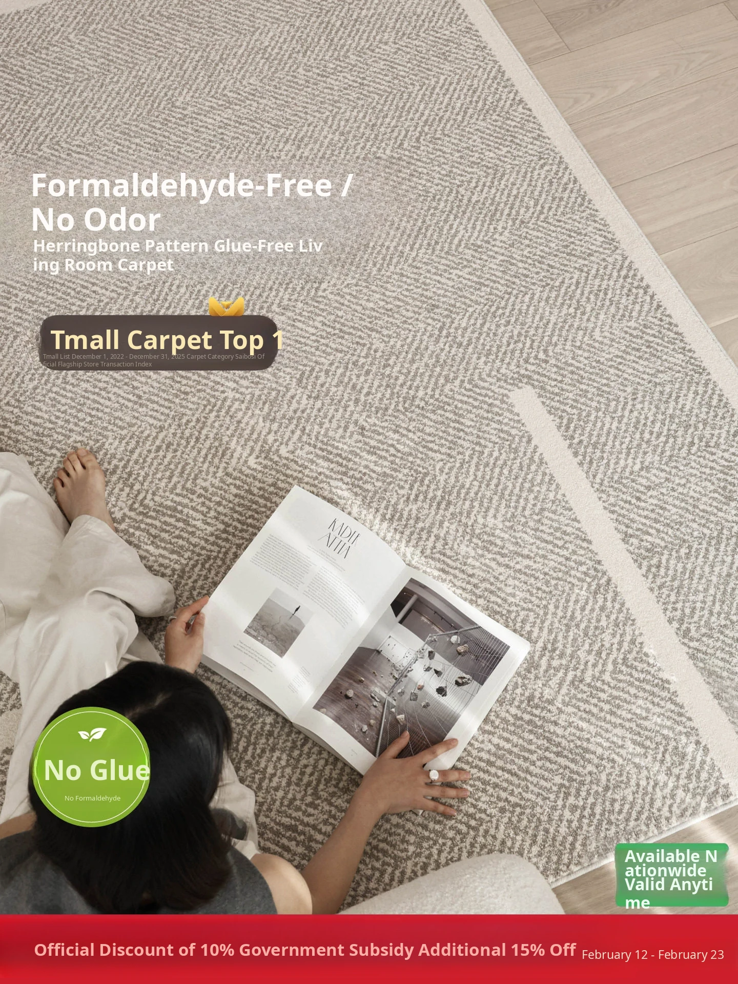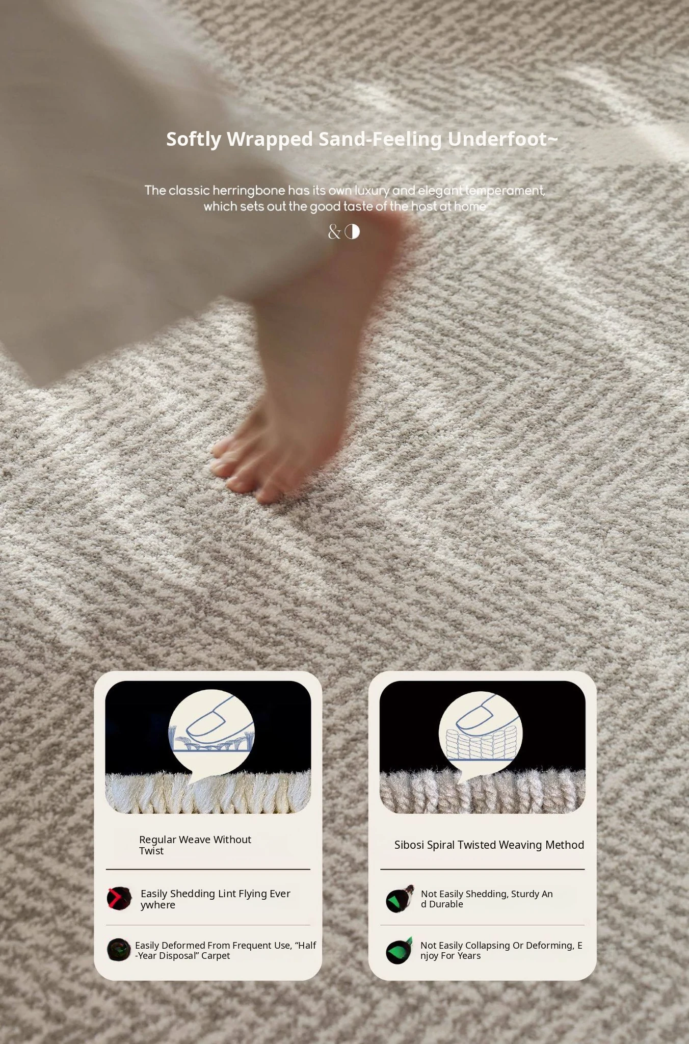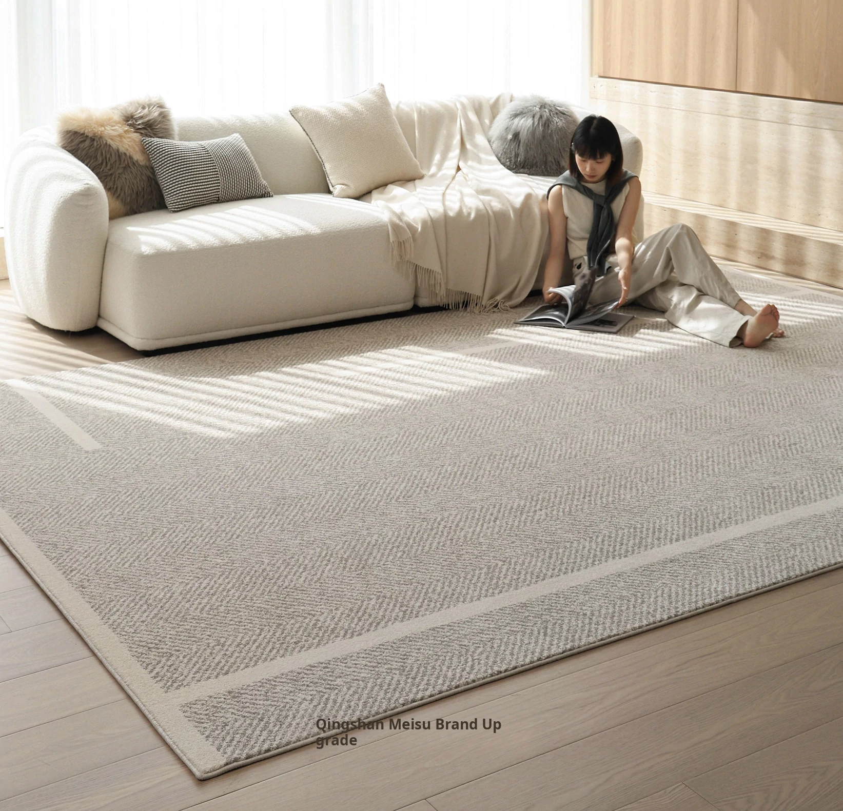 Modern Waterproof Non-Adhesive Herringbone Carpet - Stylish & Minimalist Design for Living Room and Bedroom, Stain-Resistant & Antibacterial, Perfect for Chic Accommodations