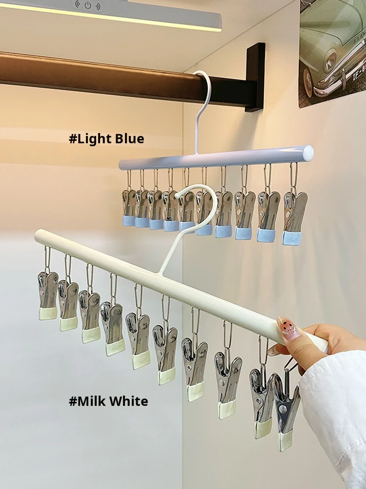 Multi-Clip Multifunctional Windproof No-Trace Stainless Steel Sock Clips - Perfect for Drying Underwear, Clothes, Hats, Ties, and Socks at Home!