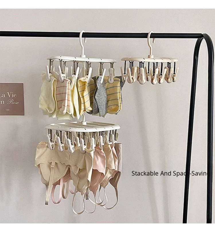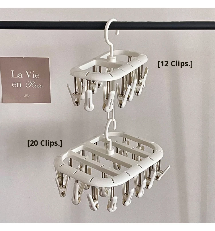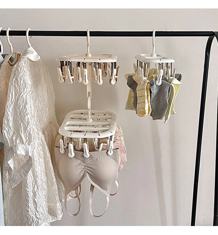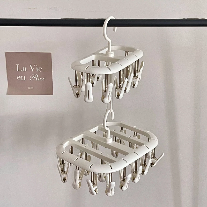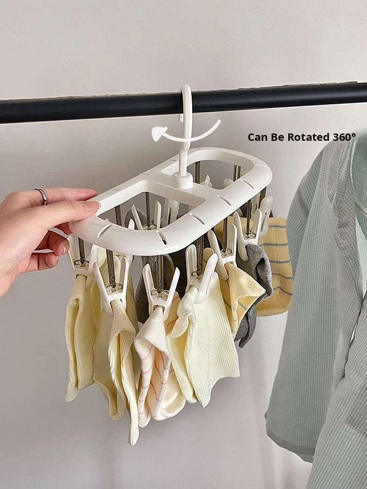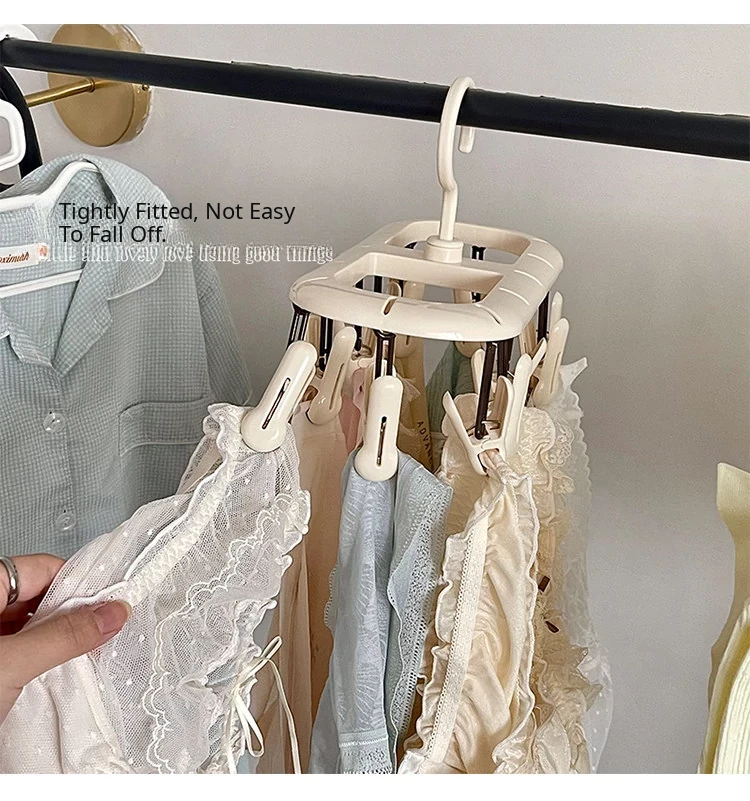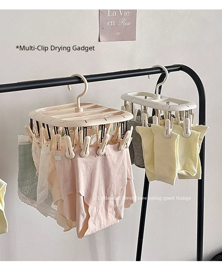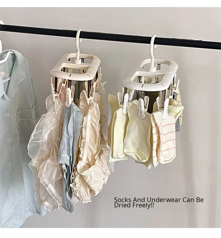 Multifunctional Clothes Hanger with Multiple Clips - Windproof, Non-Slip Design Perfect for Student Dorms and Balconies for Drying Underwear, Socks, and More!