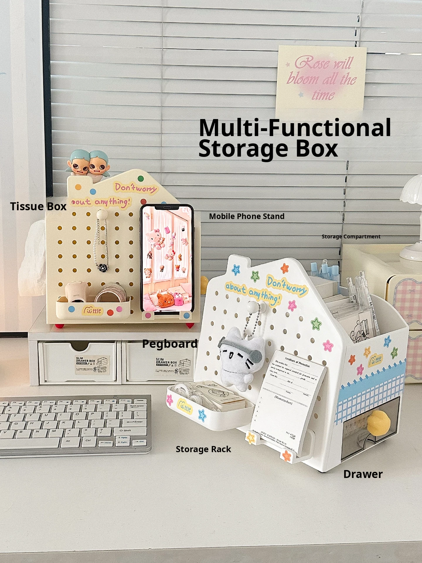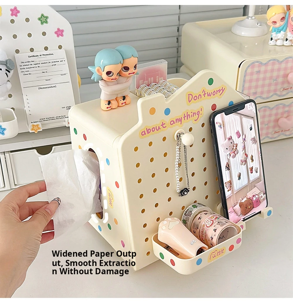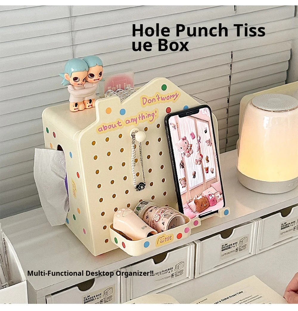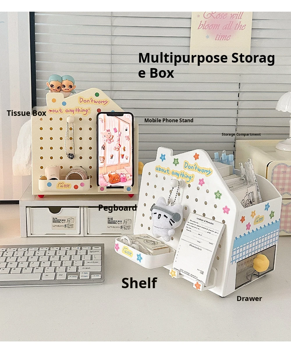 Multi-Functional Desktop Organizer - Cute House Tissue Box, Phone Stand, and Stationery Holder with Pegboard Design for Clutter-Free Workspaces