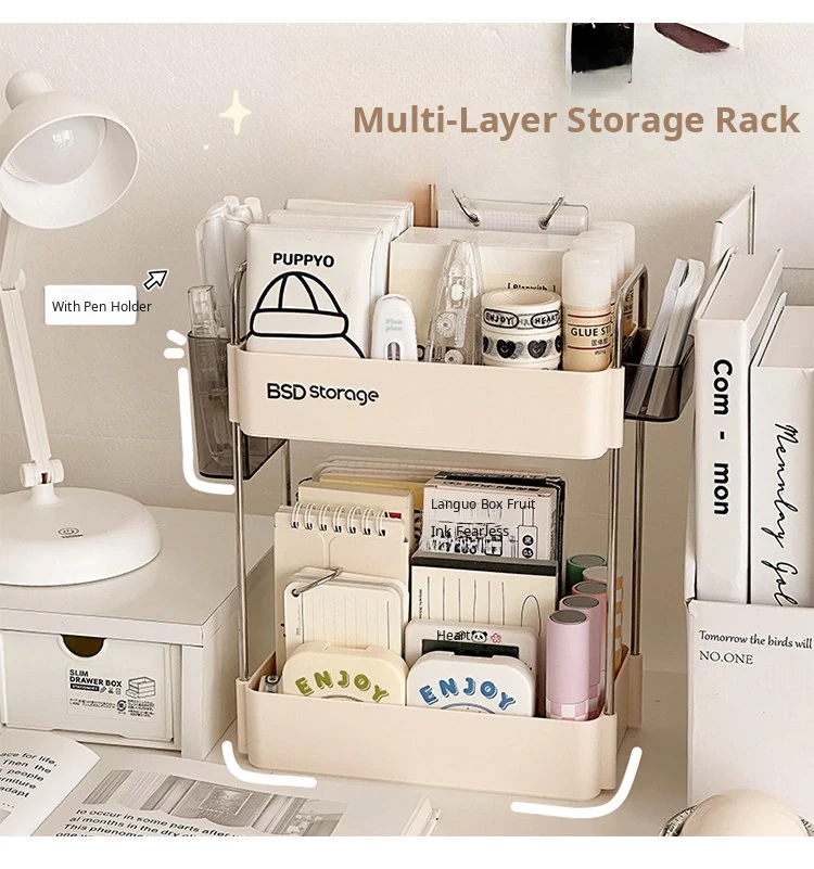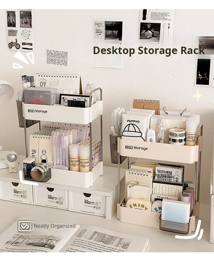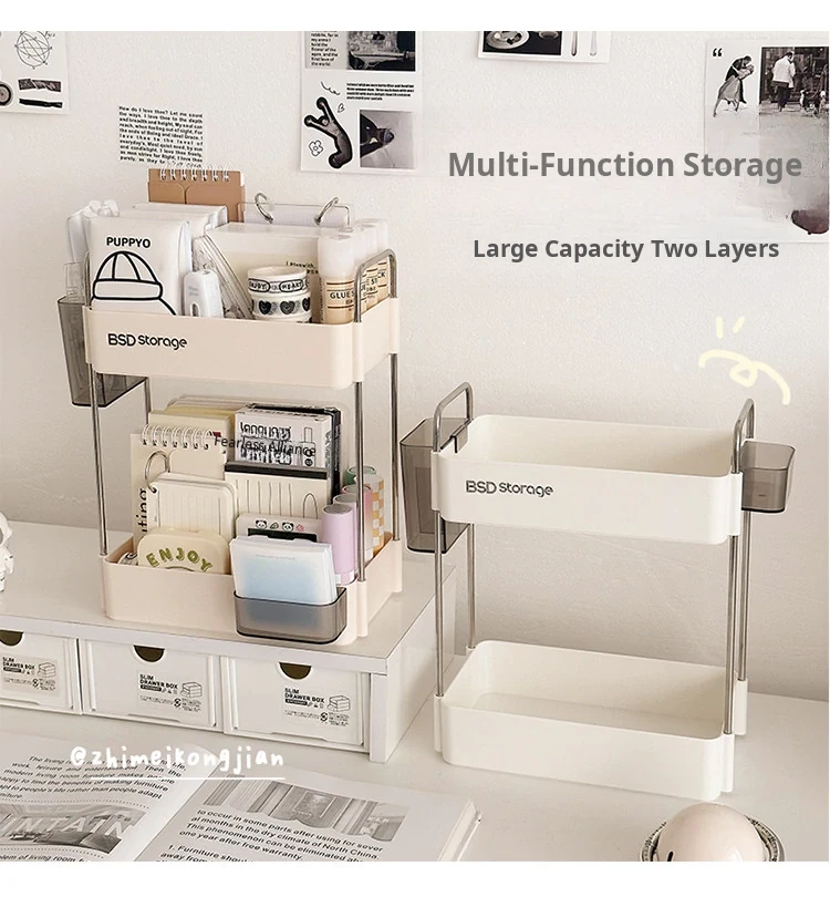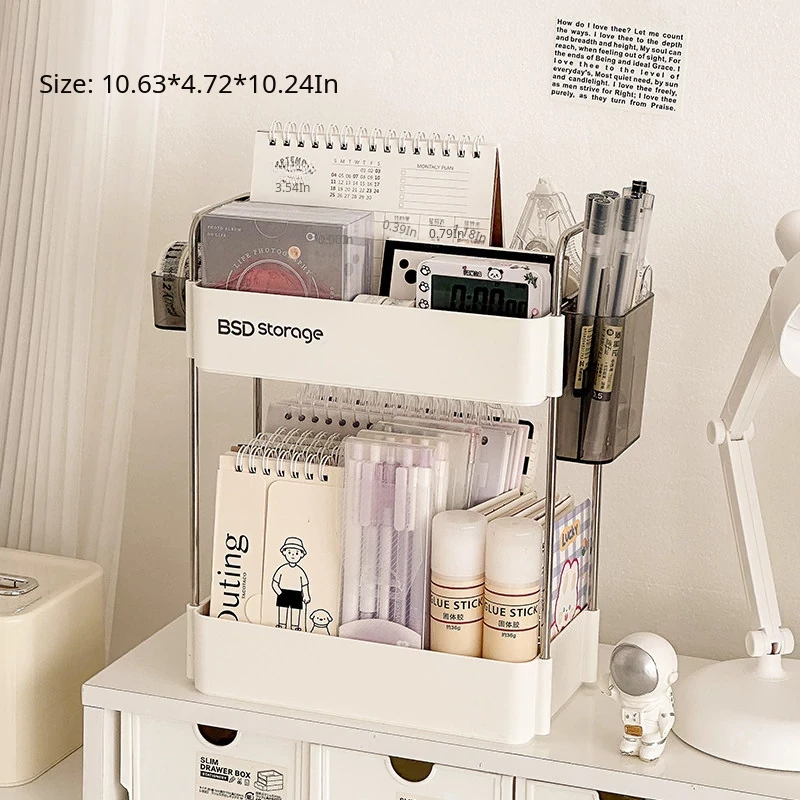 Multi-Layer Desktop Storage Rack - Dual-Tier Bookshelf and File Organizer for Office Desks and Dorms, Large Capacity Organizer for Efficient Space Management