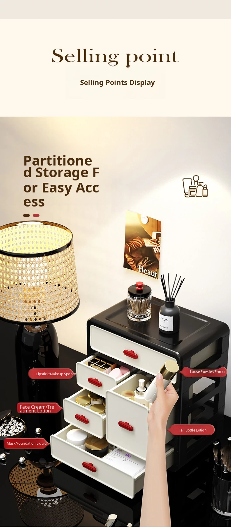 Multi-Layer Makeup Organizer with Drawer - Stylish Desktop Storage Box for Cosmetics, Skincare Products, and Small Items - Perfect for Your Vanity!