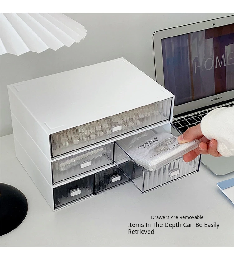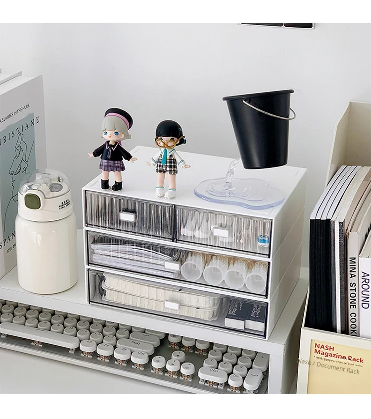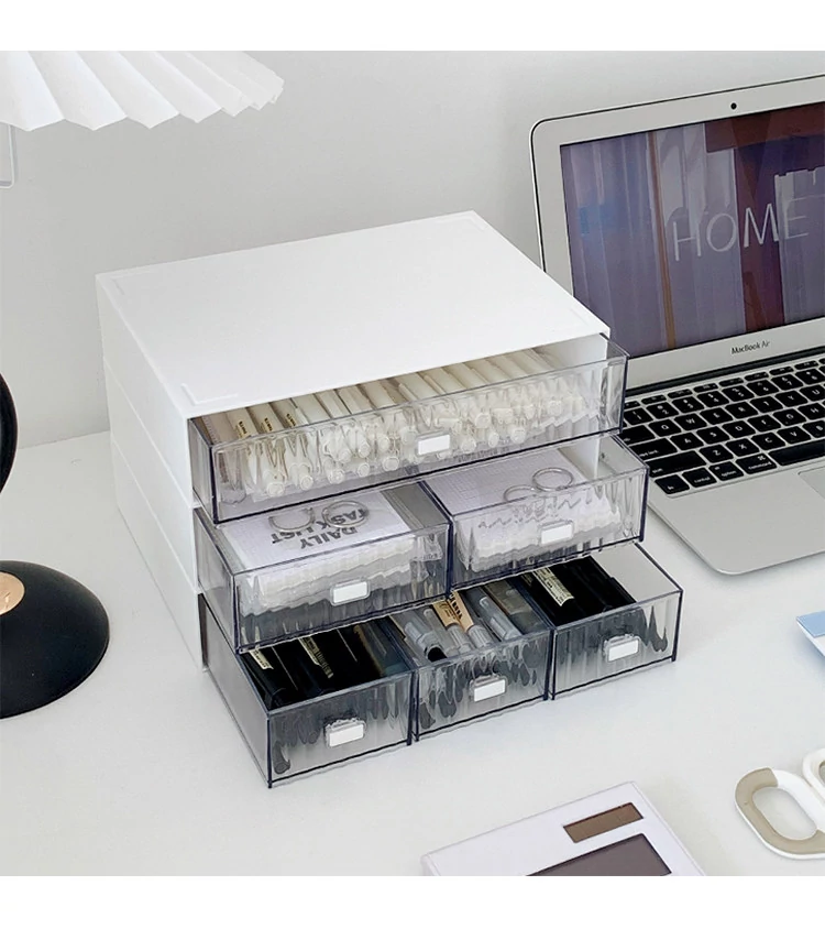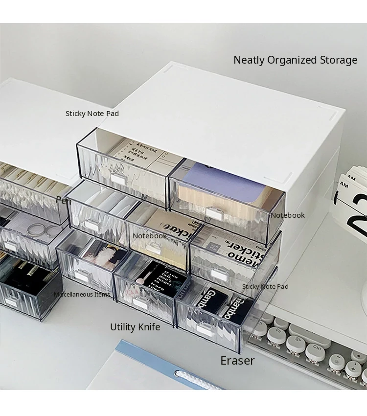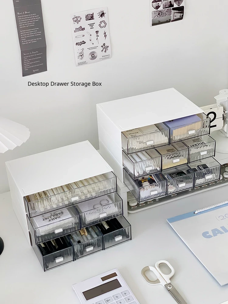 Multi-Layer Transparent Desk Organizer with Drawers - Dust-Proof Storage Box for Students' Stationery and Journals, Ideal for Home Office and Desk Organization