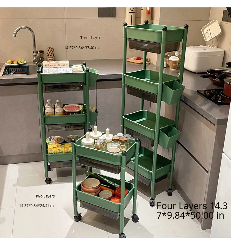 Dark Green [4 Layers + Hanging Basket*2] Comes with Hidden Drawer