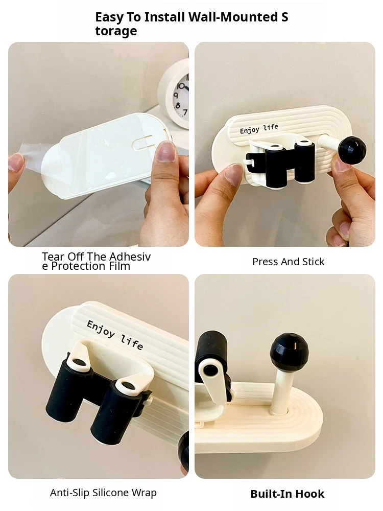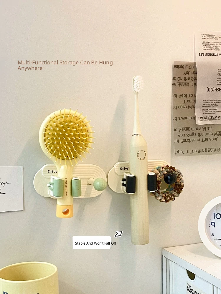 No-Drill Bathroom Storage Rack - Multi-Functional Wall-Mounted Organizer for Easy Home Storage - Includes Hooks for Hair Brushes and More!