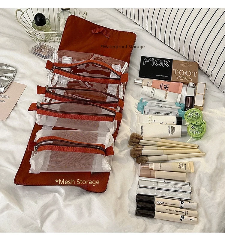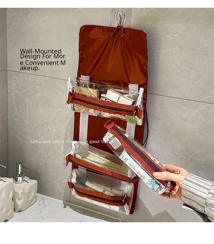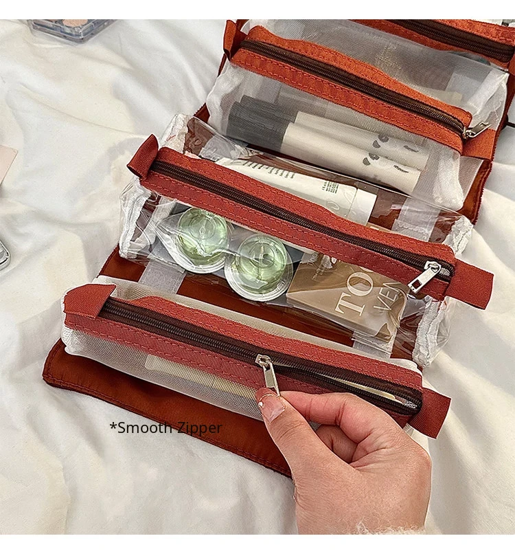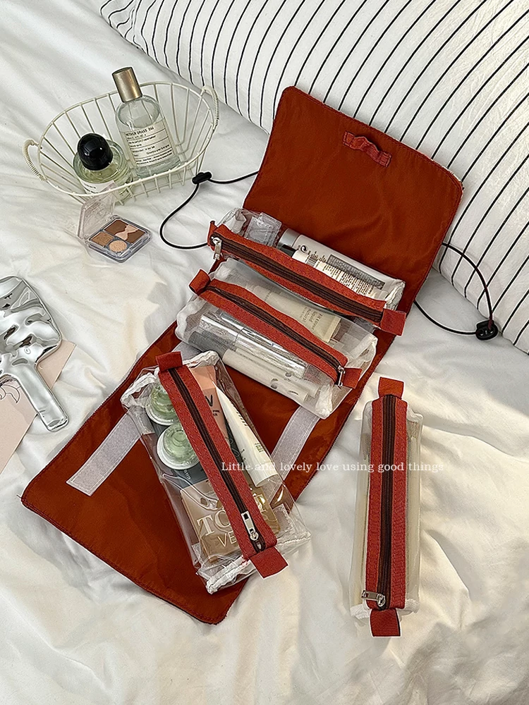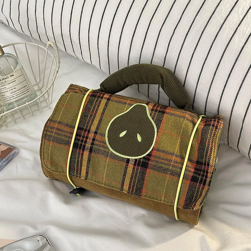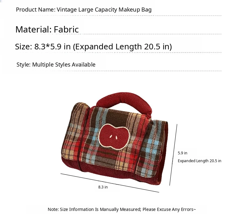 Plaid Makeup Bag with Dividers - Portable Travel Toiletry Organizer for Skincare Essentials, Foldable and Convenient for Business Trips and Travel