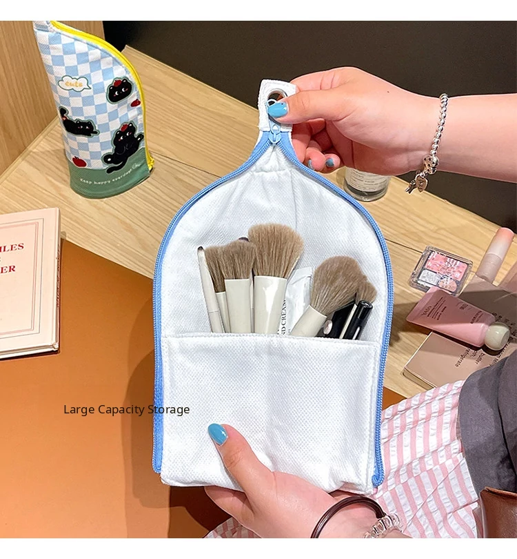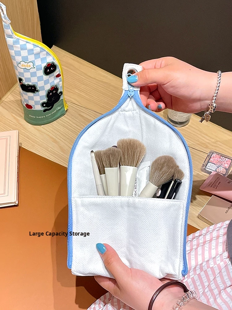 Portable Makeup Brush Organizer for Women - Cute Travel-Friendly 2025 New Design Mini Lipstick Stand-Up Handbag