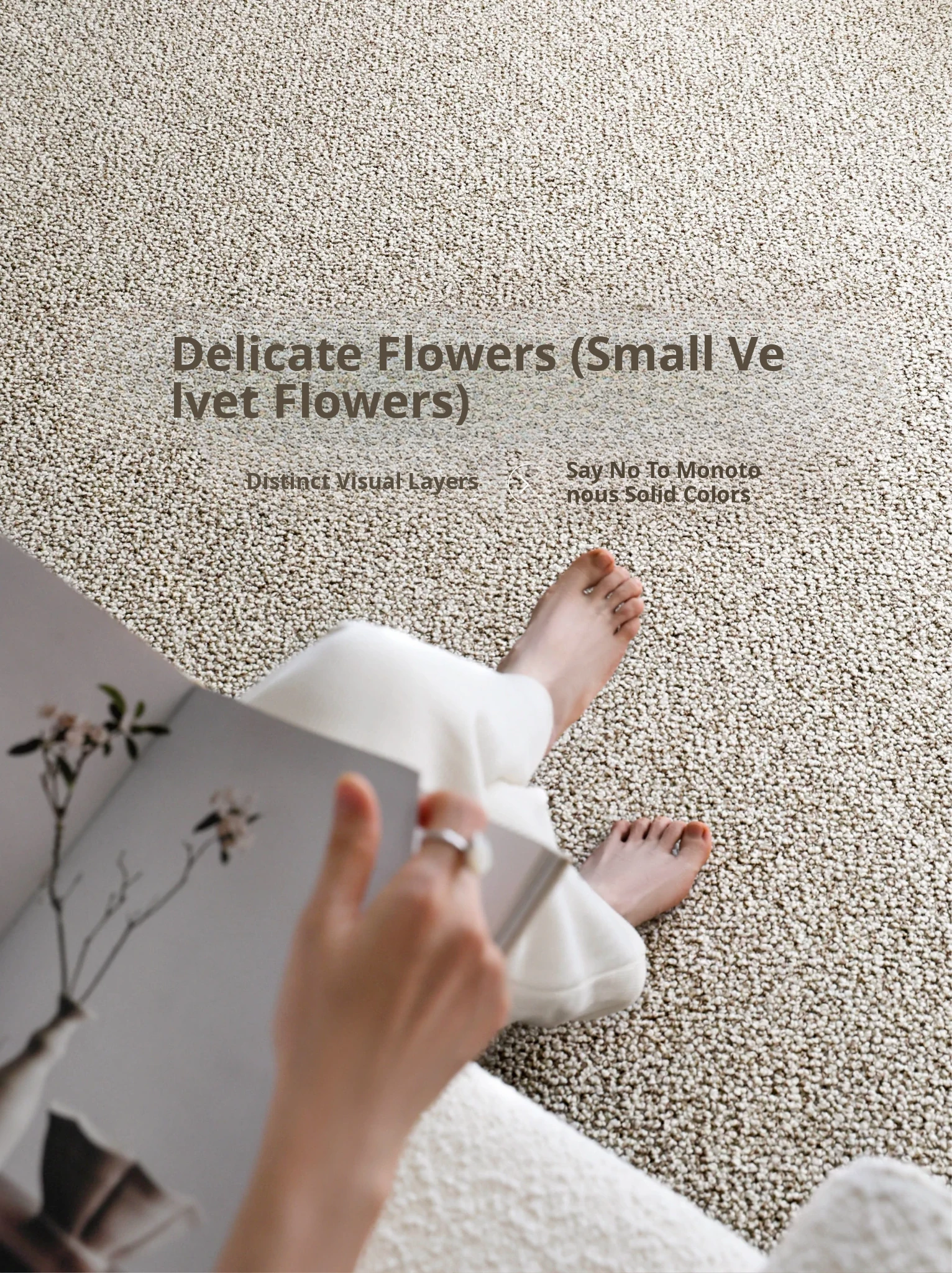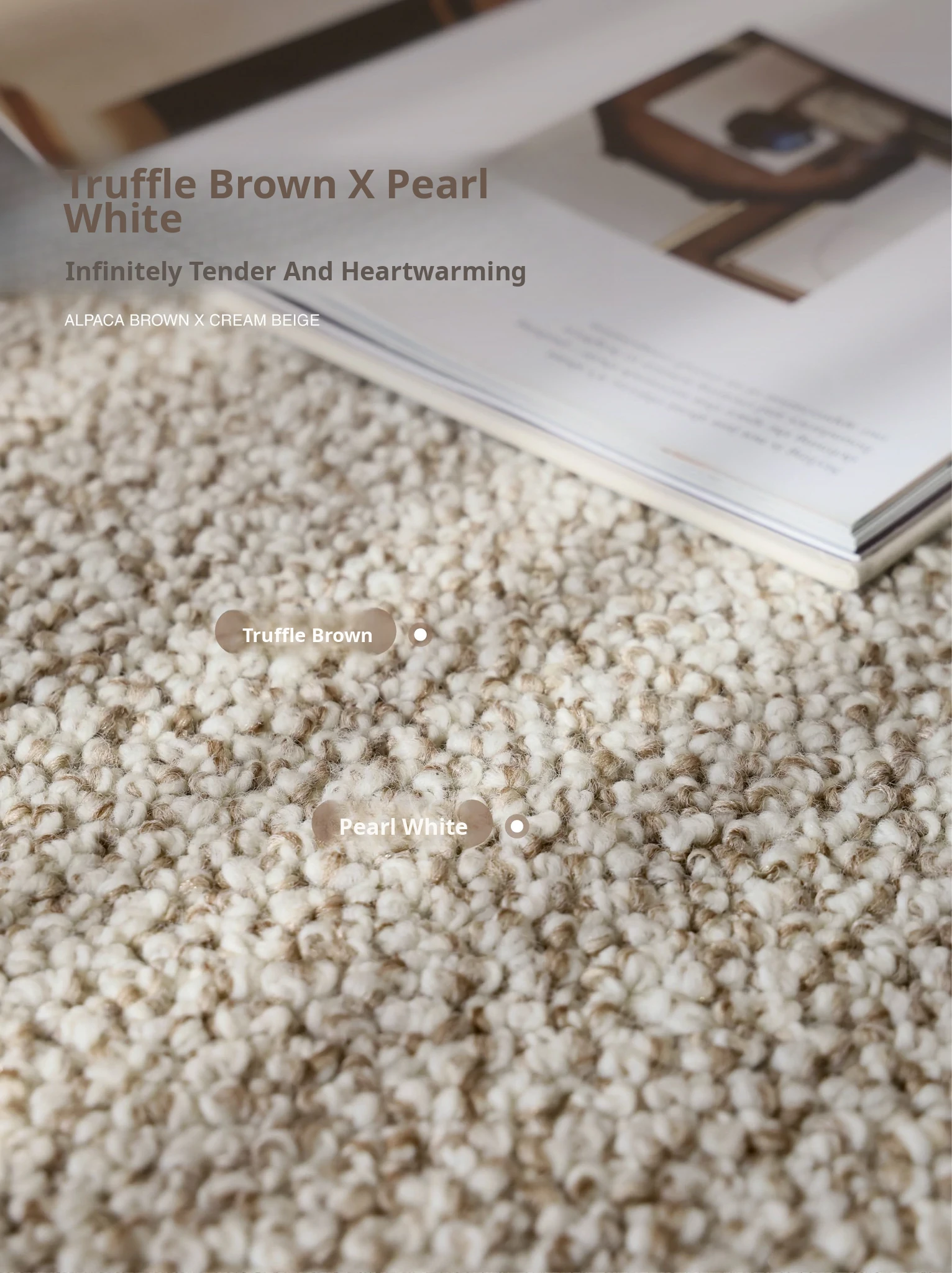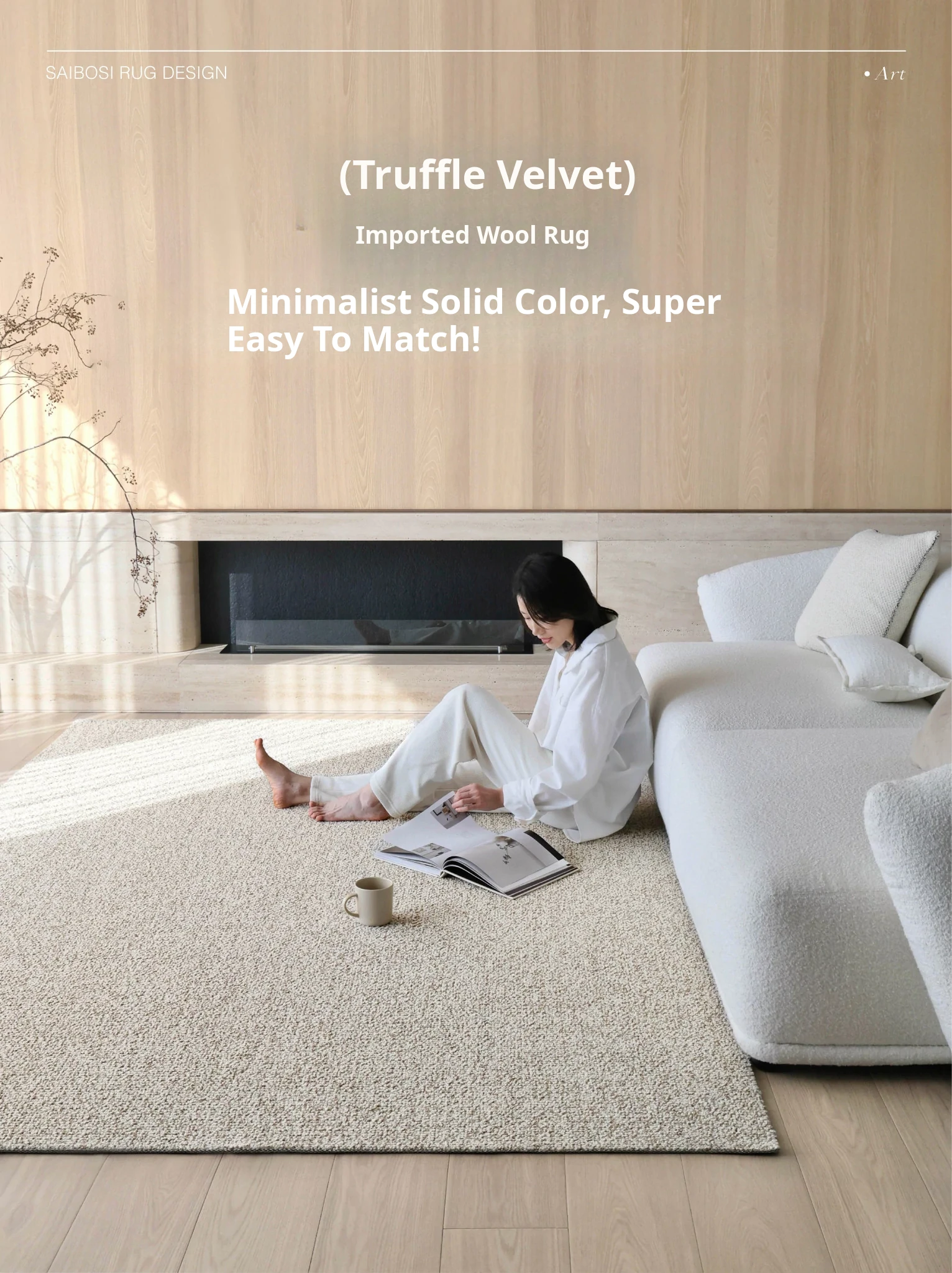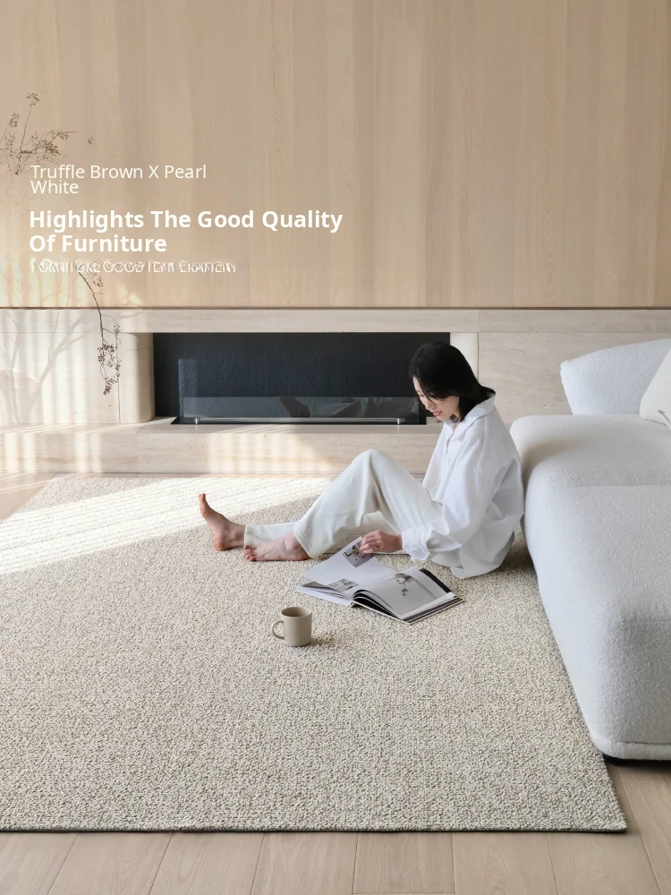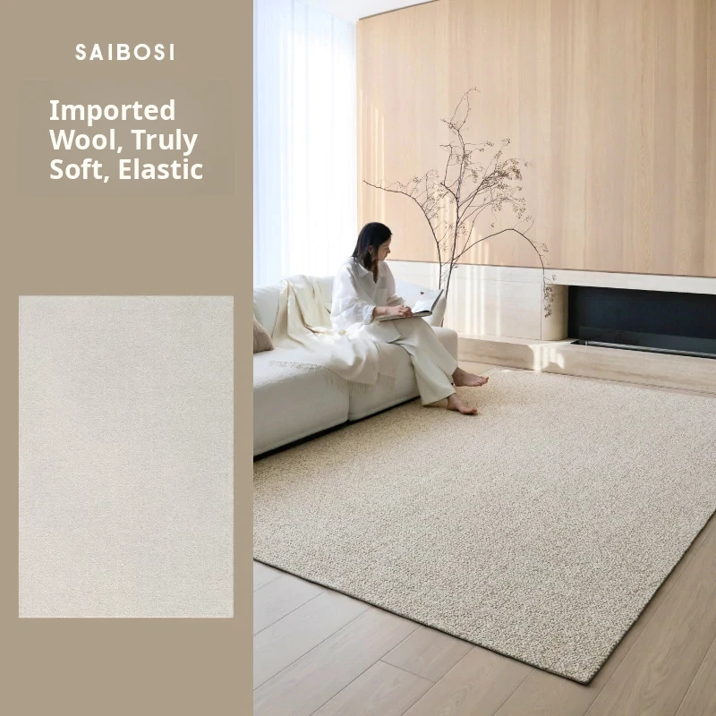 Premium Seipos Quality! Imported Wool Carpet in Truffle Plush - Luxurious Minimalist Design for Living Room and Bedroom.