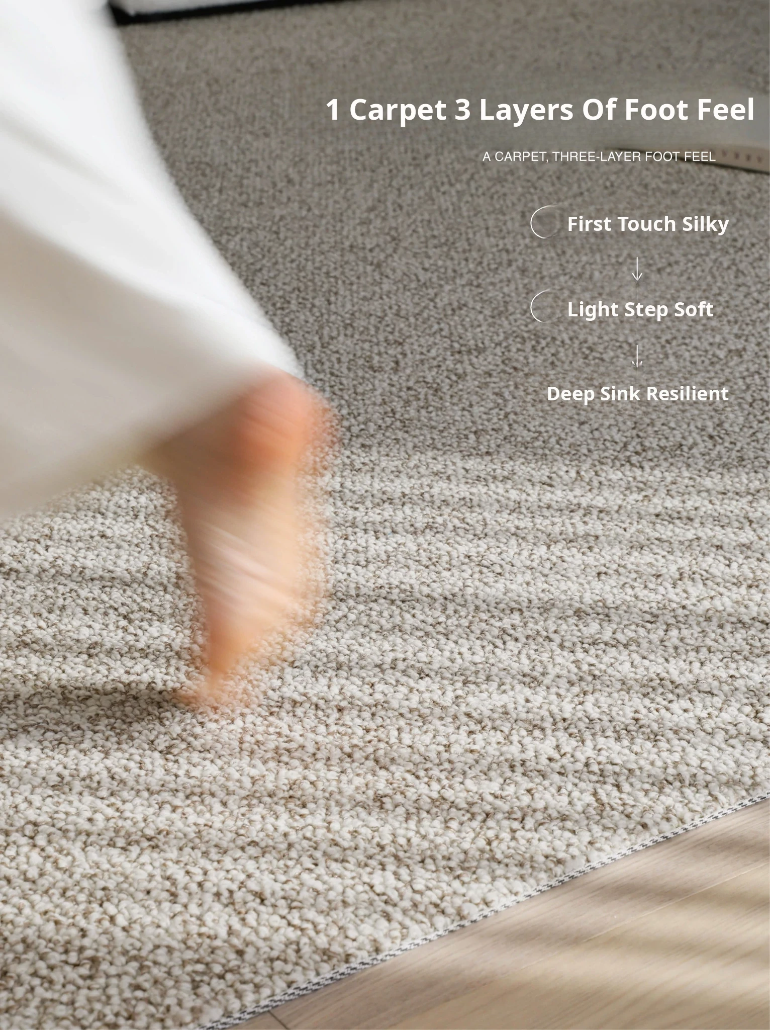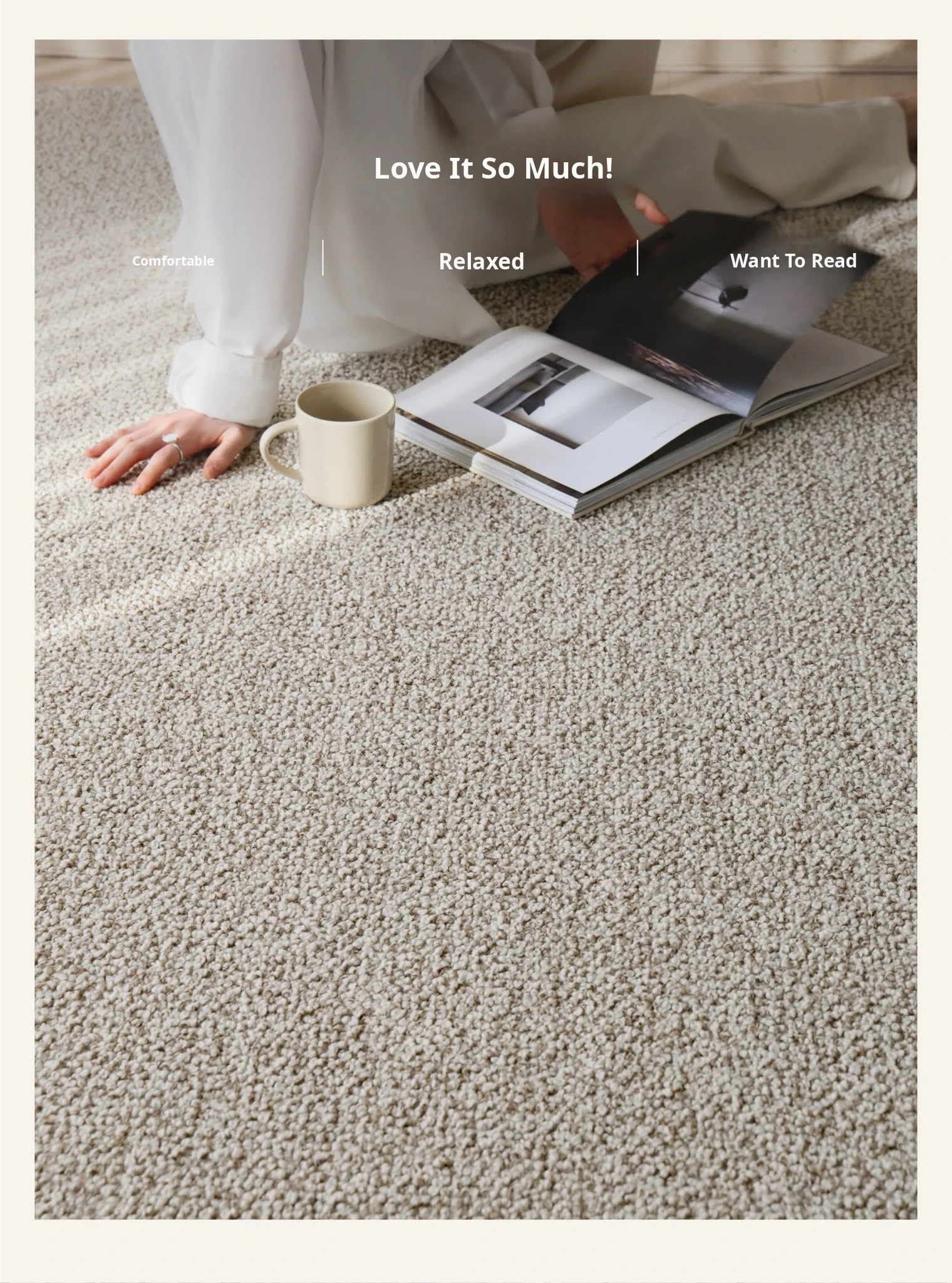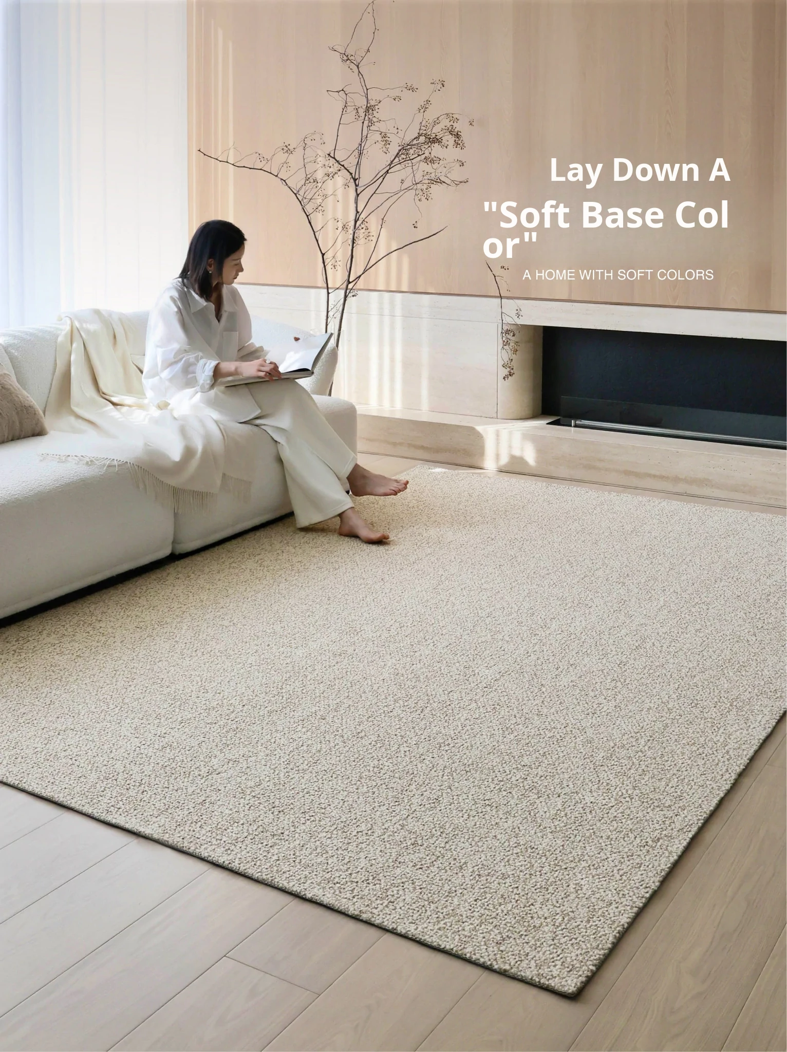 Premium Seipos Quality! Imported Wool Carpet in Truffle Plush - Luxurious Minimalist Design for Living Room and Bedroom.