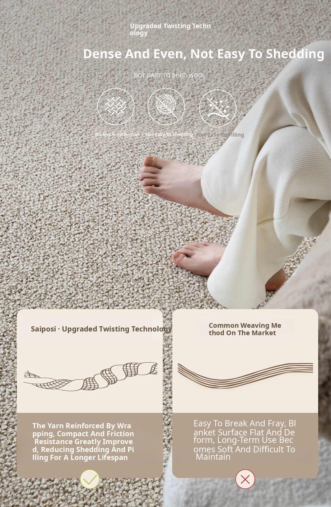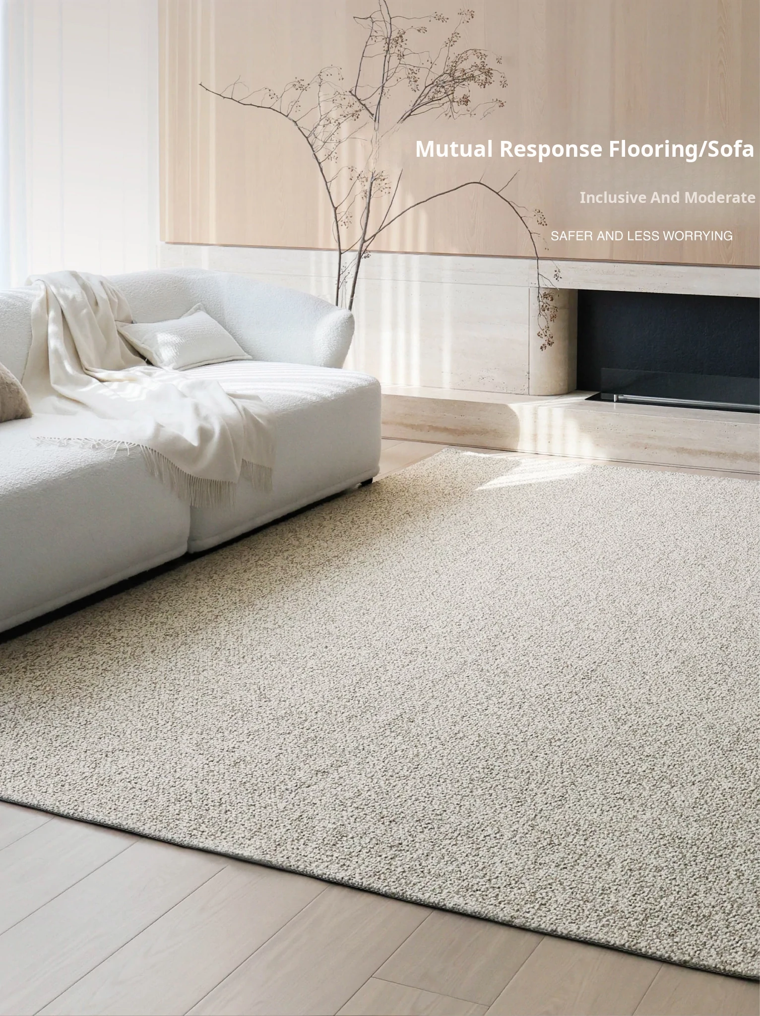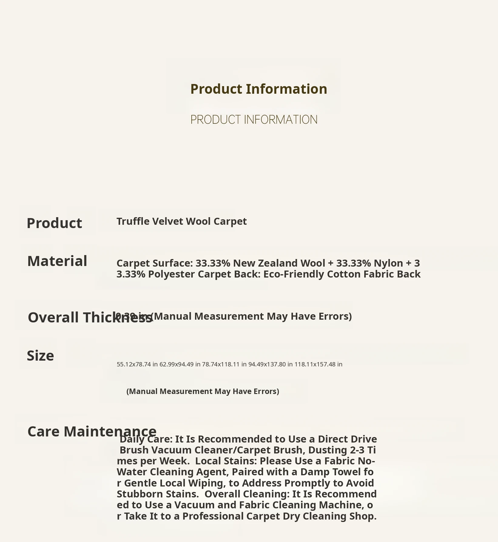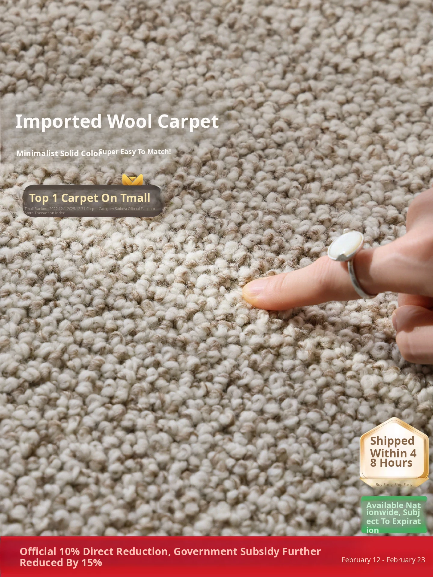 Premium Seipos Quality! Imported Wool Carpet in Truffle Plush - Luxurious Minimalist Design for Living Room and Bedroom.