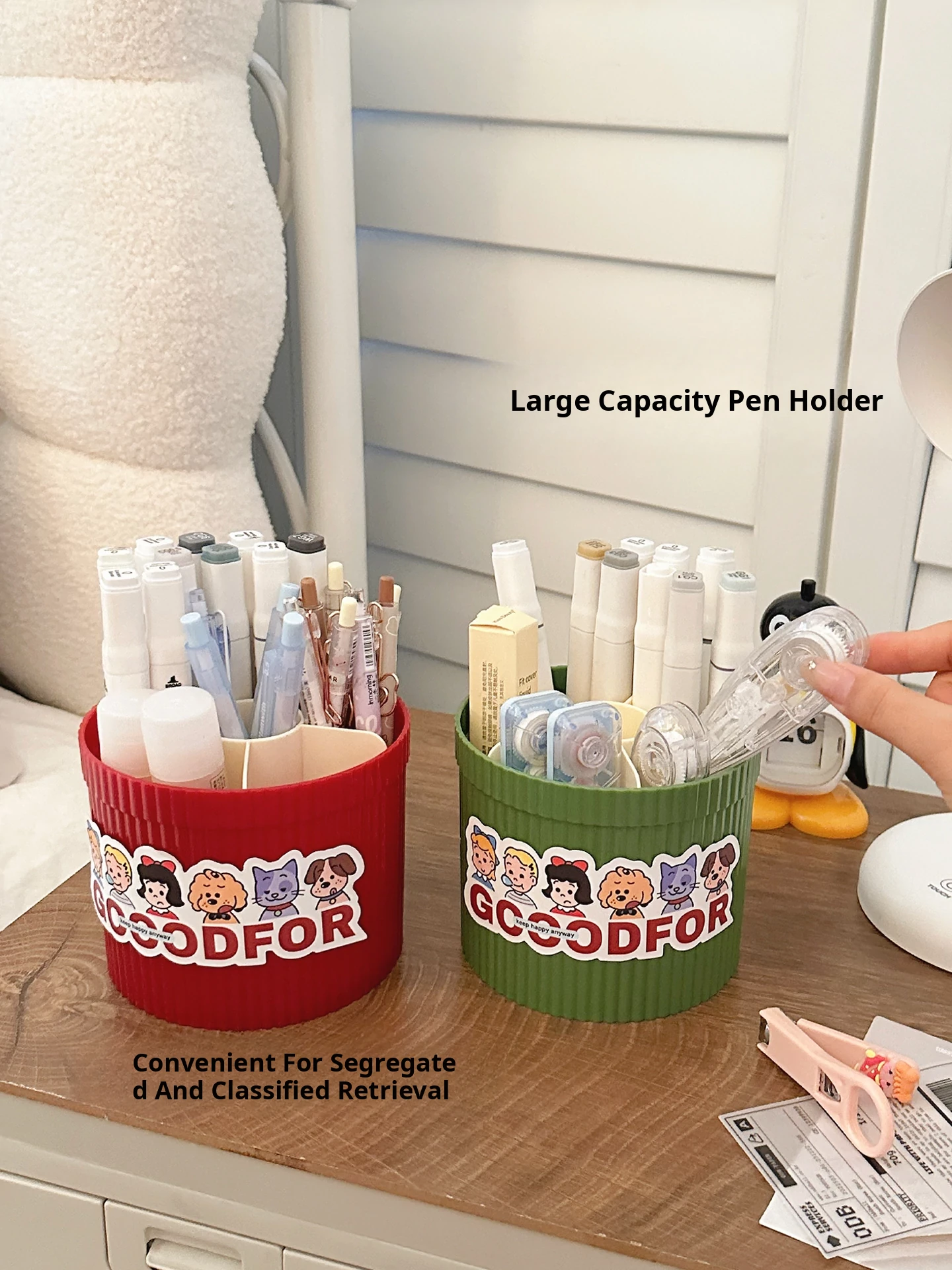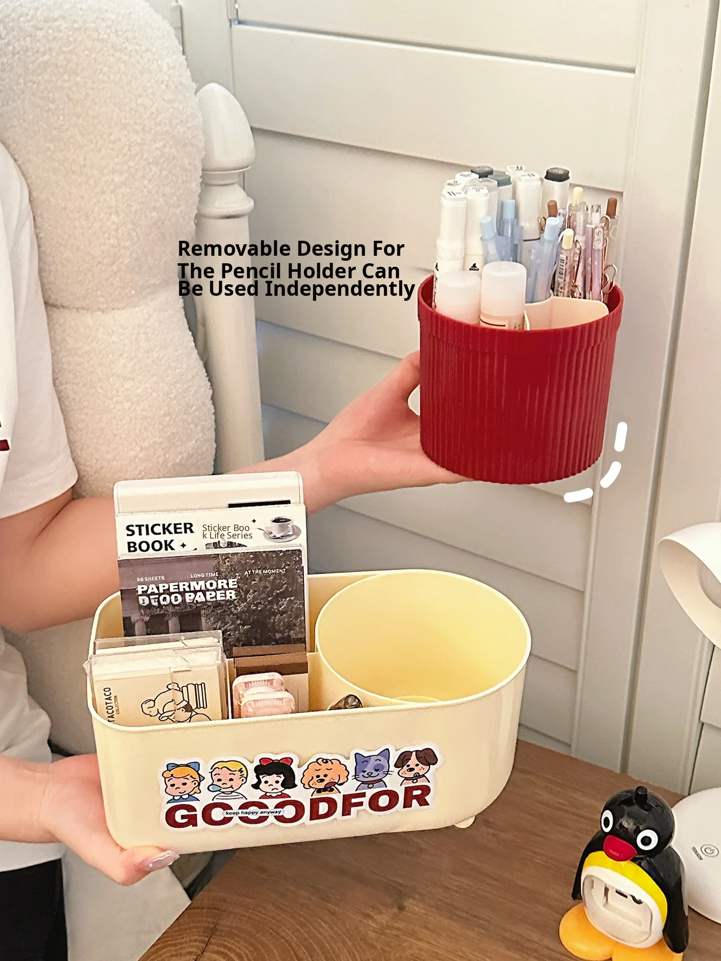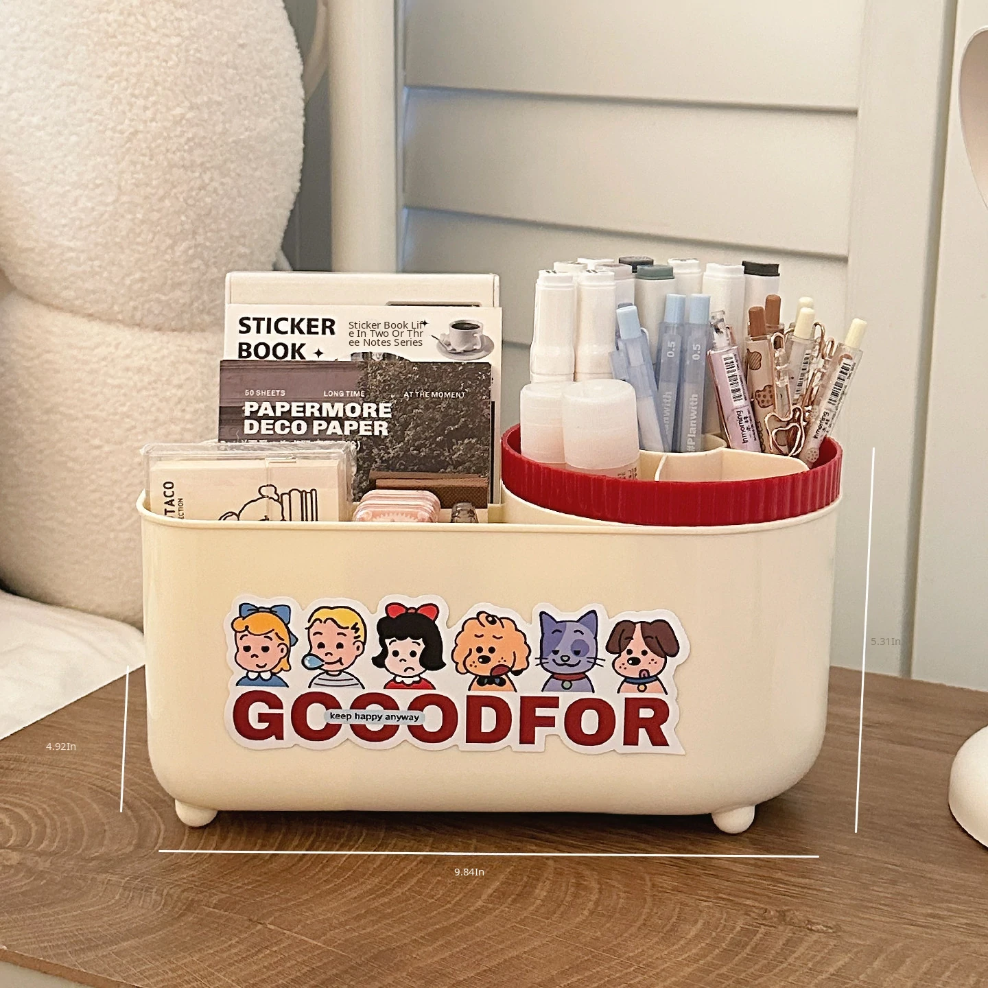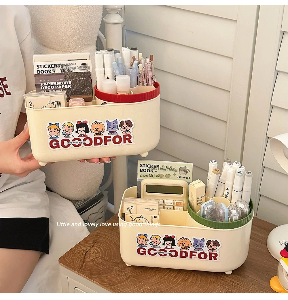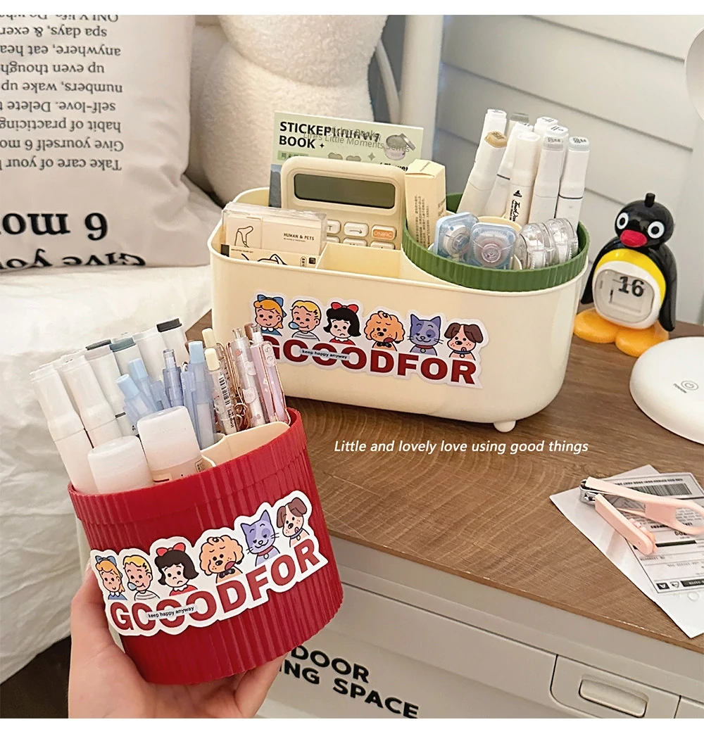 [Pen Holder + storage box] cream Red