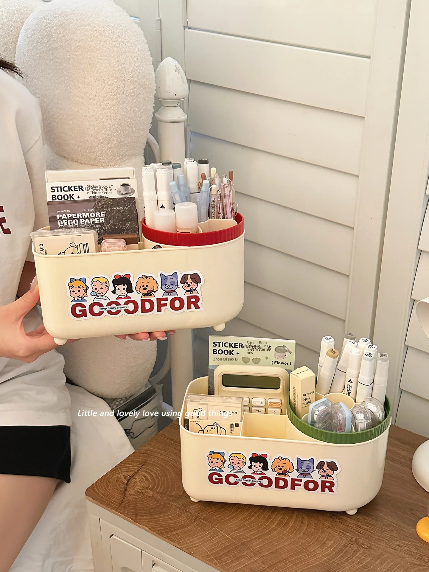 [Pen Holder + storage box] cream Green