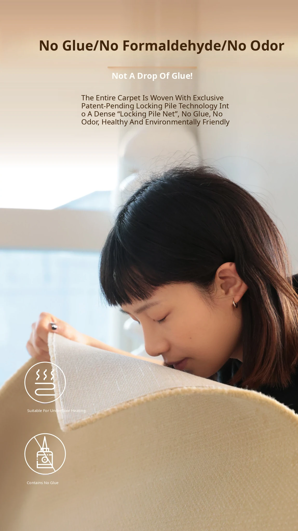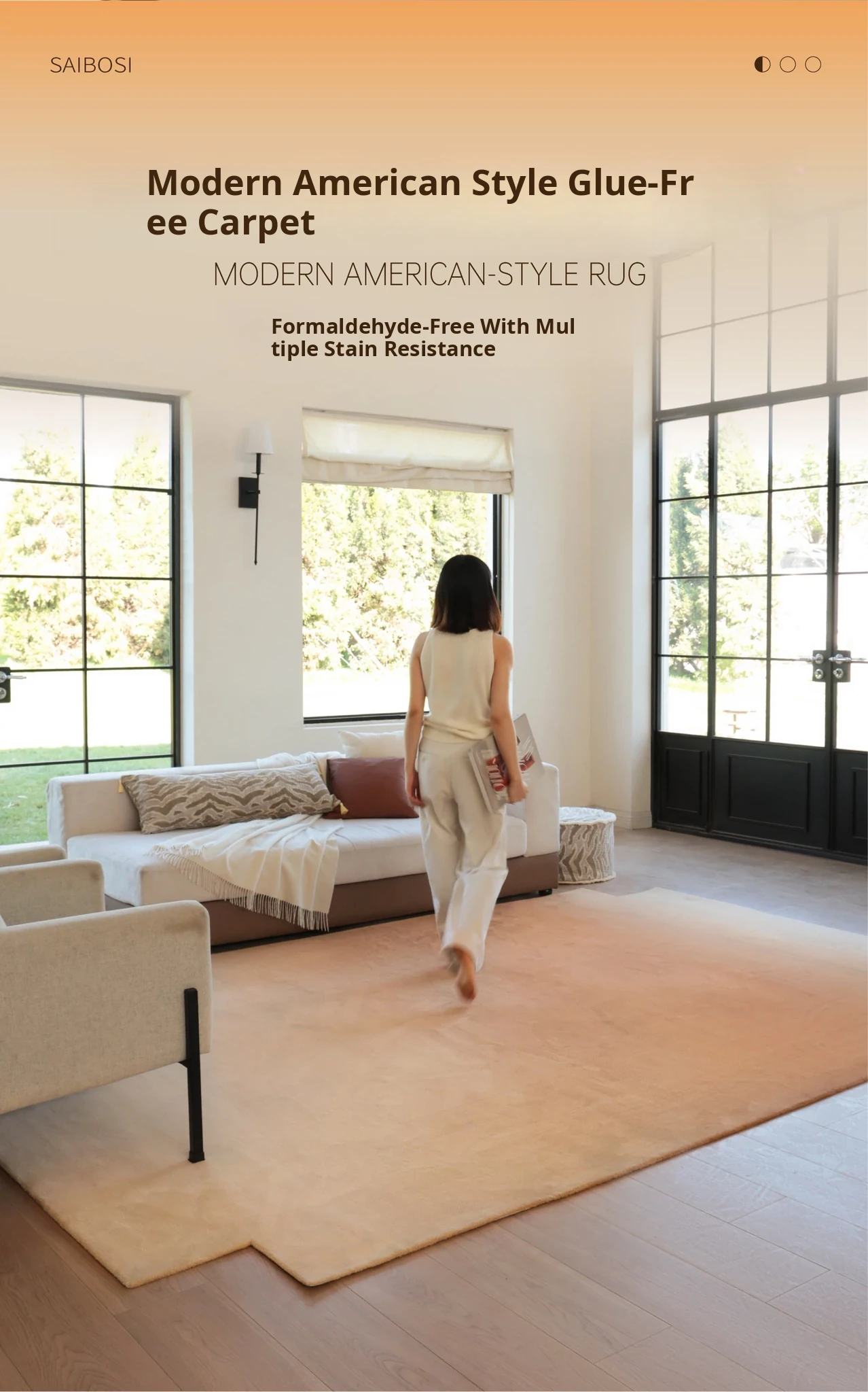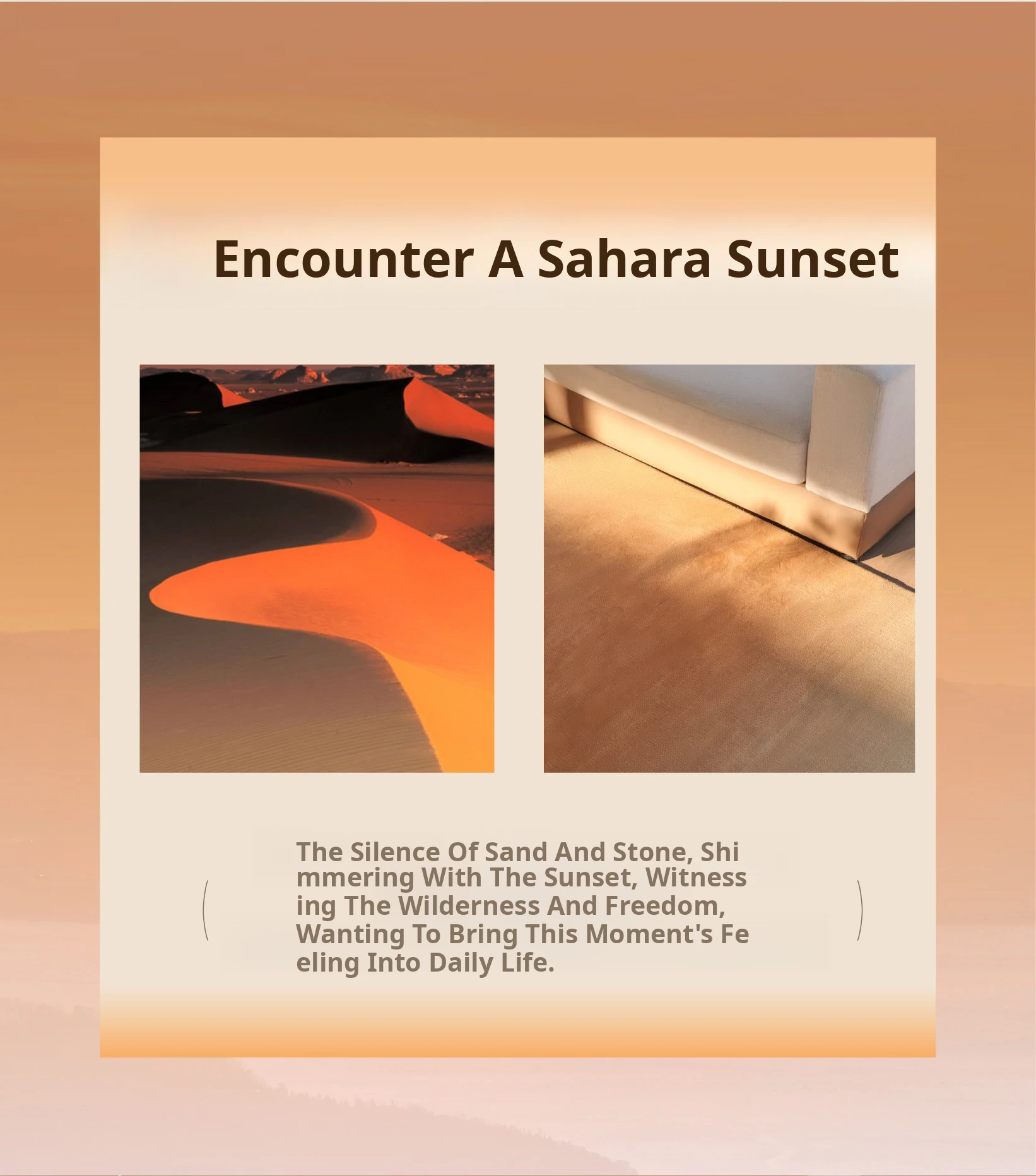 Sahara Sunset Non-Adhesive Carpet - Waterproof, Stain-Resistant, Antibacterial Premium American Style Rug for Living Room and Bedroom - Elevate Your Home Aesthetic with Nature-Inspired Design