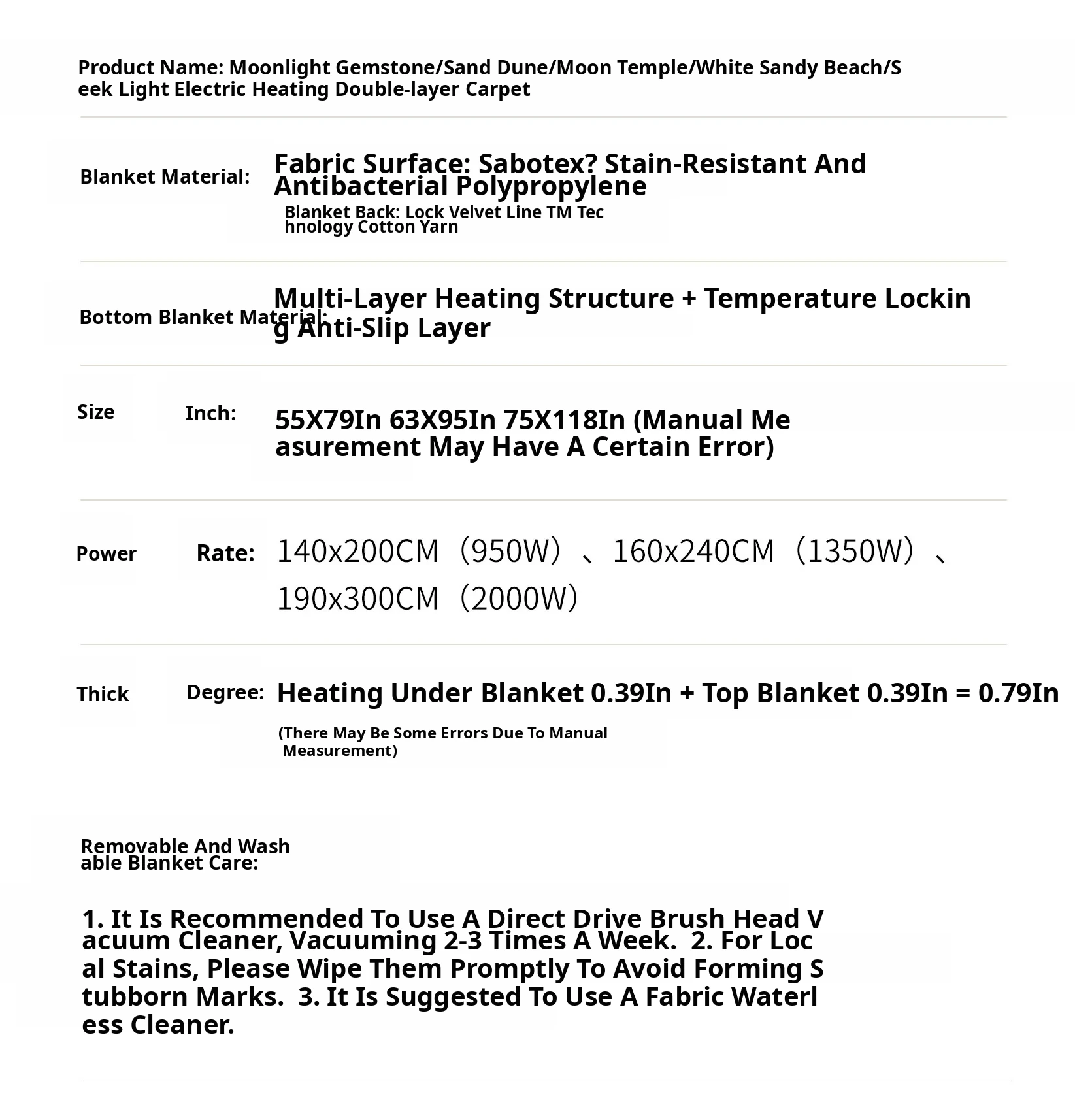 Saibosi Moonlight Gem Electric Heating Double-layer Carpet - Luxury Heated Floor Mat for Living Room, Perfect for Cozy Warmth and Comfort