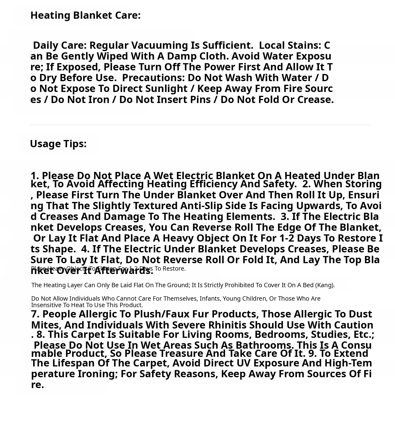 Heating Bottom Blanket (Can Be Used with Glue-Free Carpets in the Store)