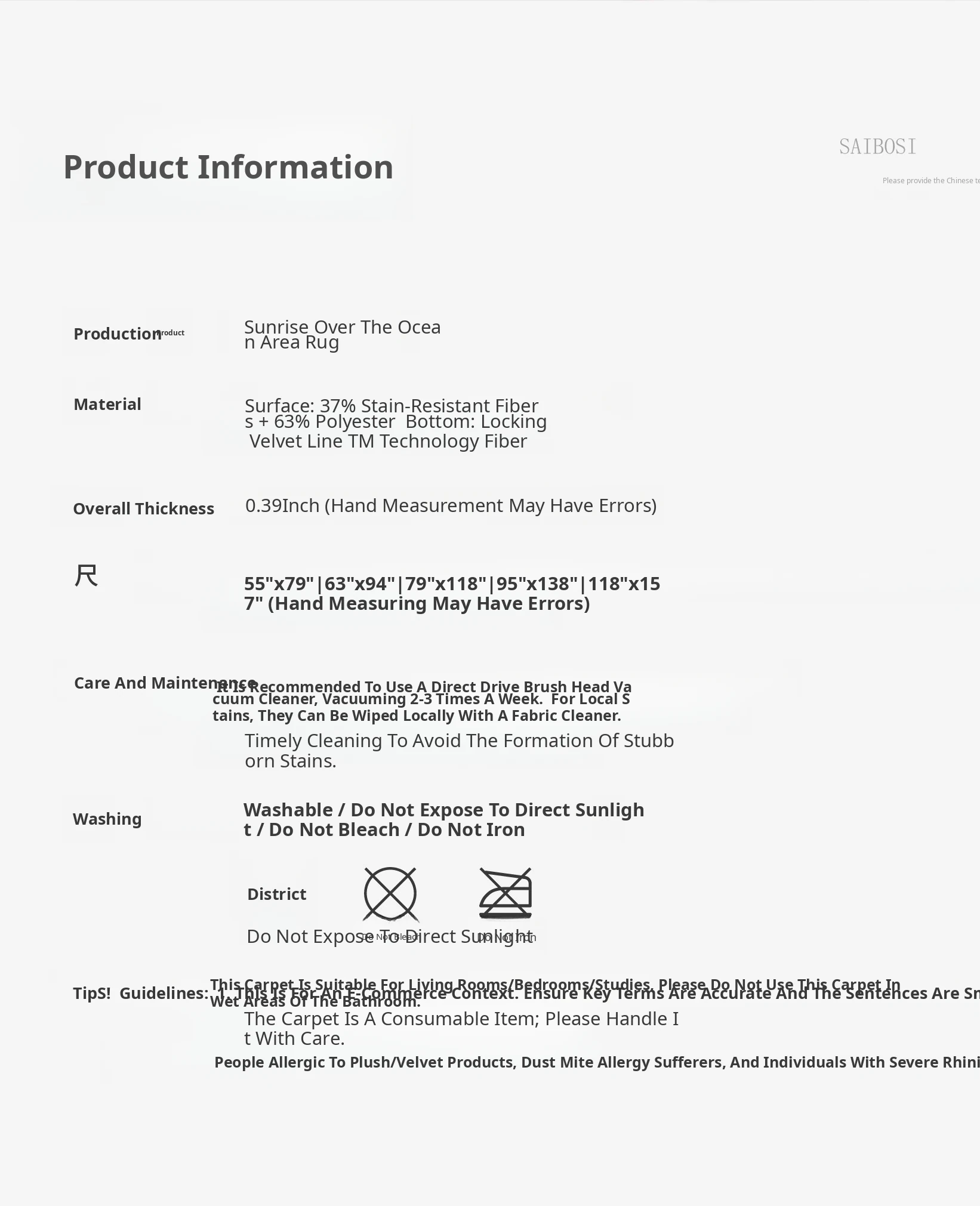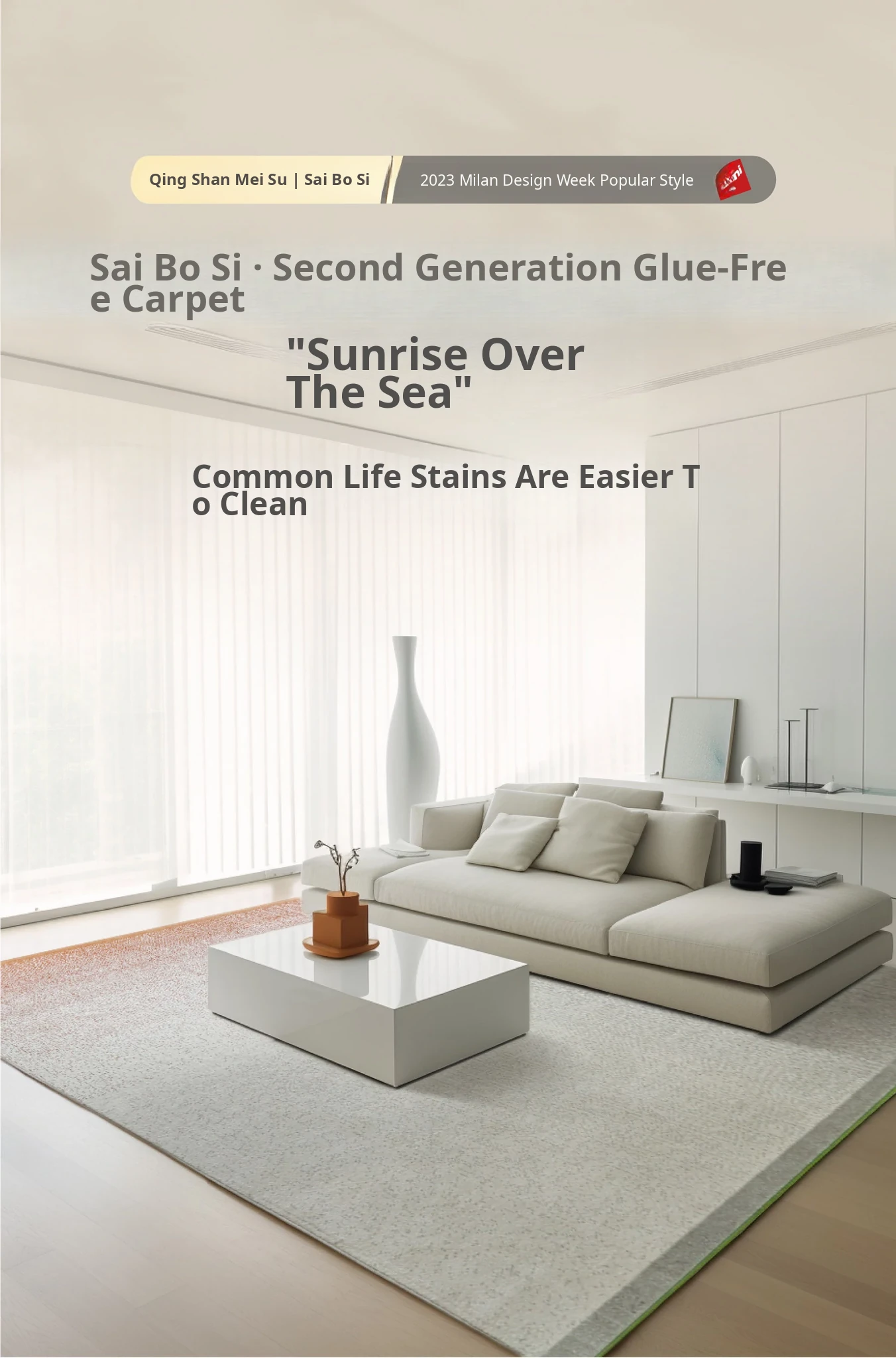 Saipus Formaldehyde-Free, Glue-Free Easy-Clean Carpet – Perfect for Living Room & Bedroom, Italian Minimalist Design for Qing Shan Mei Su!