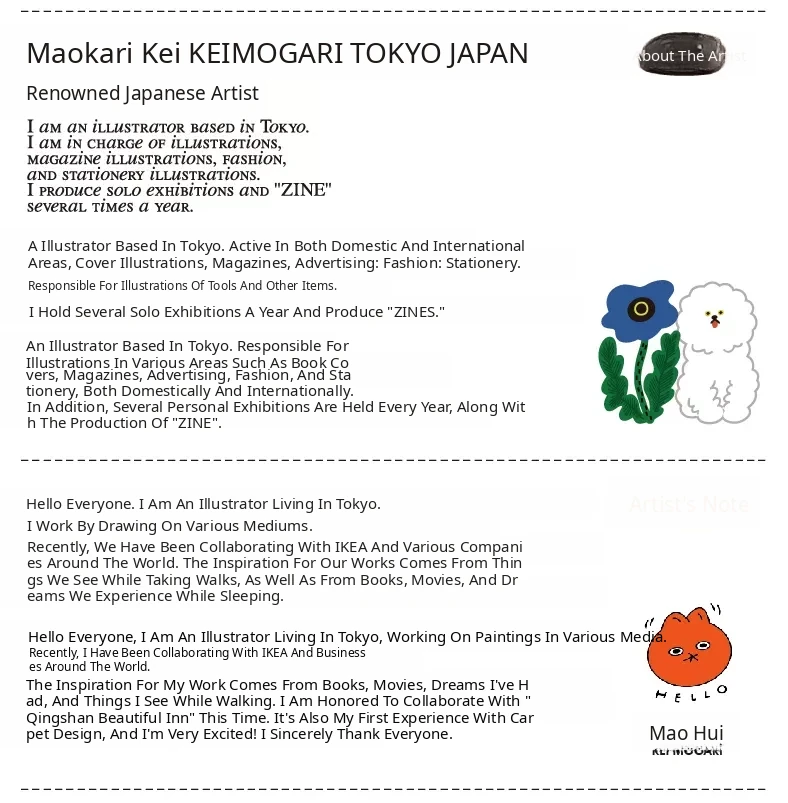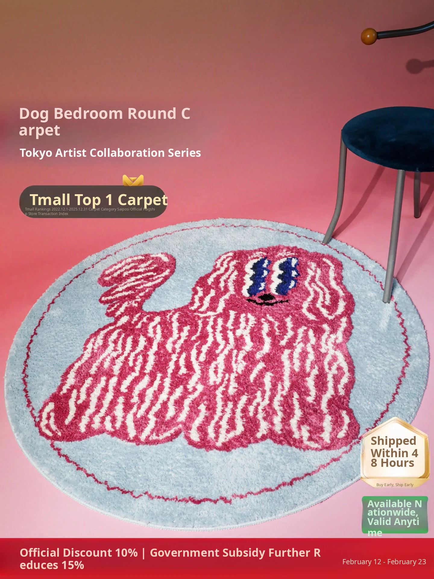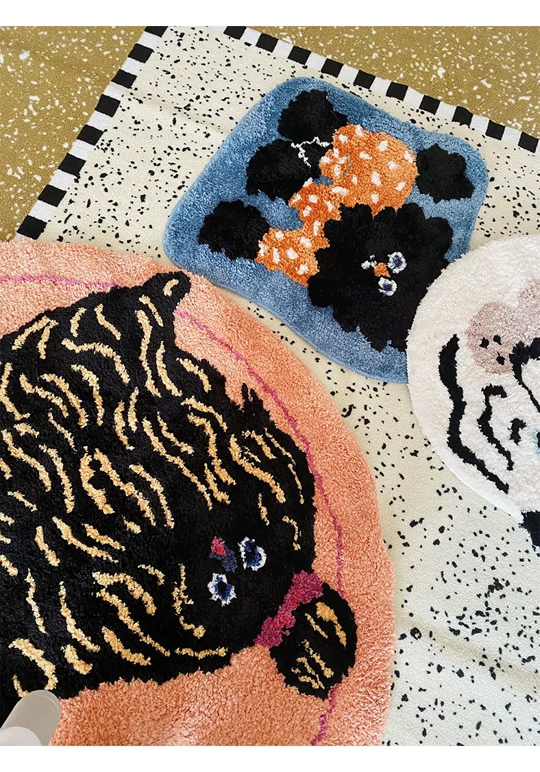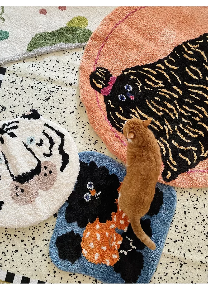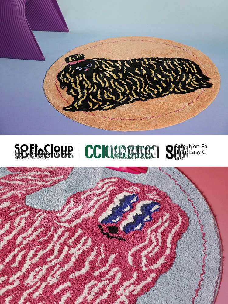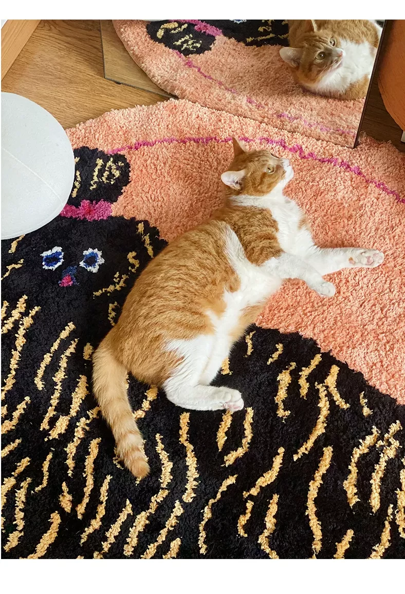 Saipus X Tokyo Artist Round Carpet - Adorable Girl's Bedroom Mat, Perfect for Kids' Rooms and Cozy Cat Cuddling by the Bed