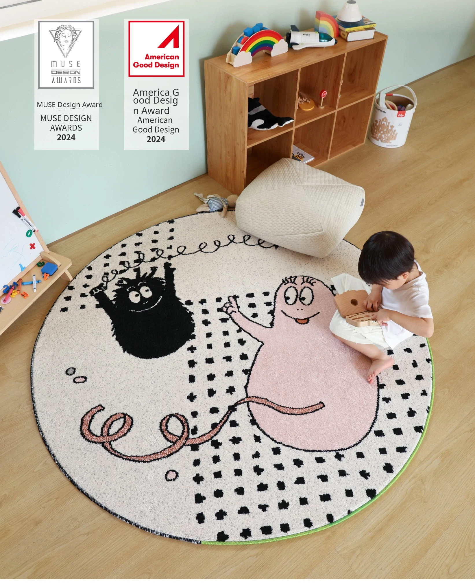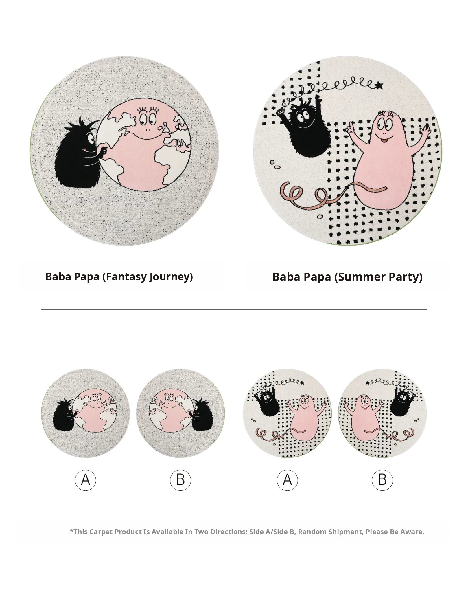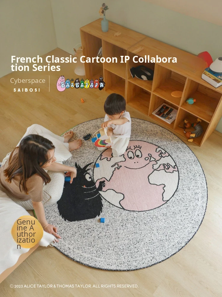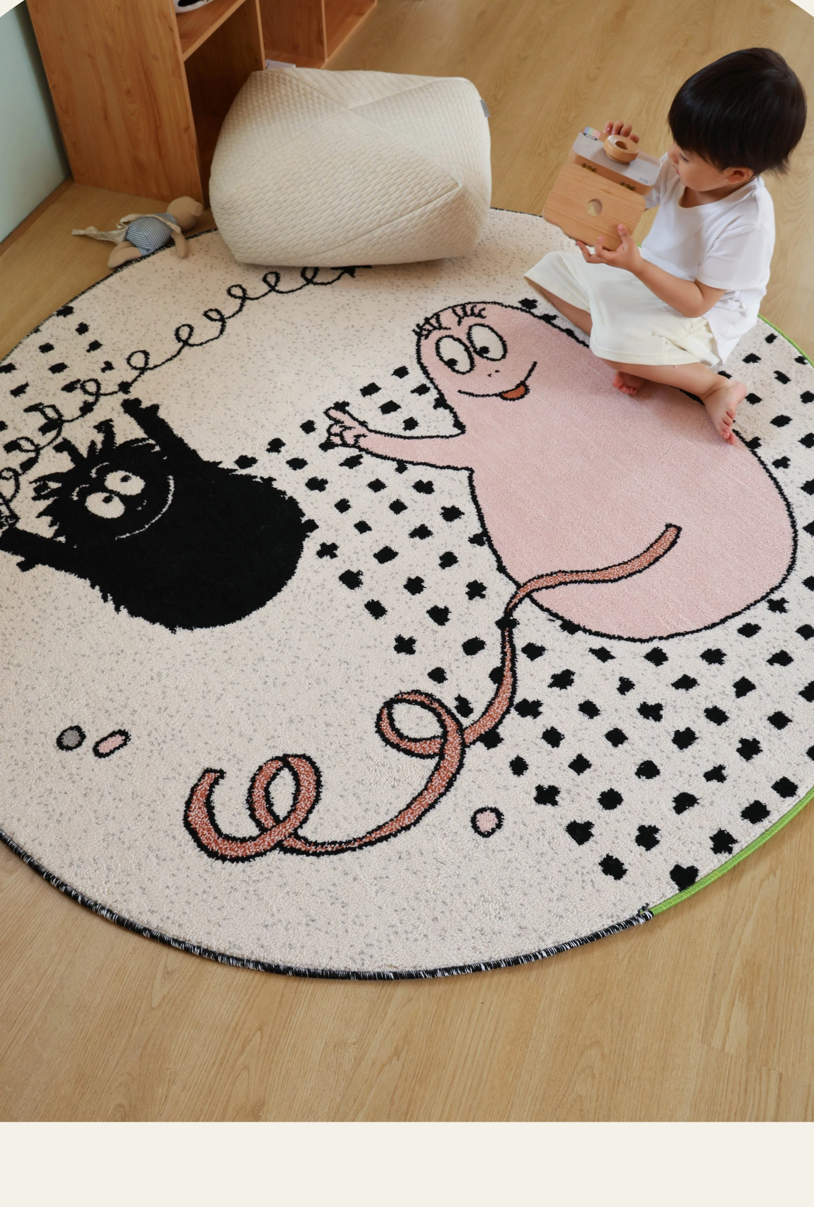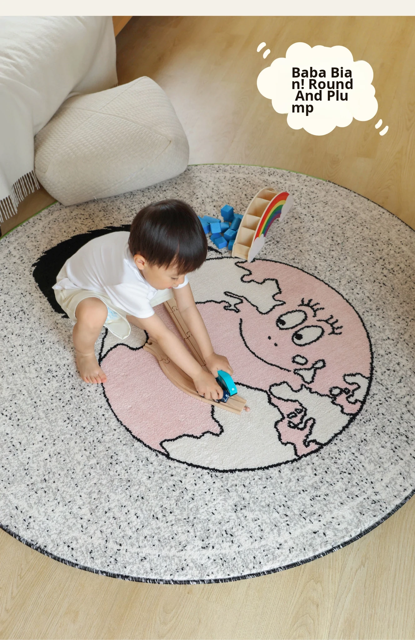 Seabass & Baba Papa Collaboration Non-Adhesive Round Rug for Kids' Room - Perfect for Living Room and Bedroom, Cozy Bedside Mat for a Stylish and Comfortable Home.