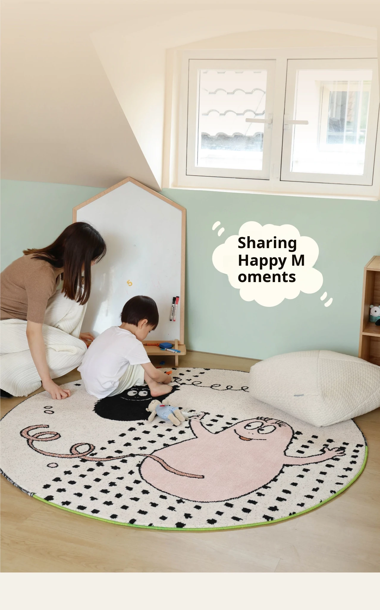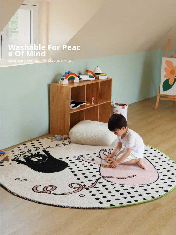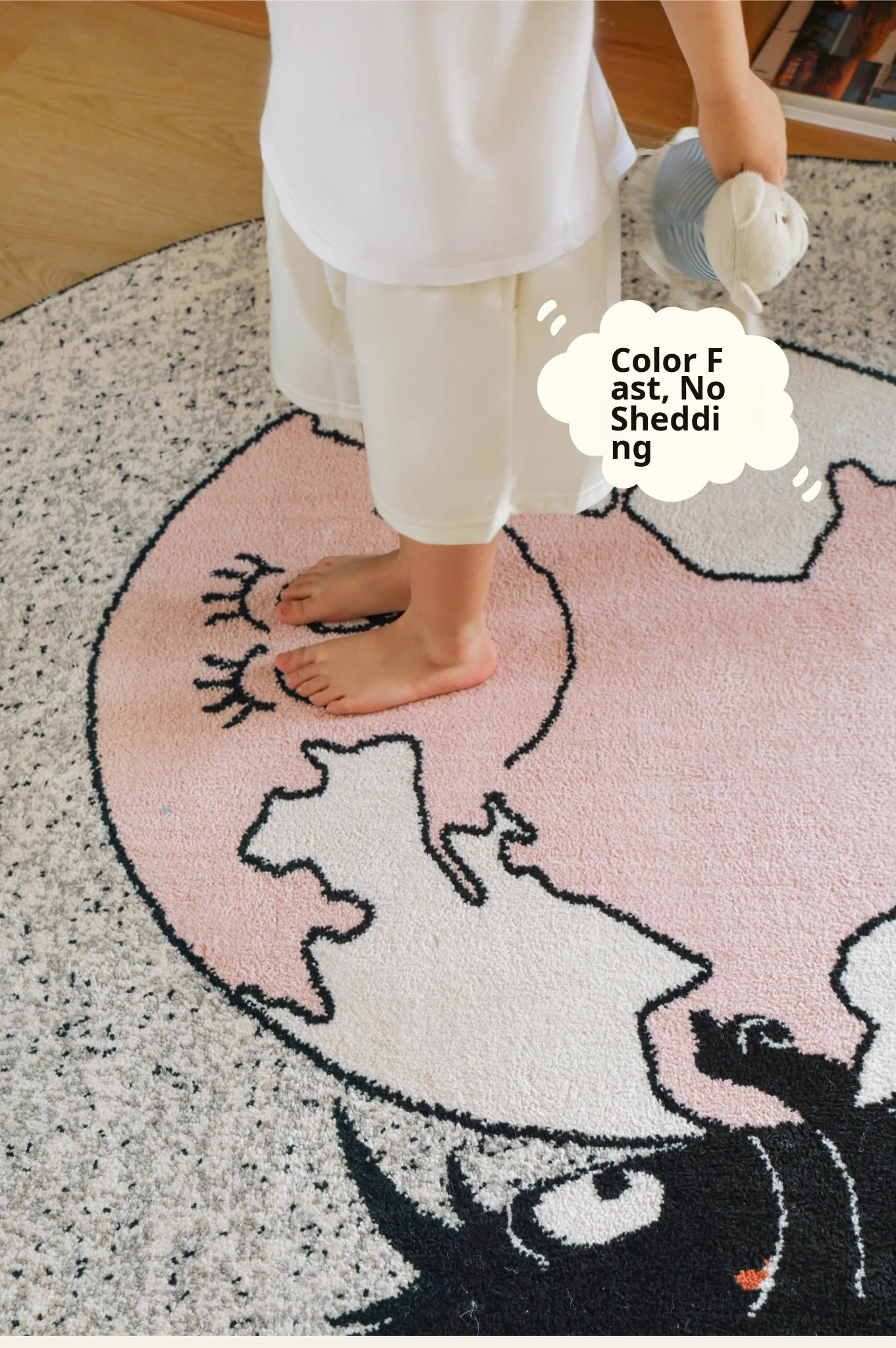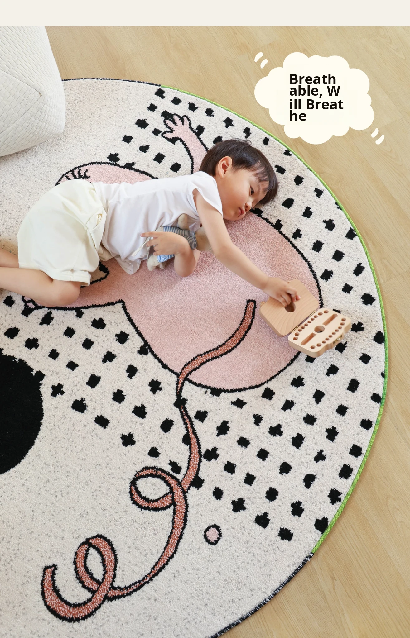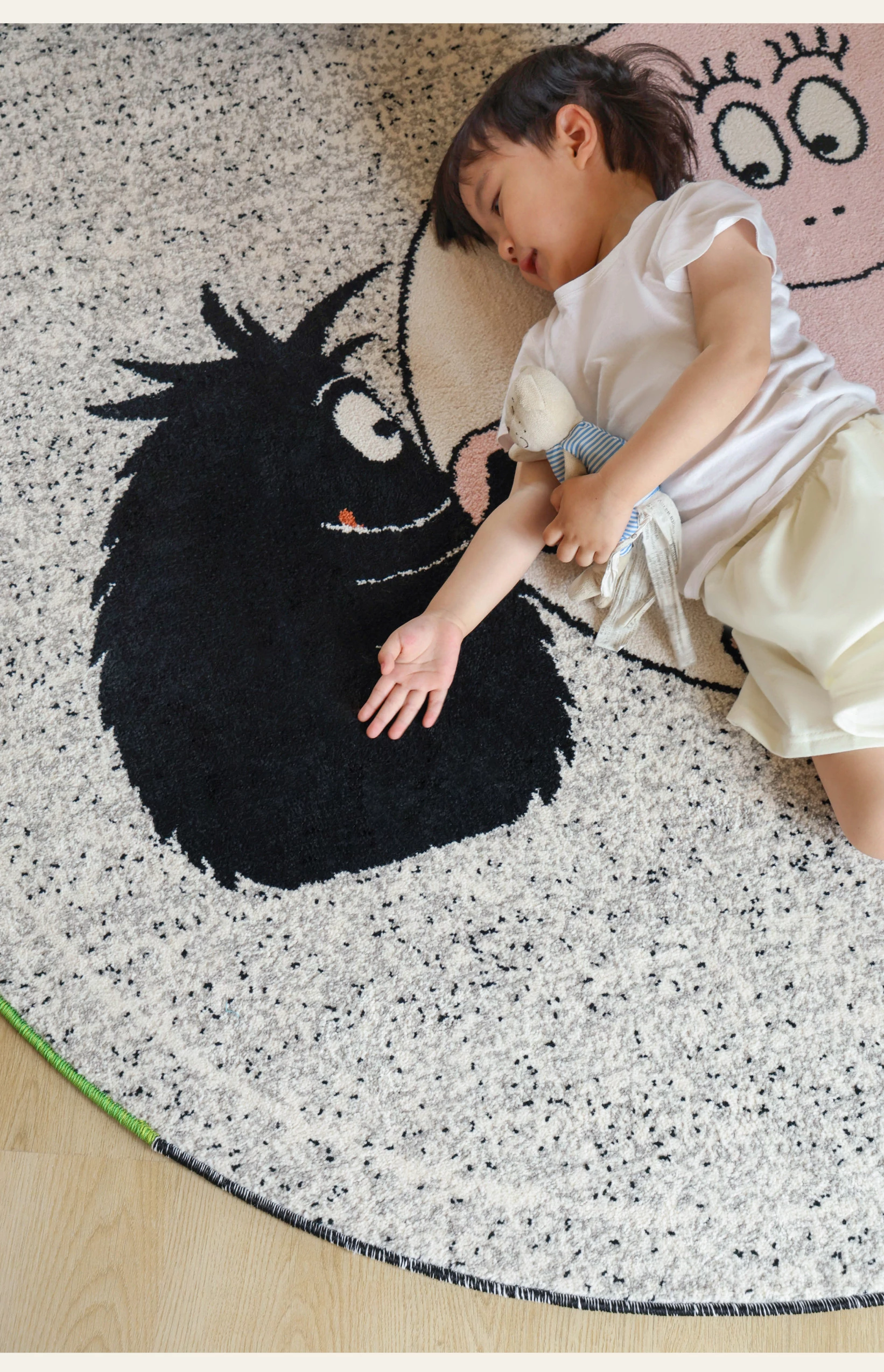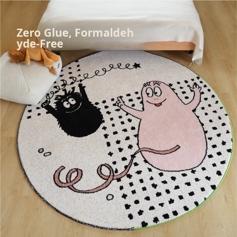 Seabass & Baba Papa Collaboration Non-Adhesive Round Rug for Kids' Room - Perfect for Living Room and Bedroom, Cozy Bedside Mat for a Stylish and Comfortable Home.