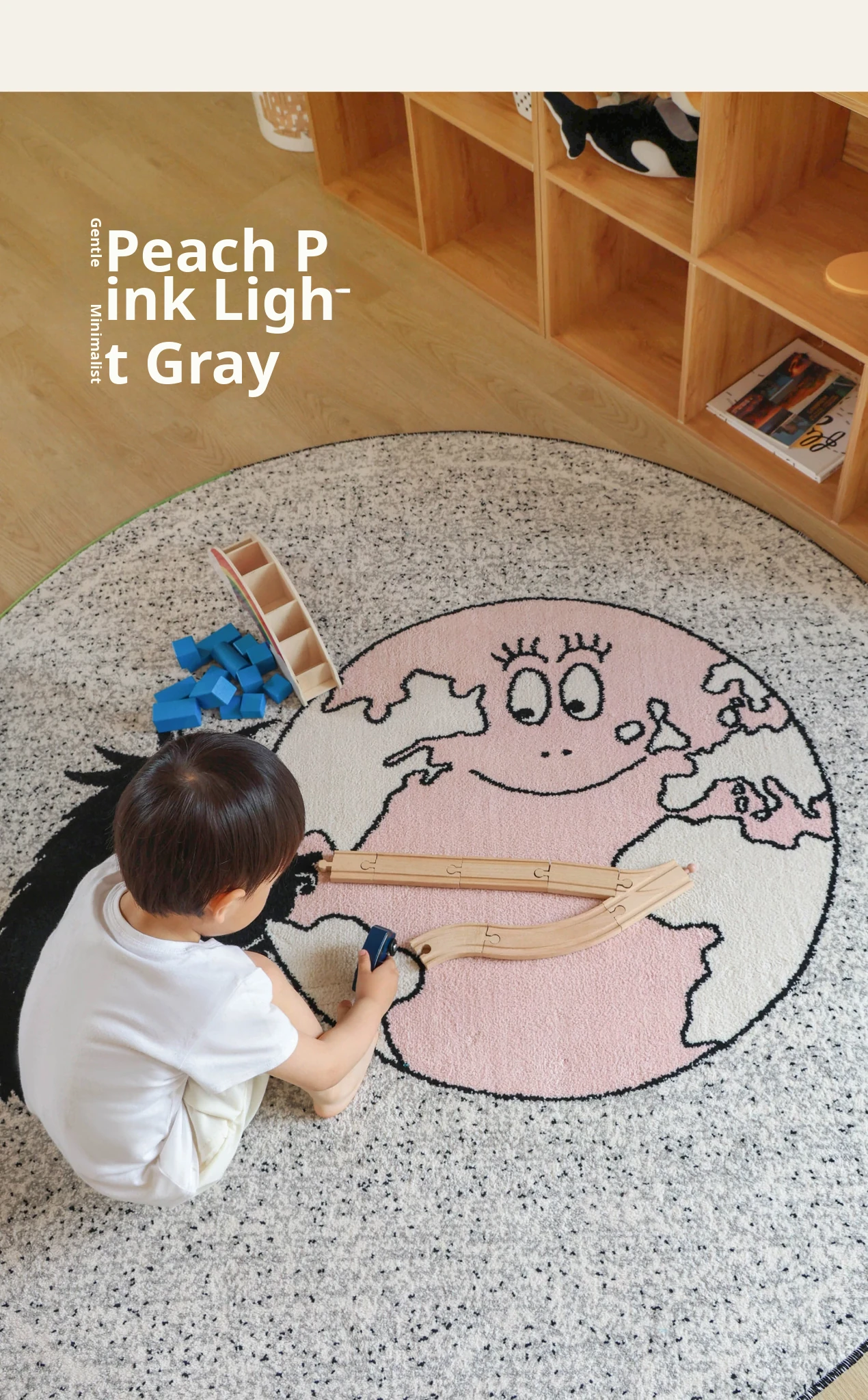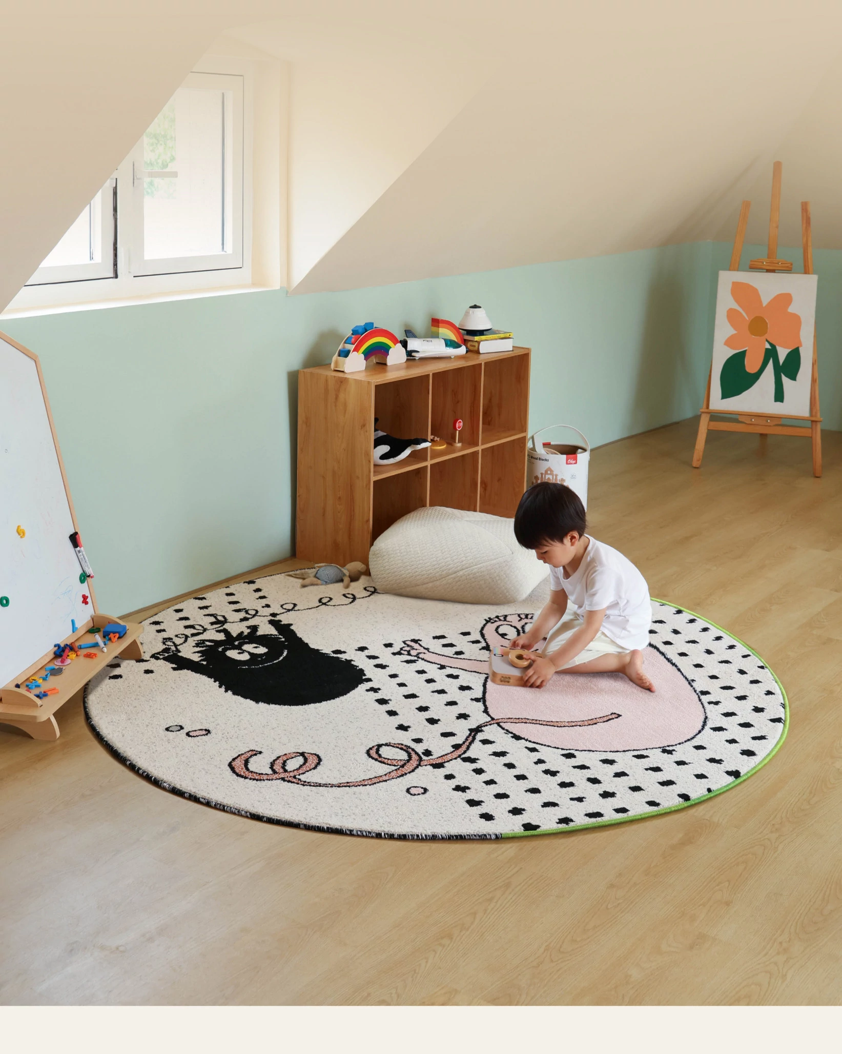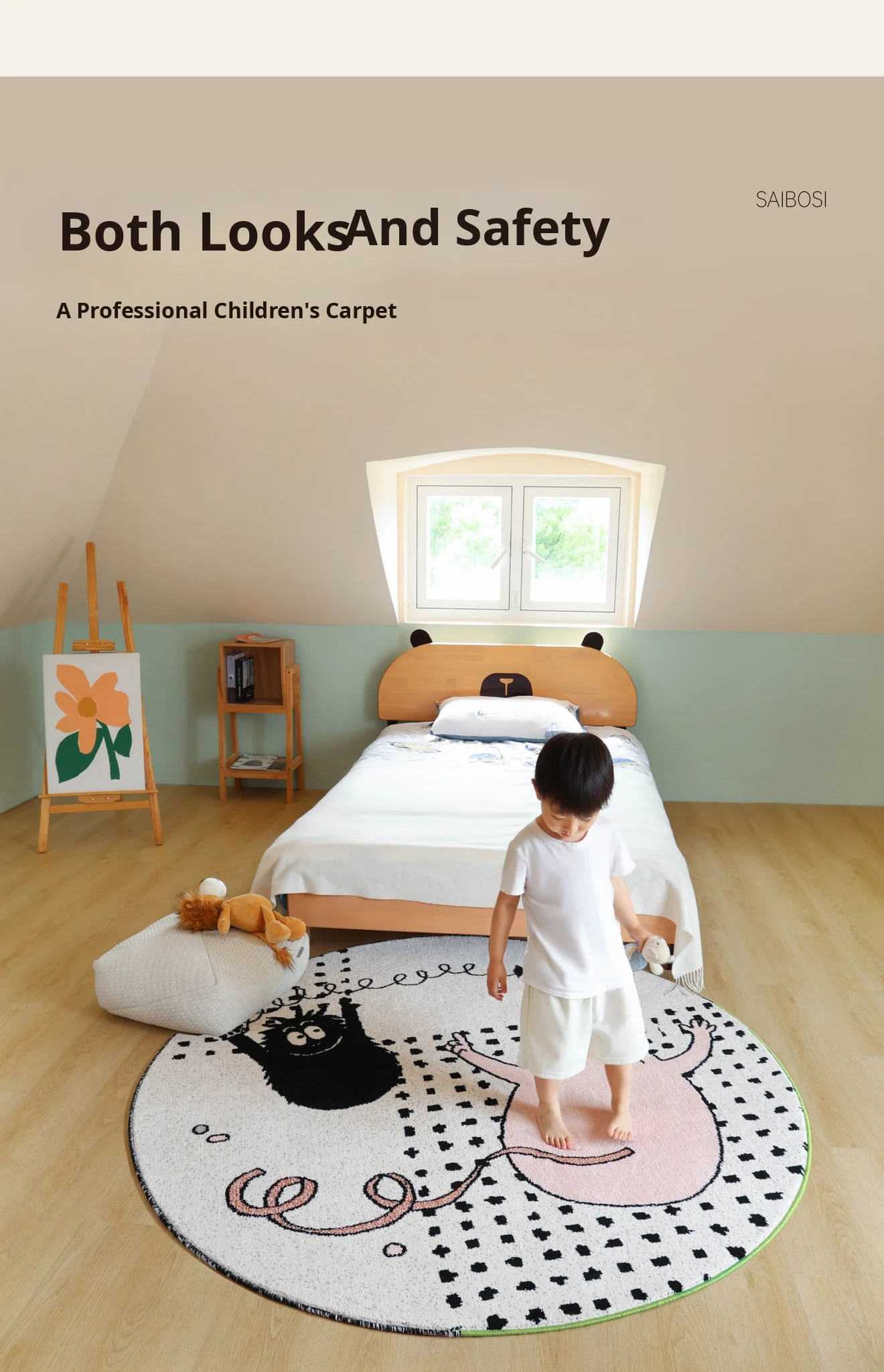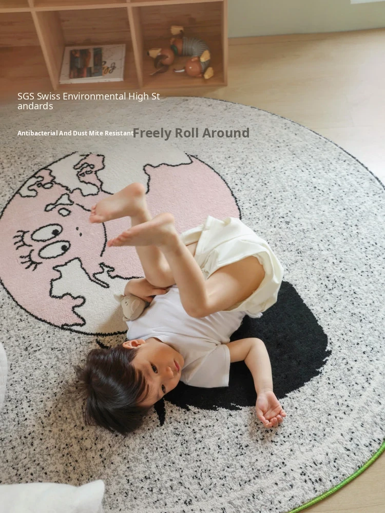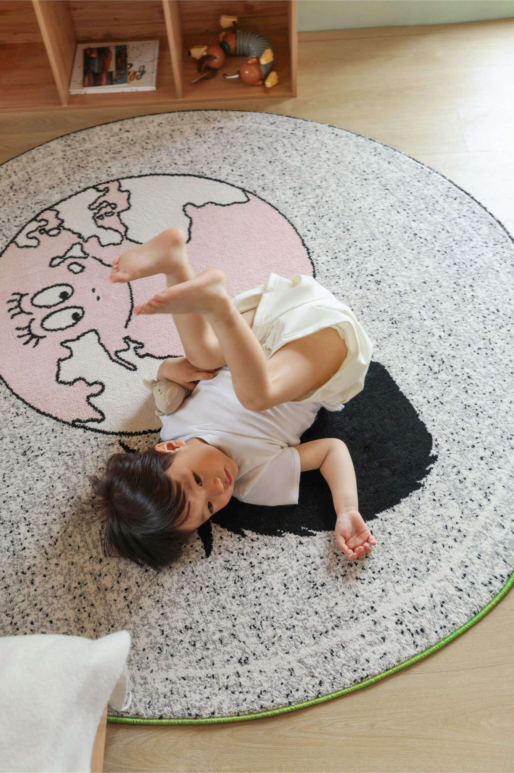 Seabass & Baba Papa Collaboration Non-Adhesive Round Rug for Kids' Room - Perfect for Living Room and Bedroom, Cozy Bedside Mat for a Stylish and Comfortable Home.