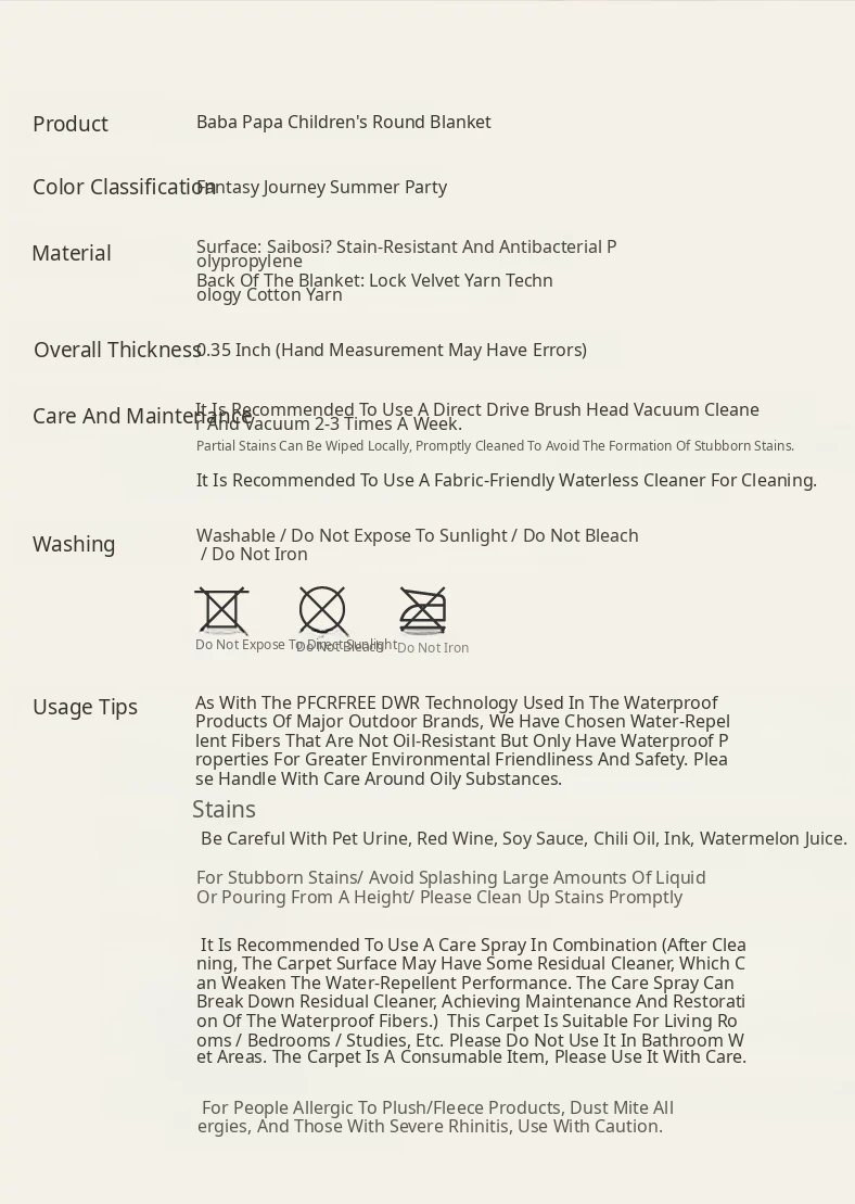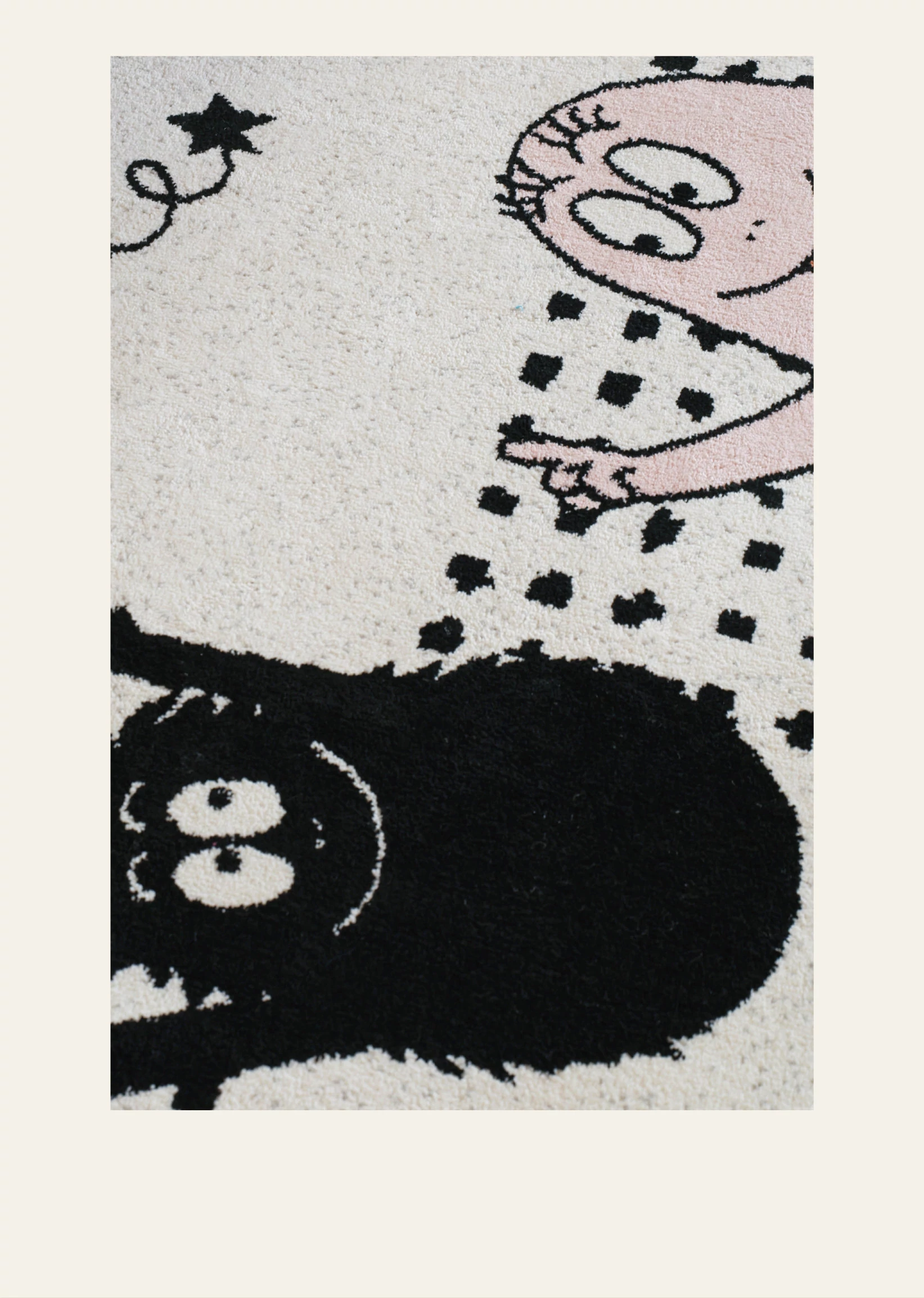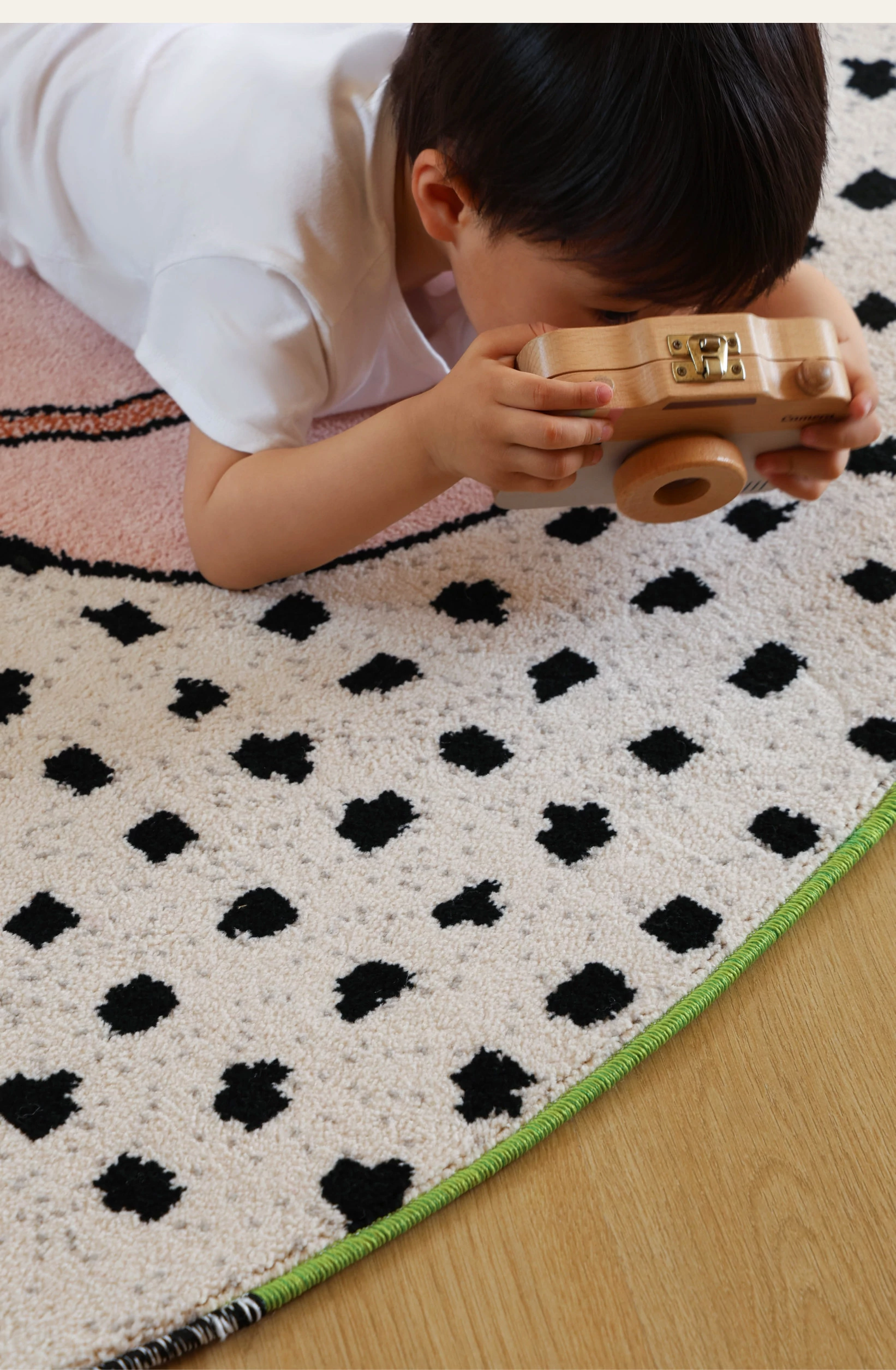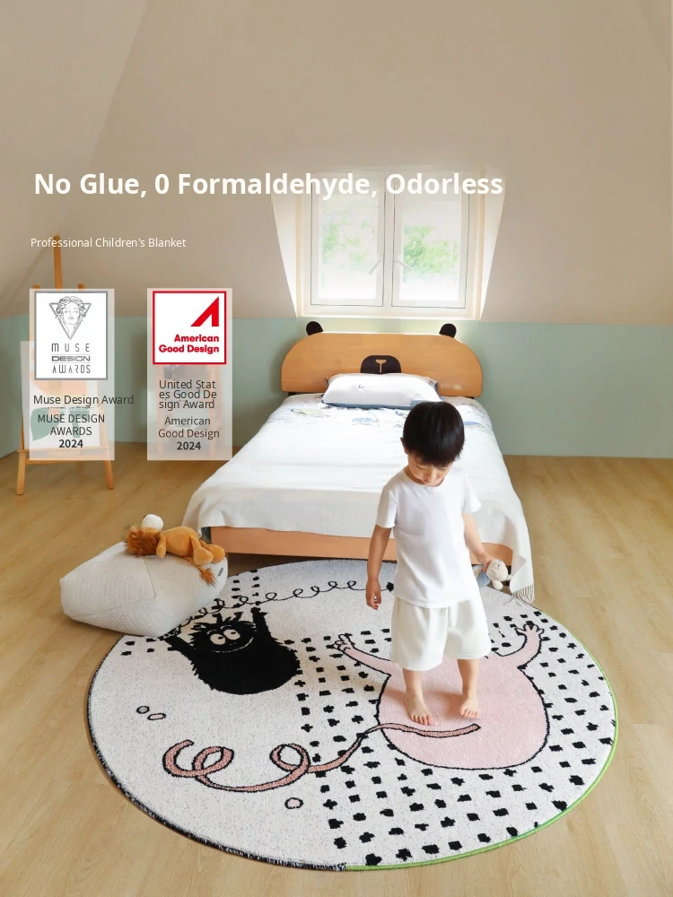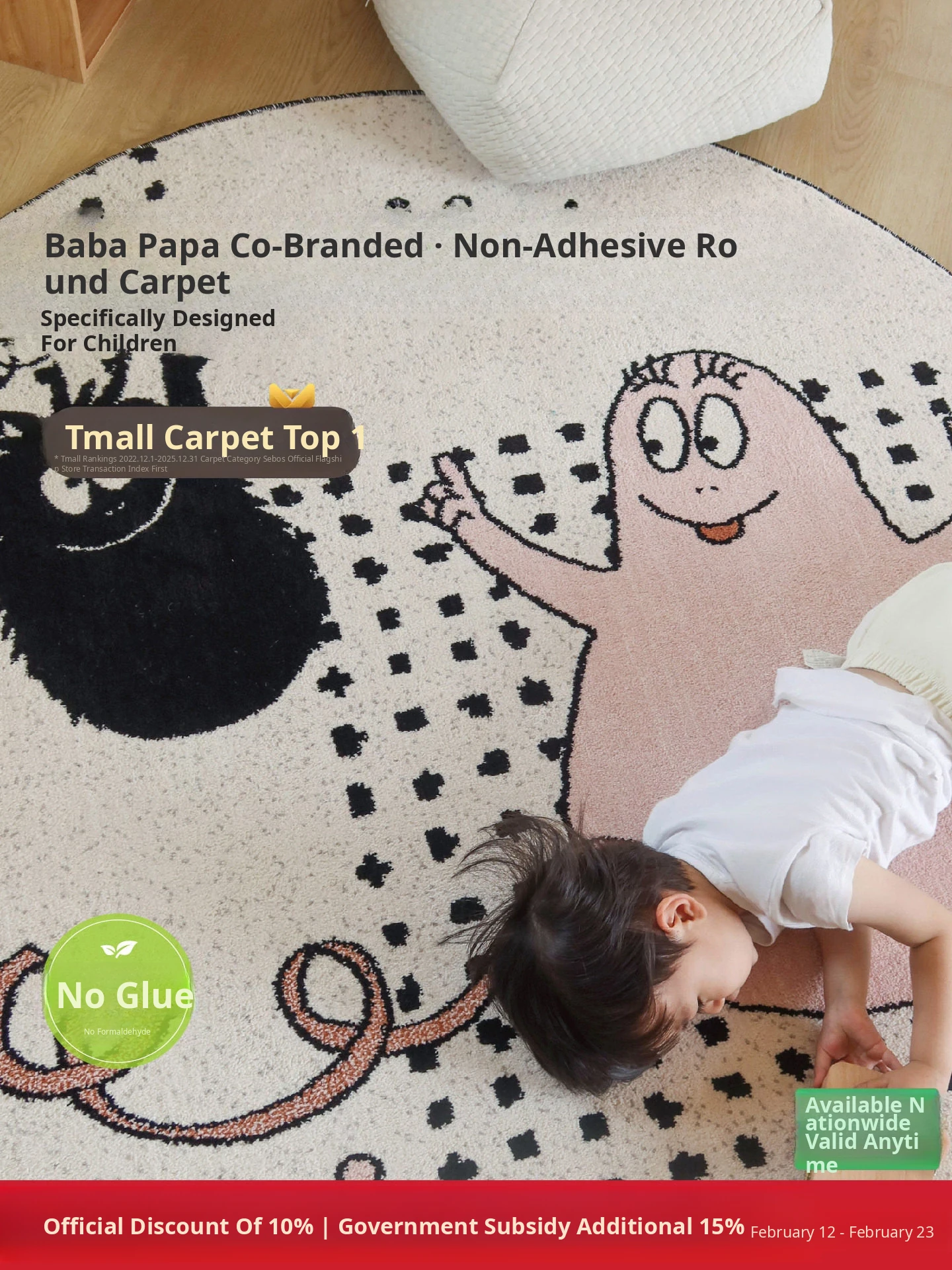 Seabass & Baba Papa Collaboration Non-Adhesive Round Rug for Kids' Room - Perfect for Living Room and Bedroom, Cozy Bedside Mat for a Stylish and Comfortable Home.