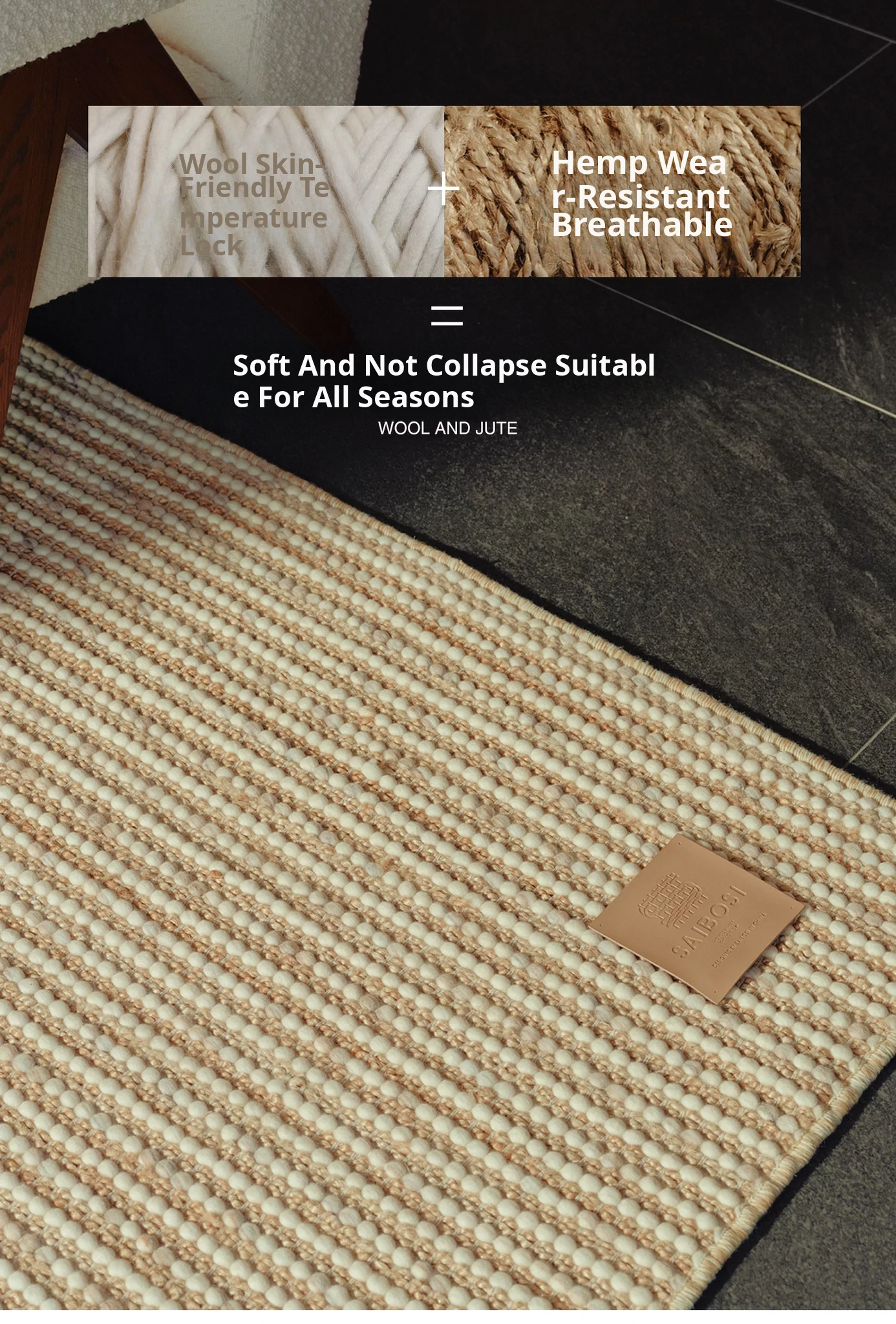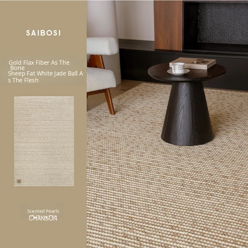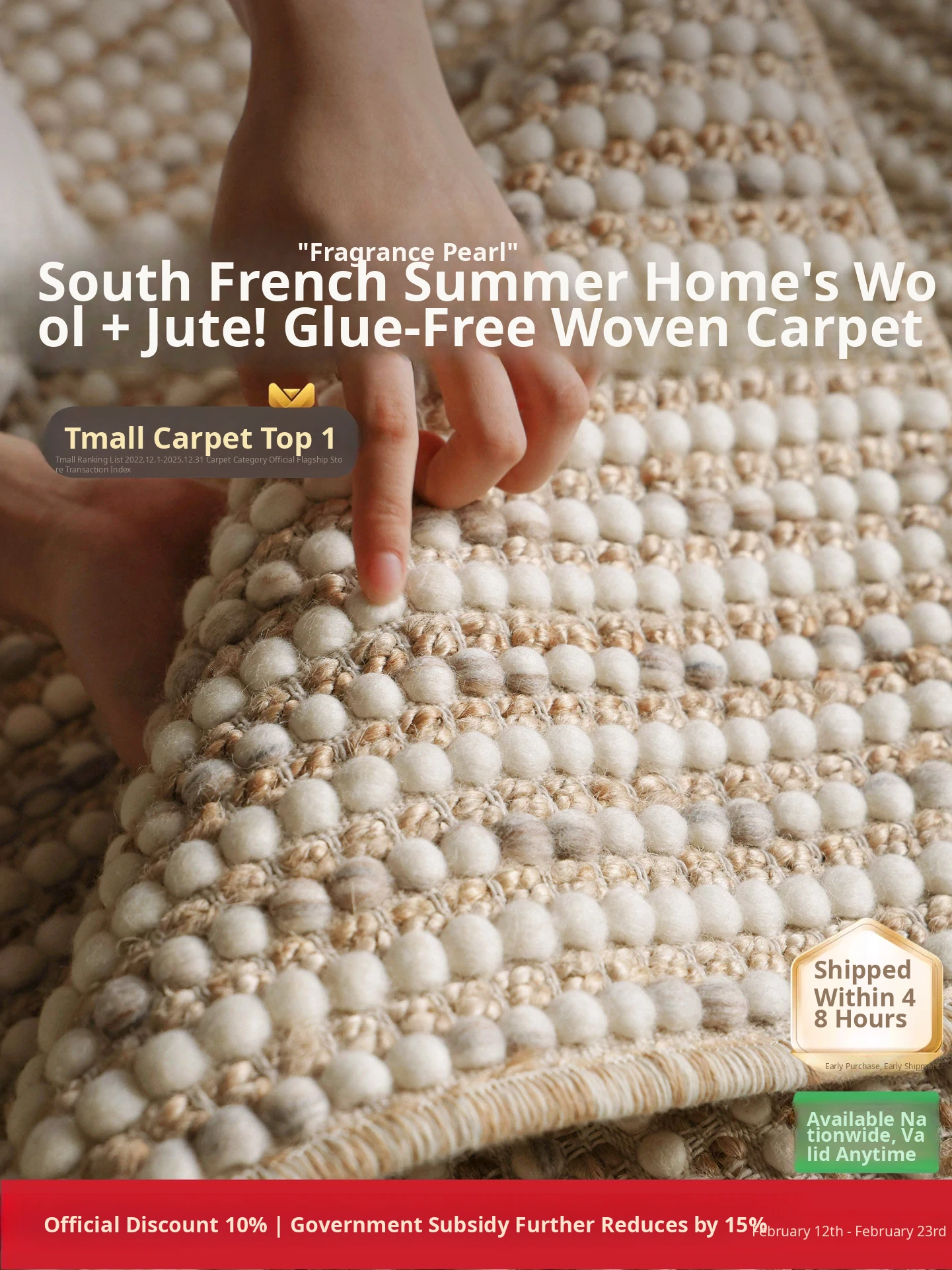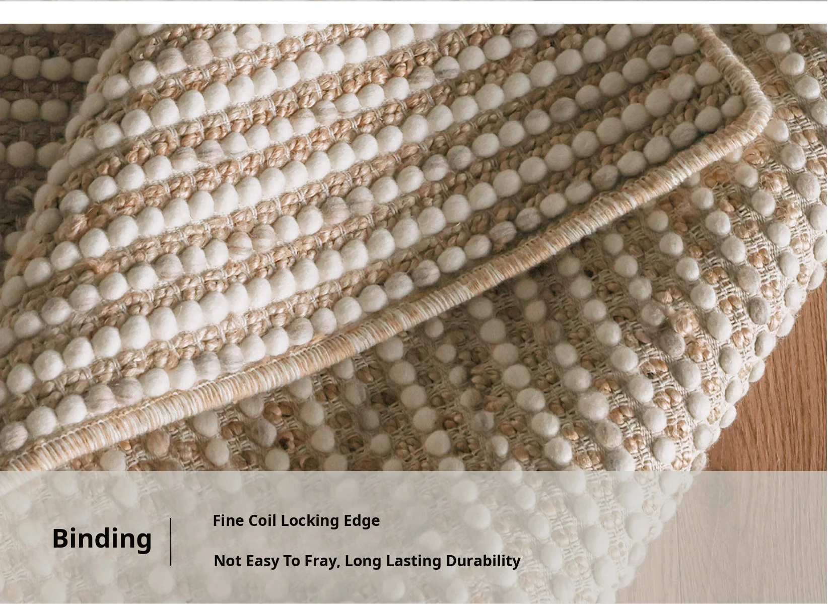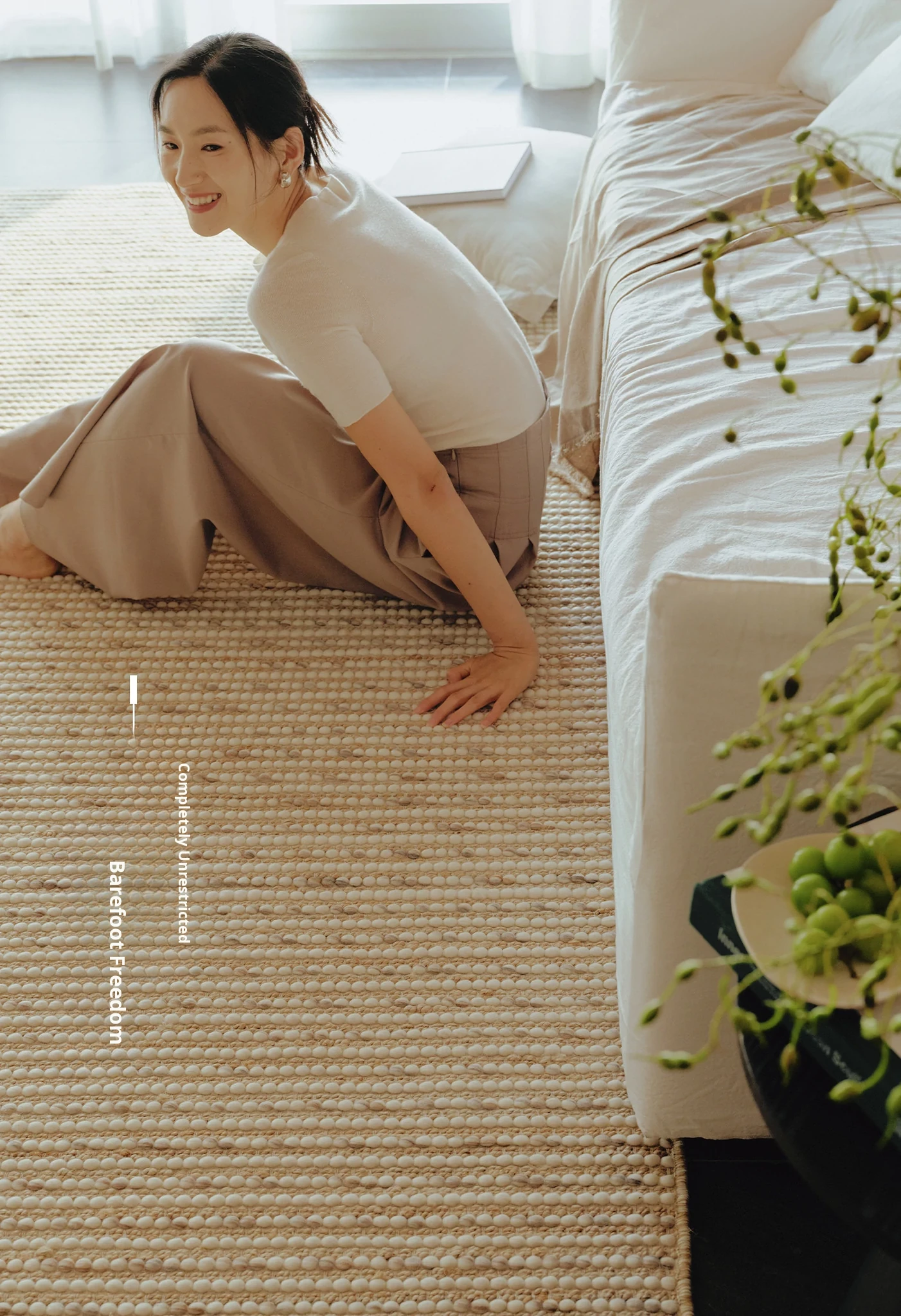 Seaboss Fragrant Pearl Imported Wool and Jute Non-Adhesive Woven Carpet - Luxurious and Elegant Area Rug for Living Room and Bedroom, Perfect for Modern Sofas