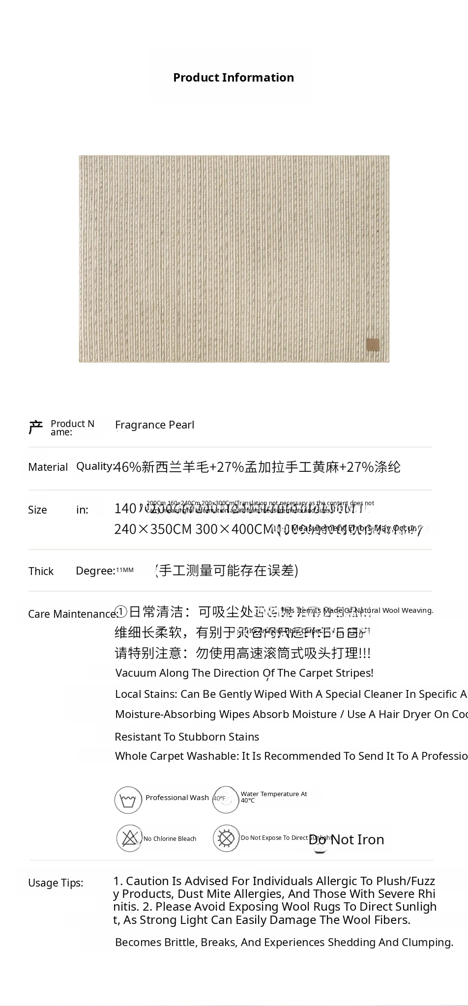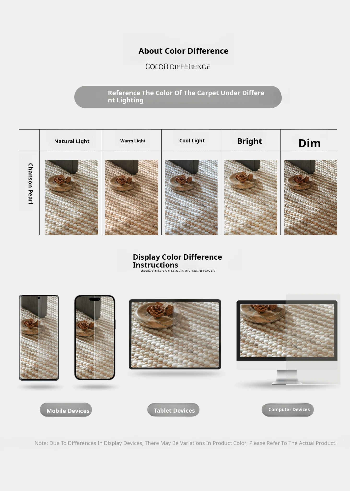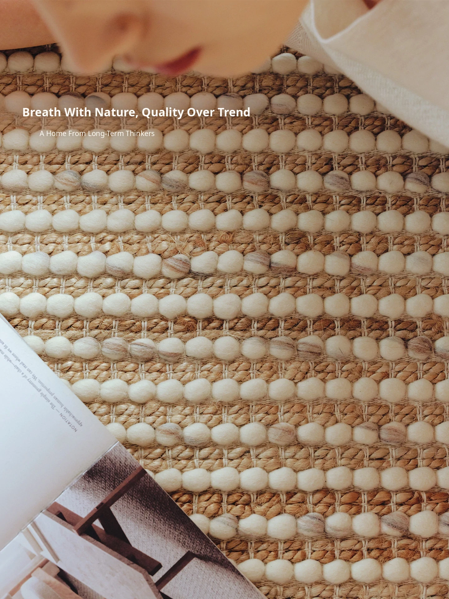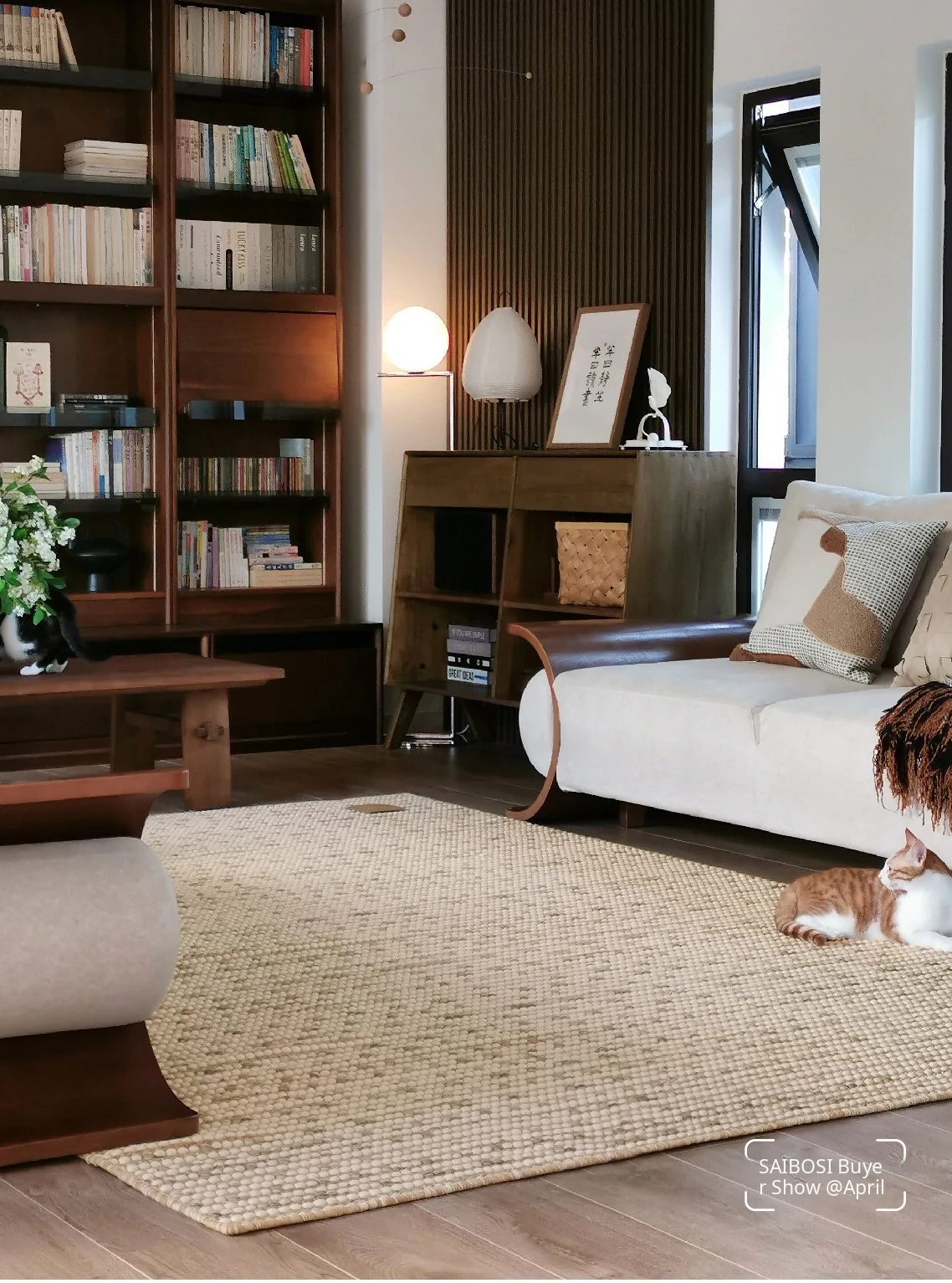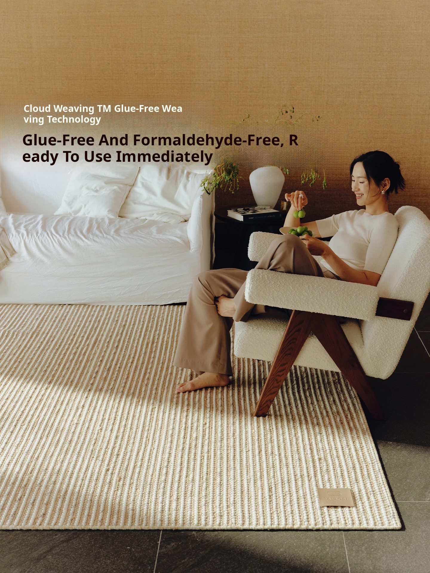 Seaboss Fragrant Pearl Imported Wool and Jute Non-Adhesive Woven Carpet - Luxurious and Elegant Area Rug for Living Room and Bedroom, Perfect for Modern Sofas
