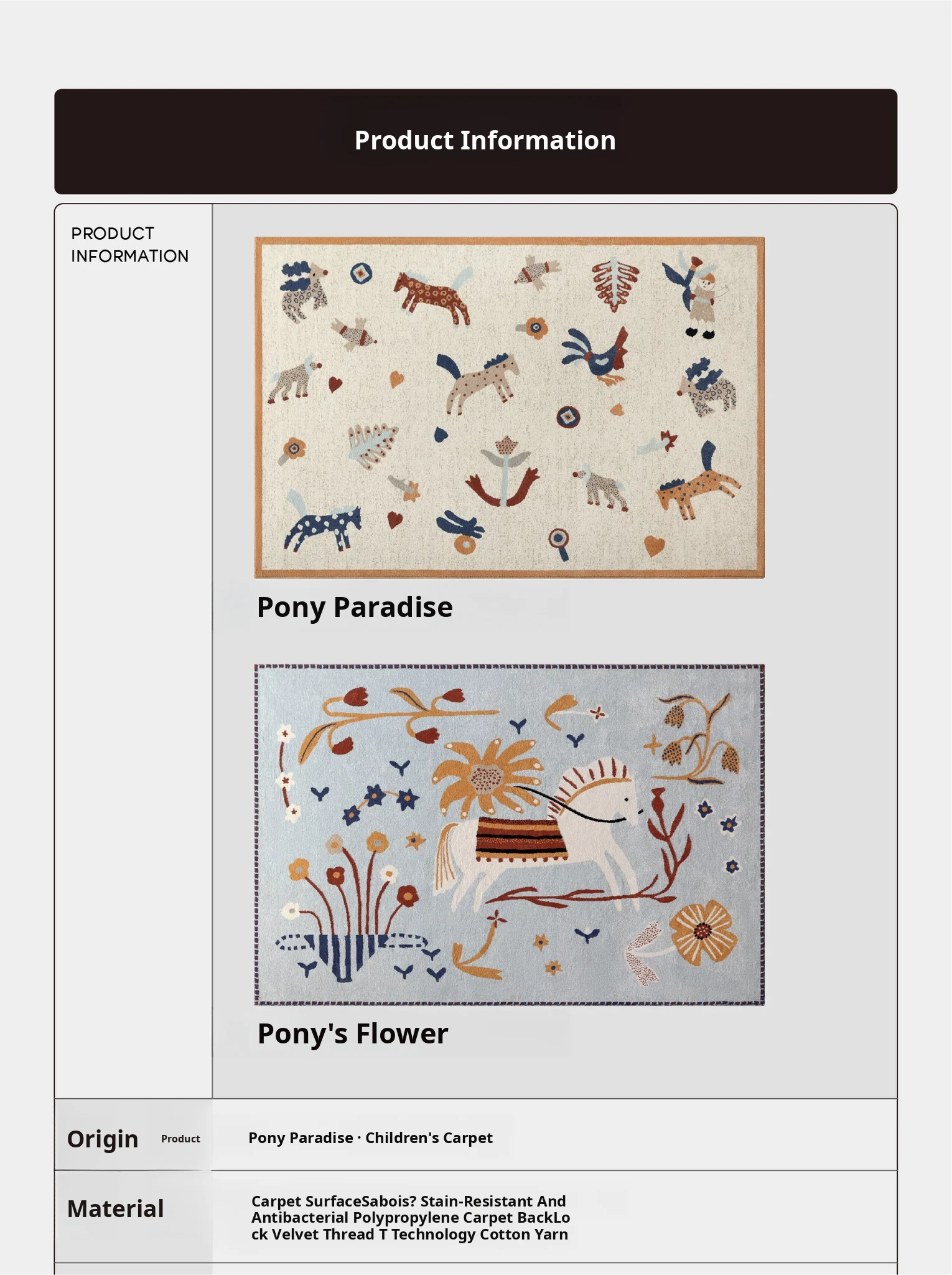 Seaboss Kids' Pony Paradise Non-Toxic Waterproof Bacteria-Resistant Area Rug for Cozy Room Decor - Perfect for Bedrooms - New Collection 2026