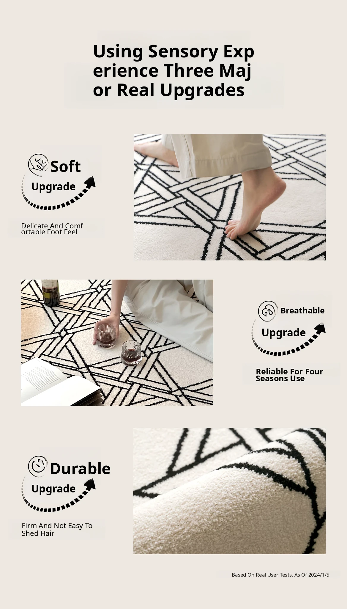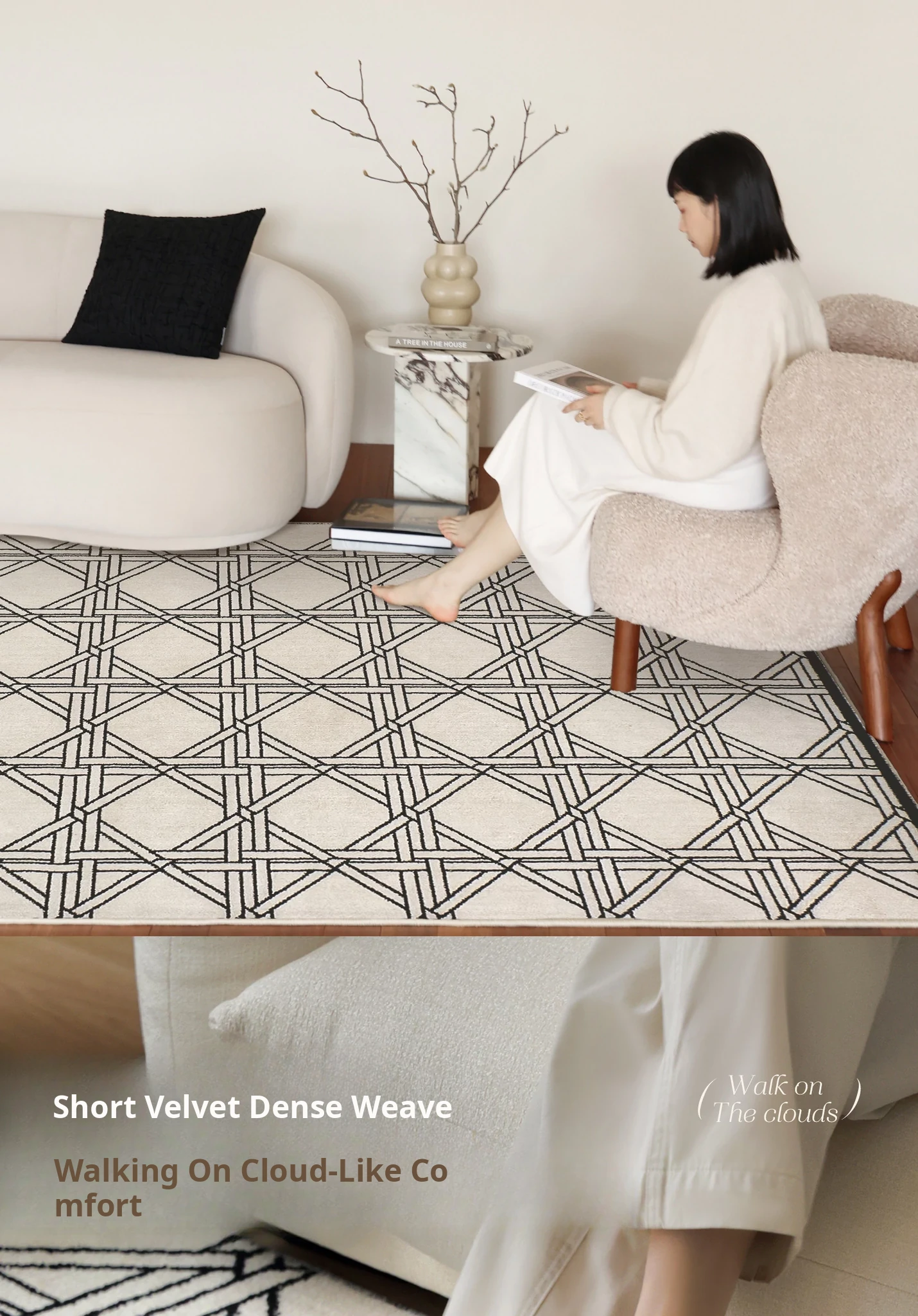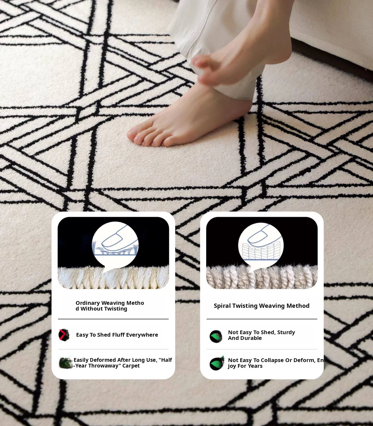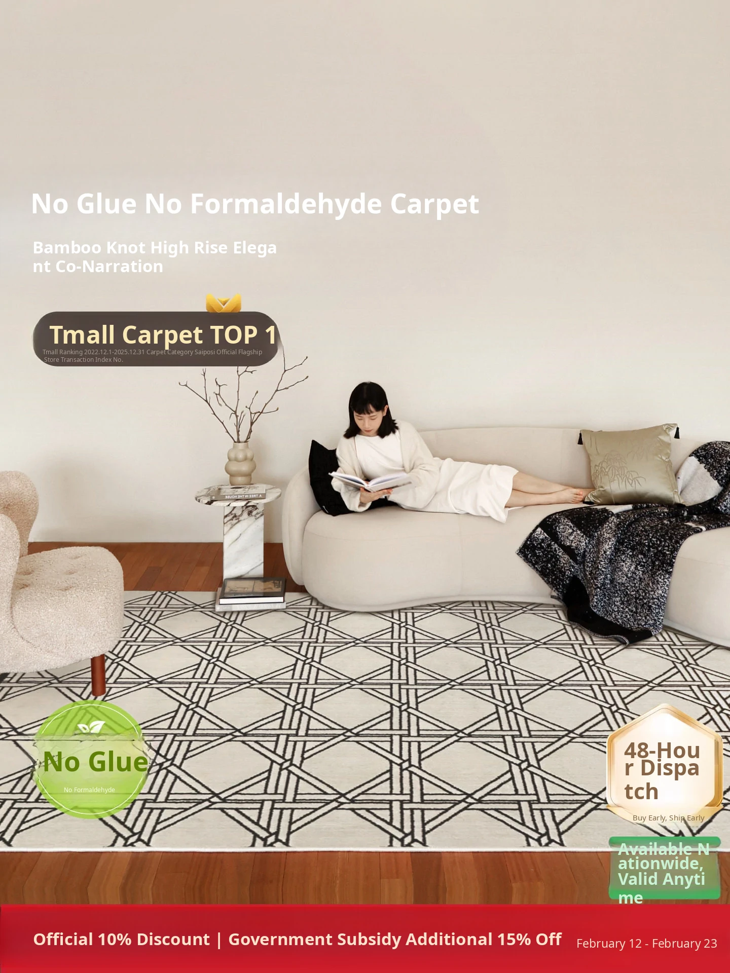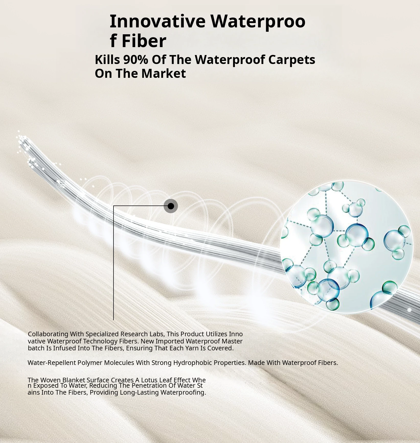 Seaboss No Glue Living Room Carpet - Bamboo Fiber, Modern Luxury Style, Waterproof, Stain Resistant, Antibacterial, Ideal for Bedroom and Cozy Spaces