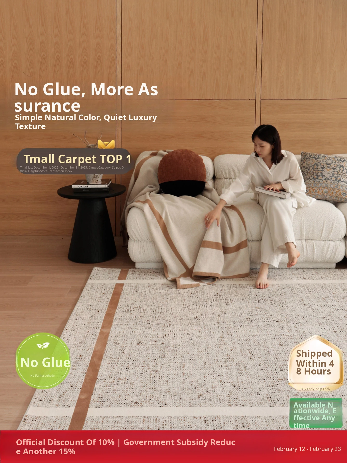 Seaboss Non-Adhesive Antimicrobial Carpet - French Elegant Minimalist Design for Oak Living Room and Bedroom, Elevate Your Space with Sophisticated Comfort and Style
