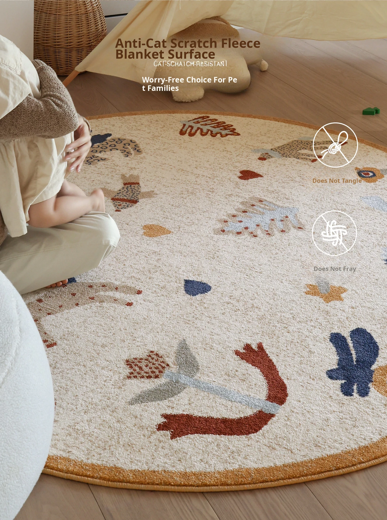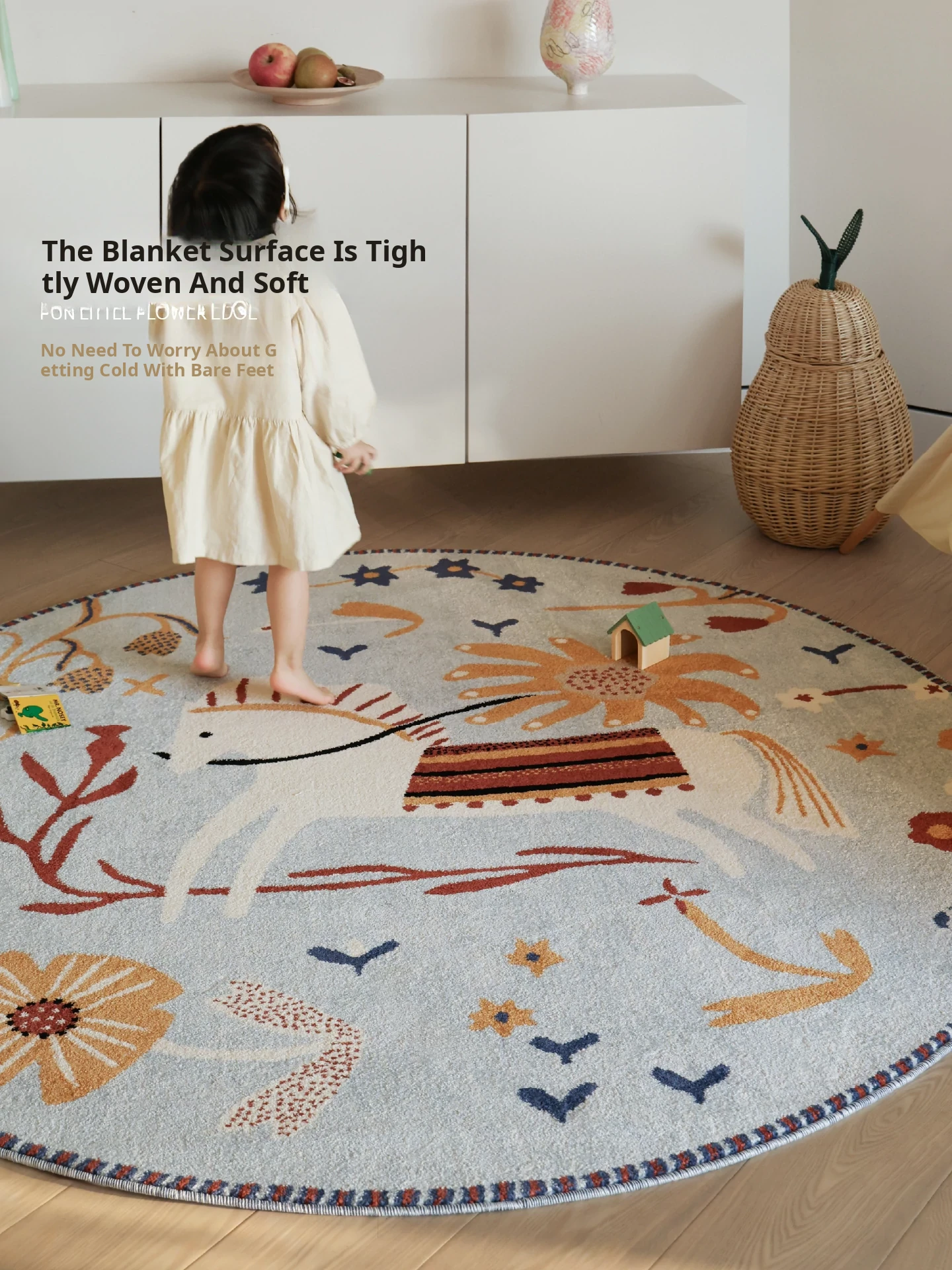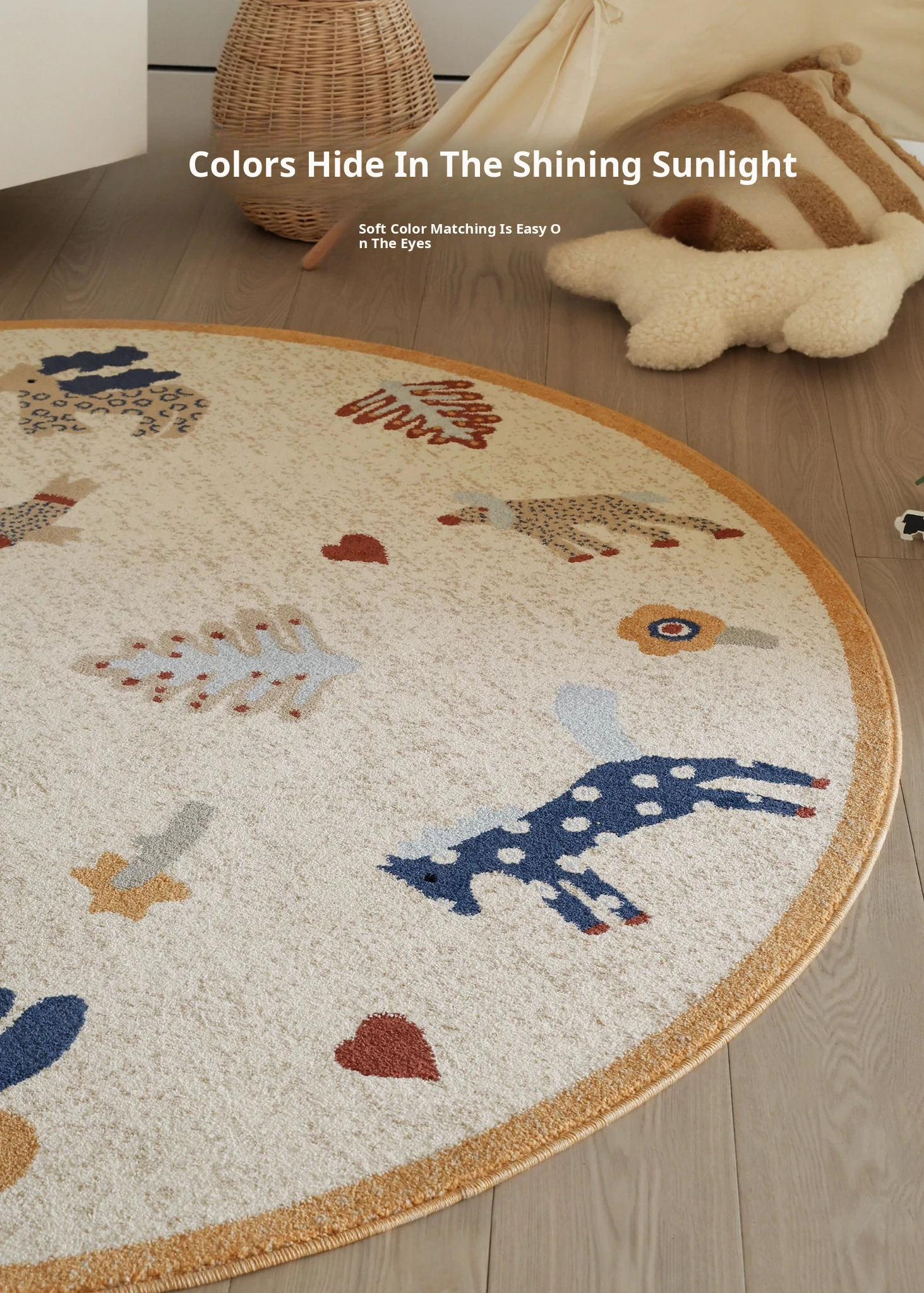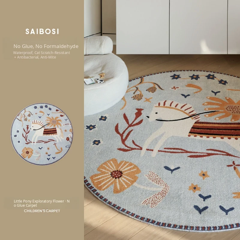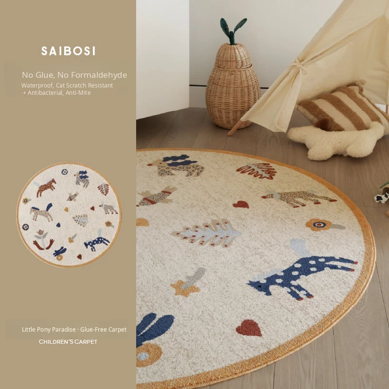 Seaboss Non-Adhesive Round Carpet for Kids - Antibacterial, Washable Bedroom and Nursery Rug, Perfect for Playtime - New 2026 Collection