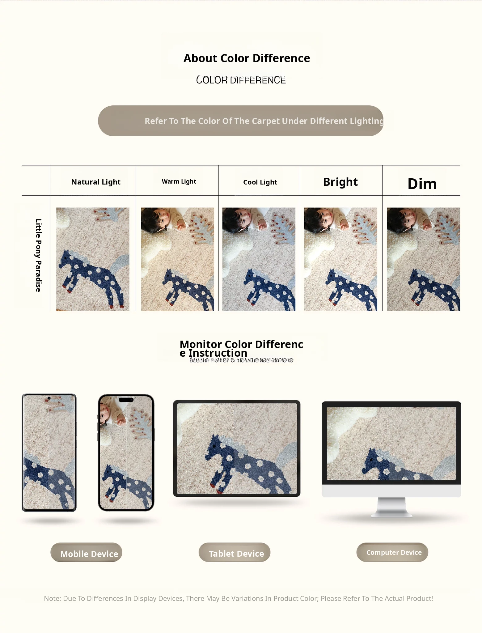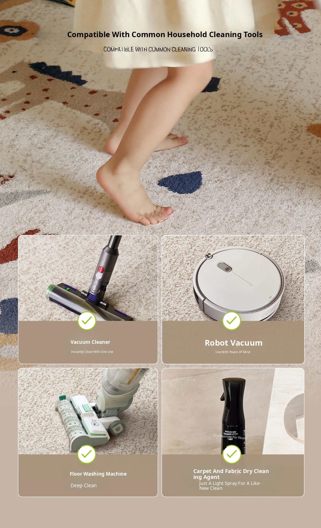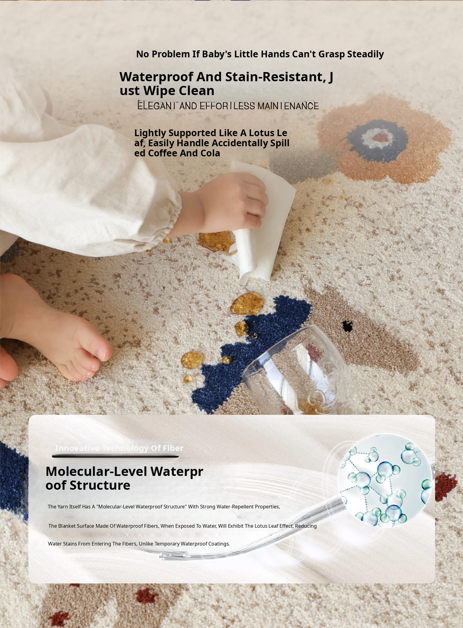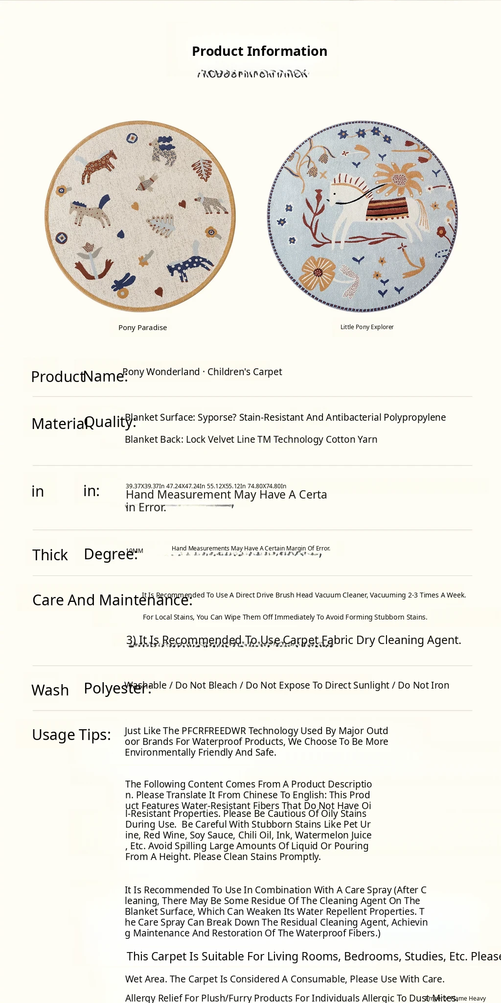 Seaboss Non-Adhesive Round Carpet for Kids - Antibacterial, Washable Bedroom and Nursery Rug, Perfect for Playtime - New 2026 Collection