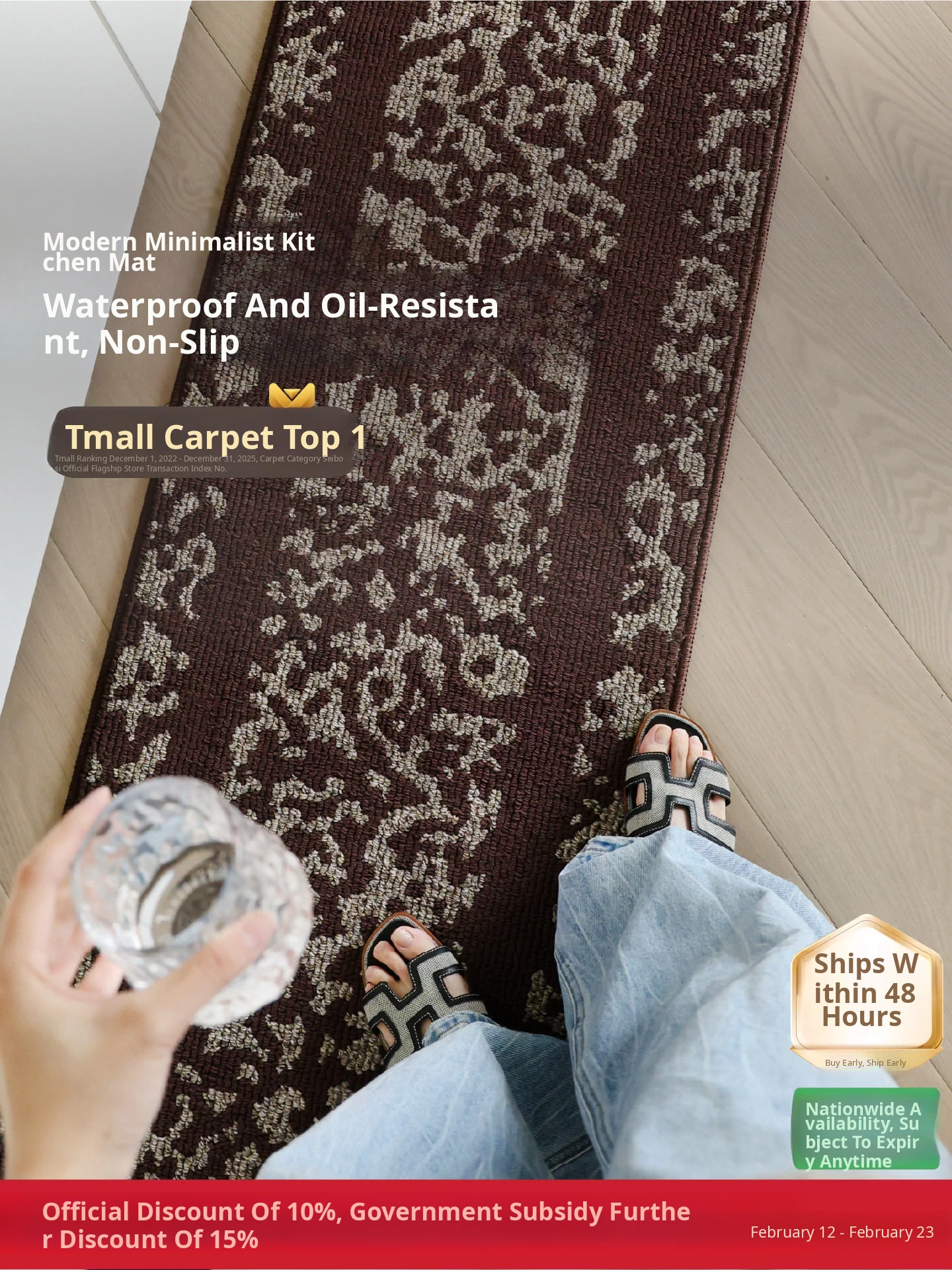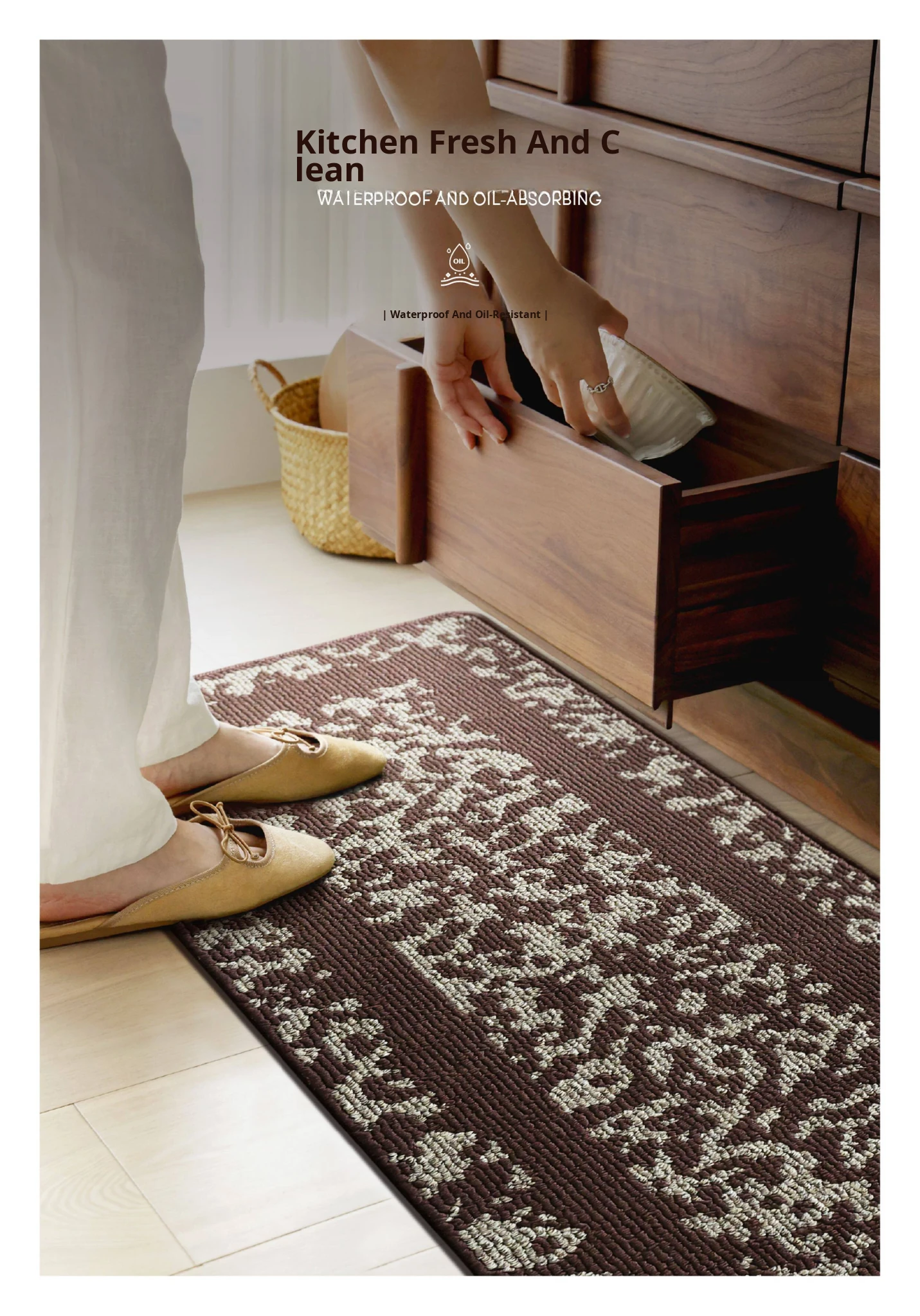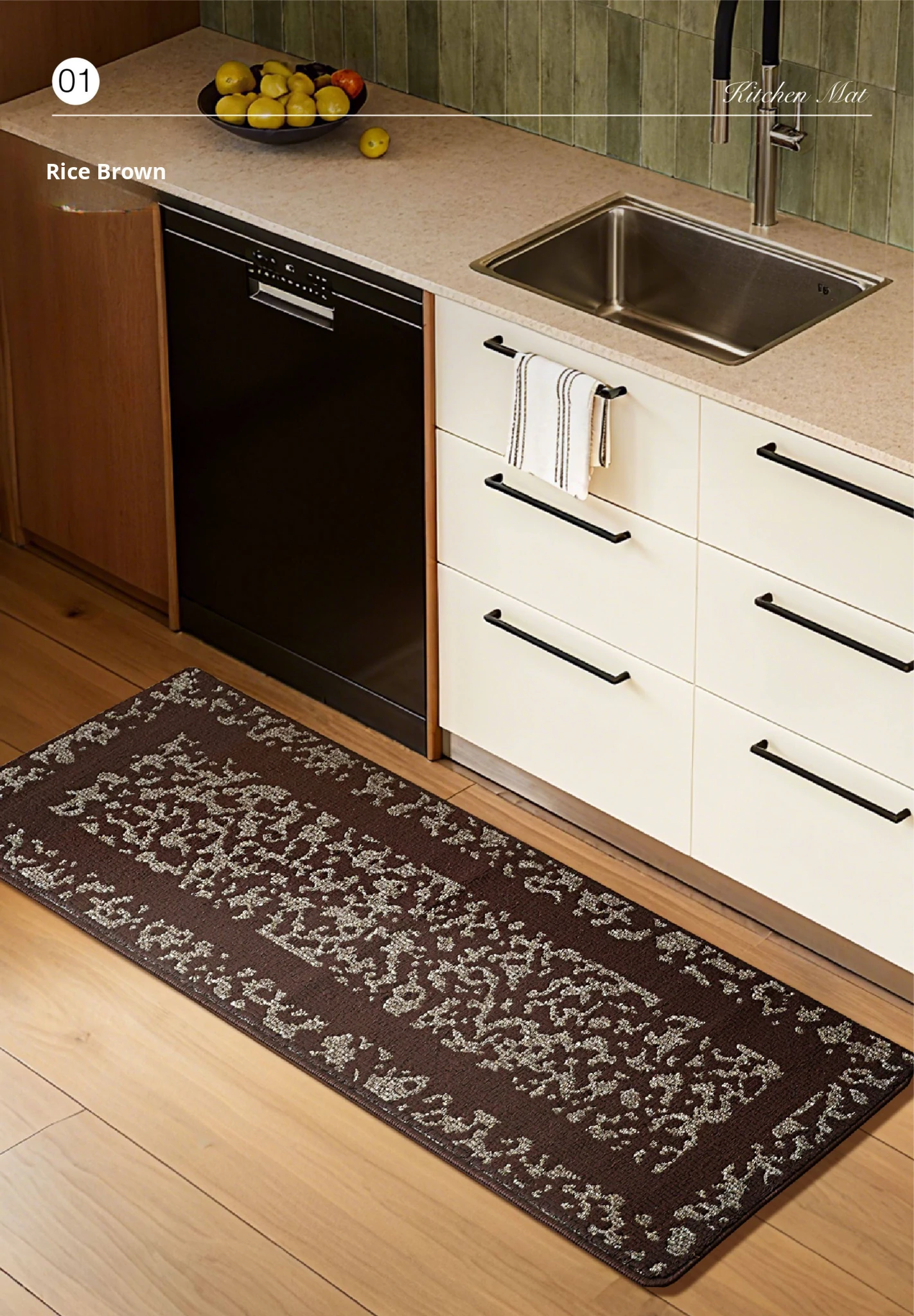 Seaboss Washable Kitchen Mat - Waterproof, Oil-Resistant, Stain-Proof, Non-Slip, Minimalist Design, Luxurious Feel, Long Runner Rug for Elegant Spaces