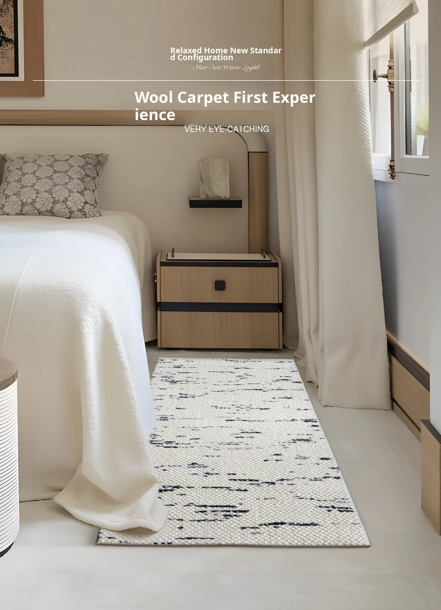 Seabreeze Luxury Wool Area Rug - Elegant Bedside Carpet for Bedroom & Living Room, Perfect for Adding a Touch of Sophistication to Your Space. Ideal for End of Bed or as a Cozy Floor Mat. Transform Your Room with Style!