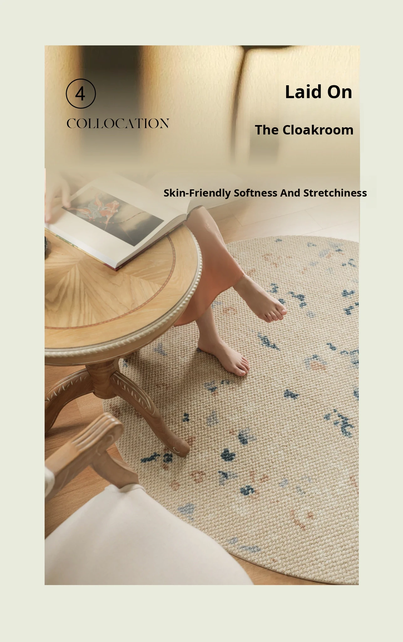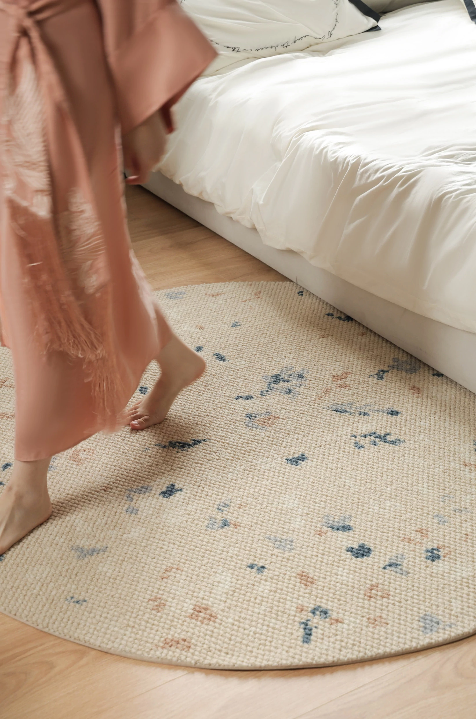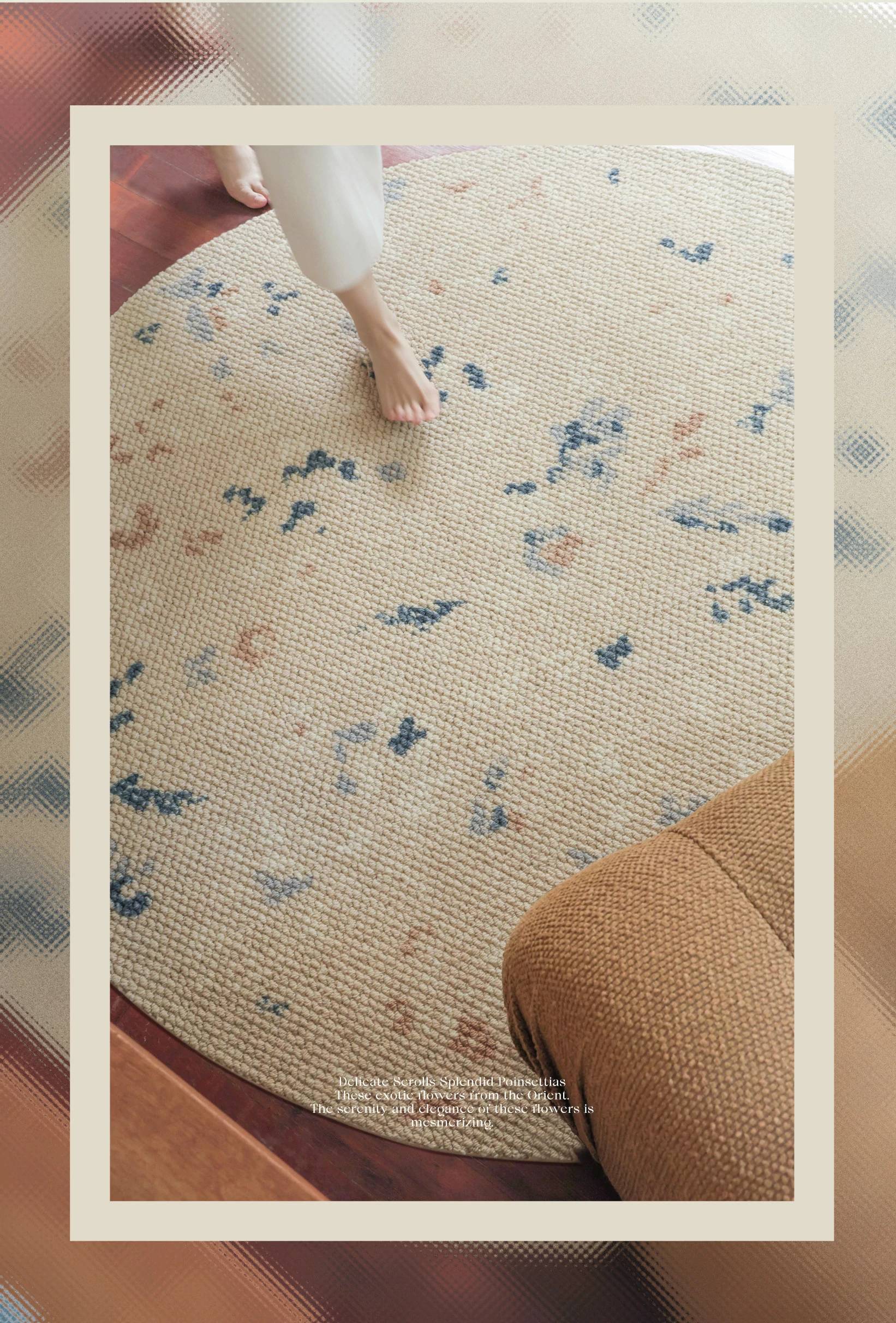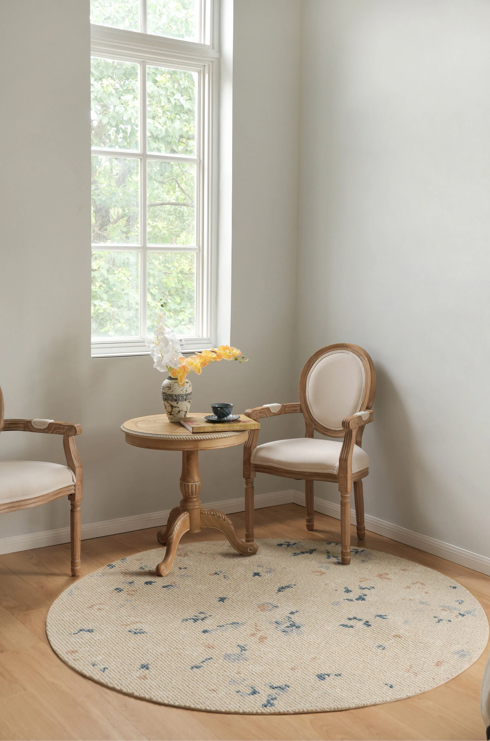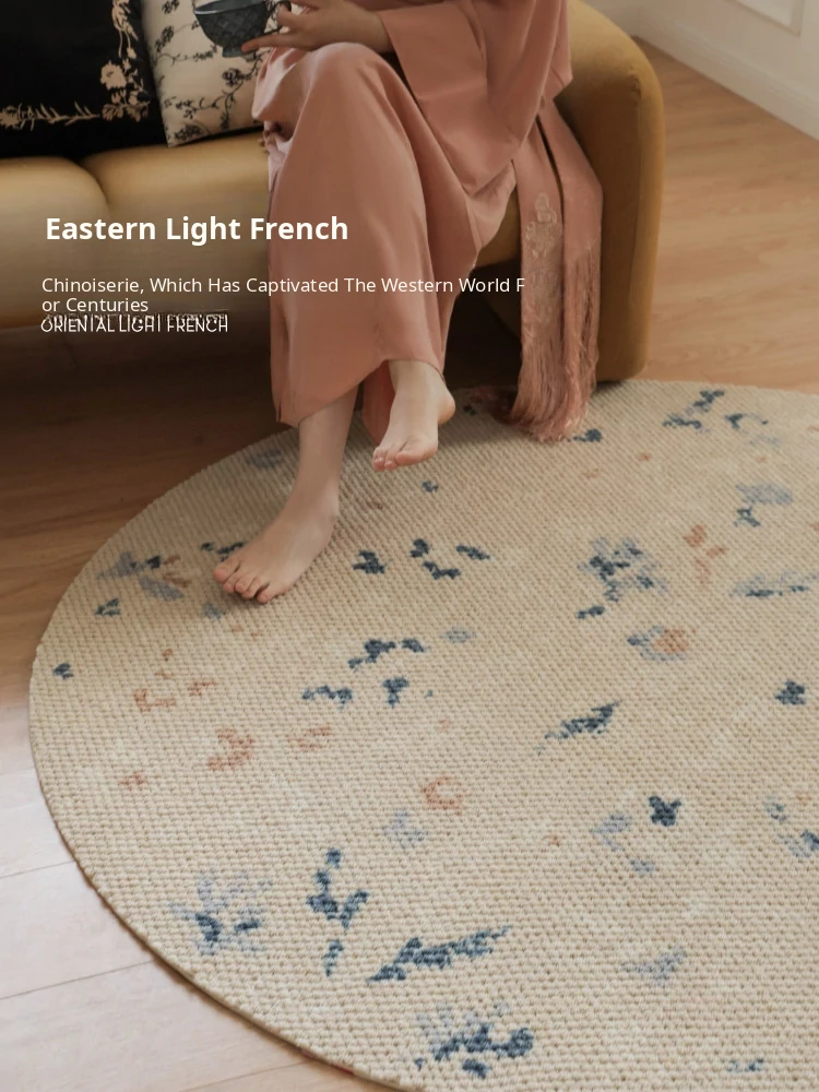 Seabreeze Mirror Flower Moonlight Wool Carpet - Elegant Round Area Rug for French Style Walk-in Closet, Bedroom, or Living Room - Luxurious Touch for Your Home Decor