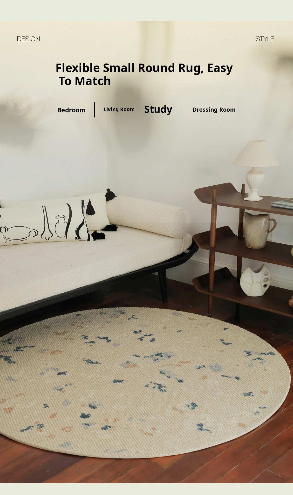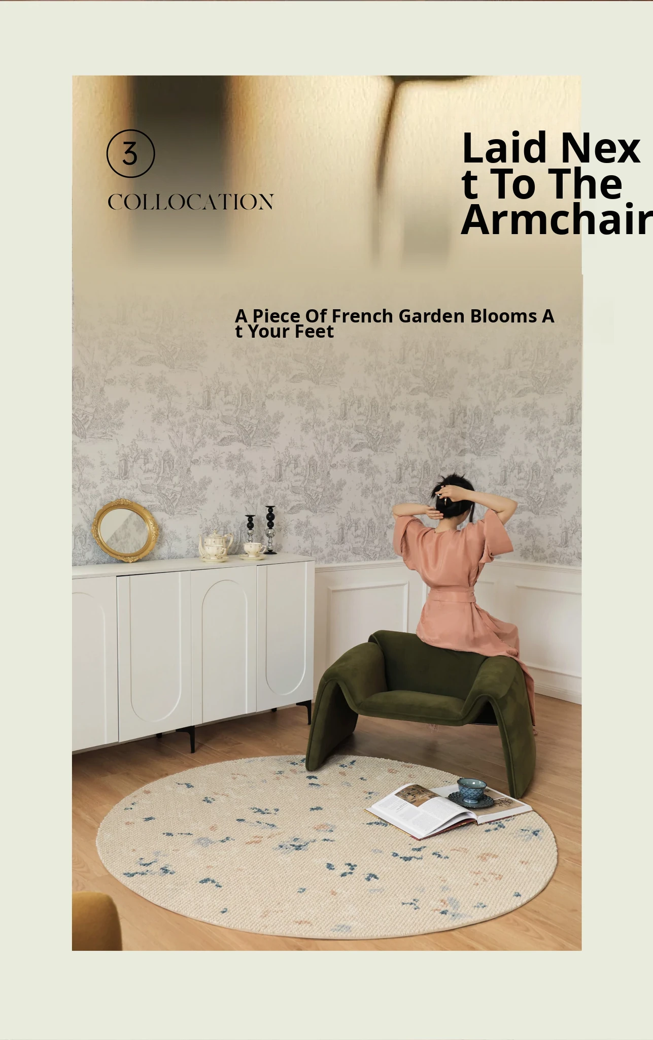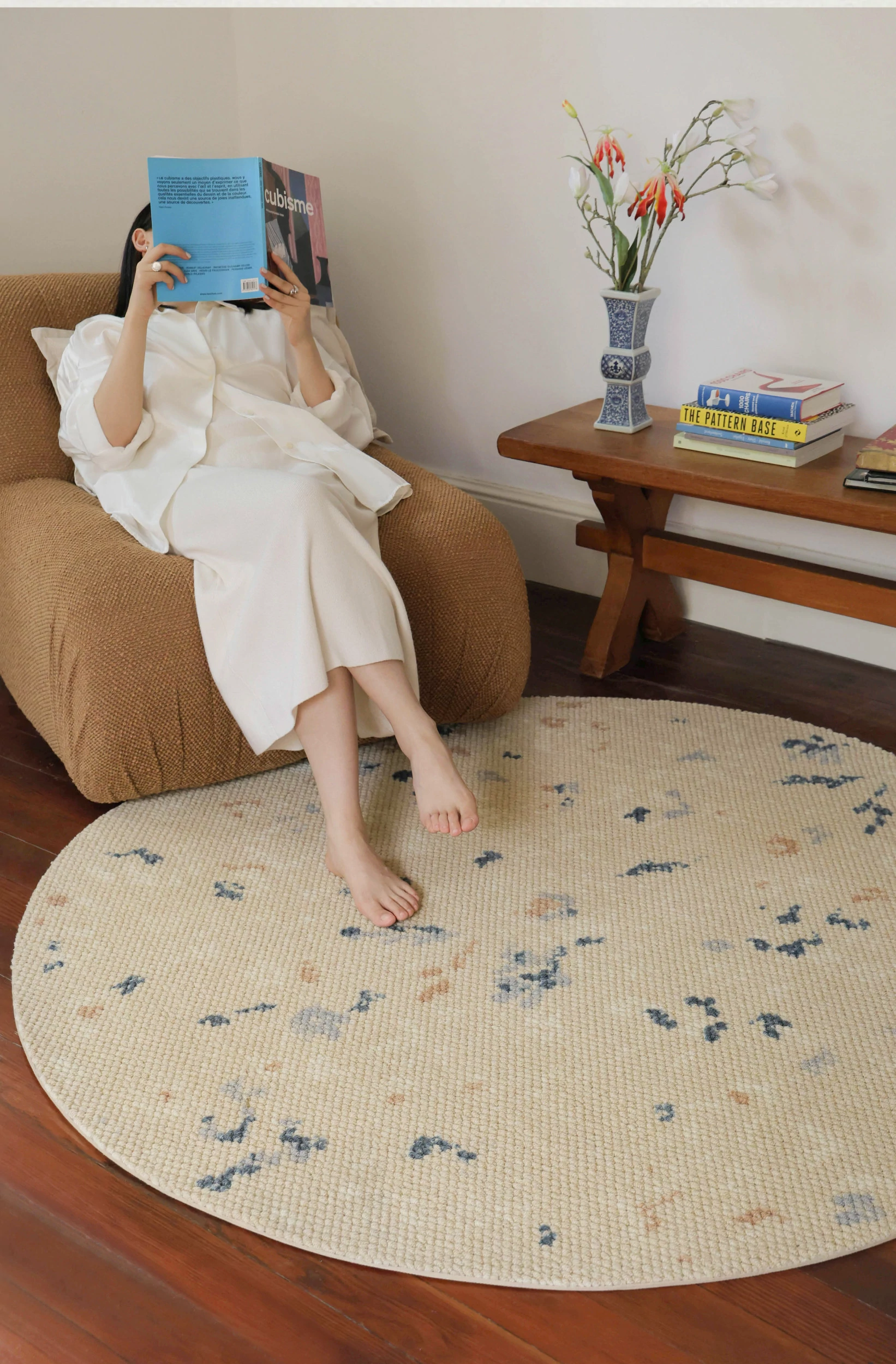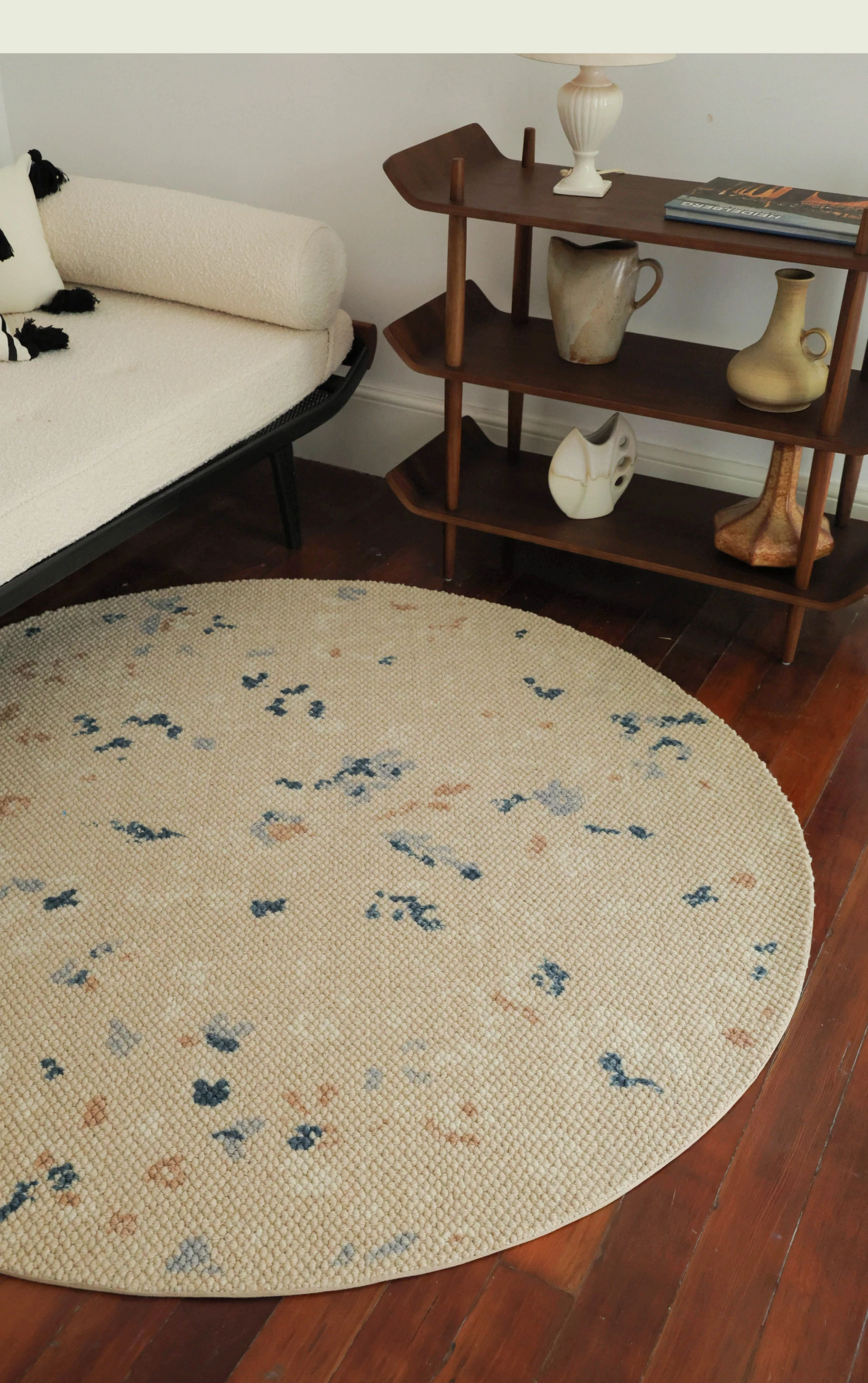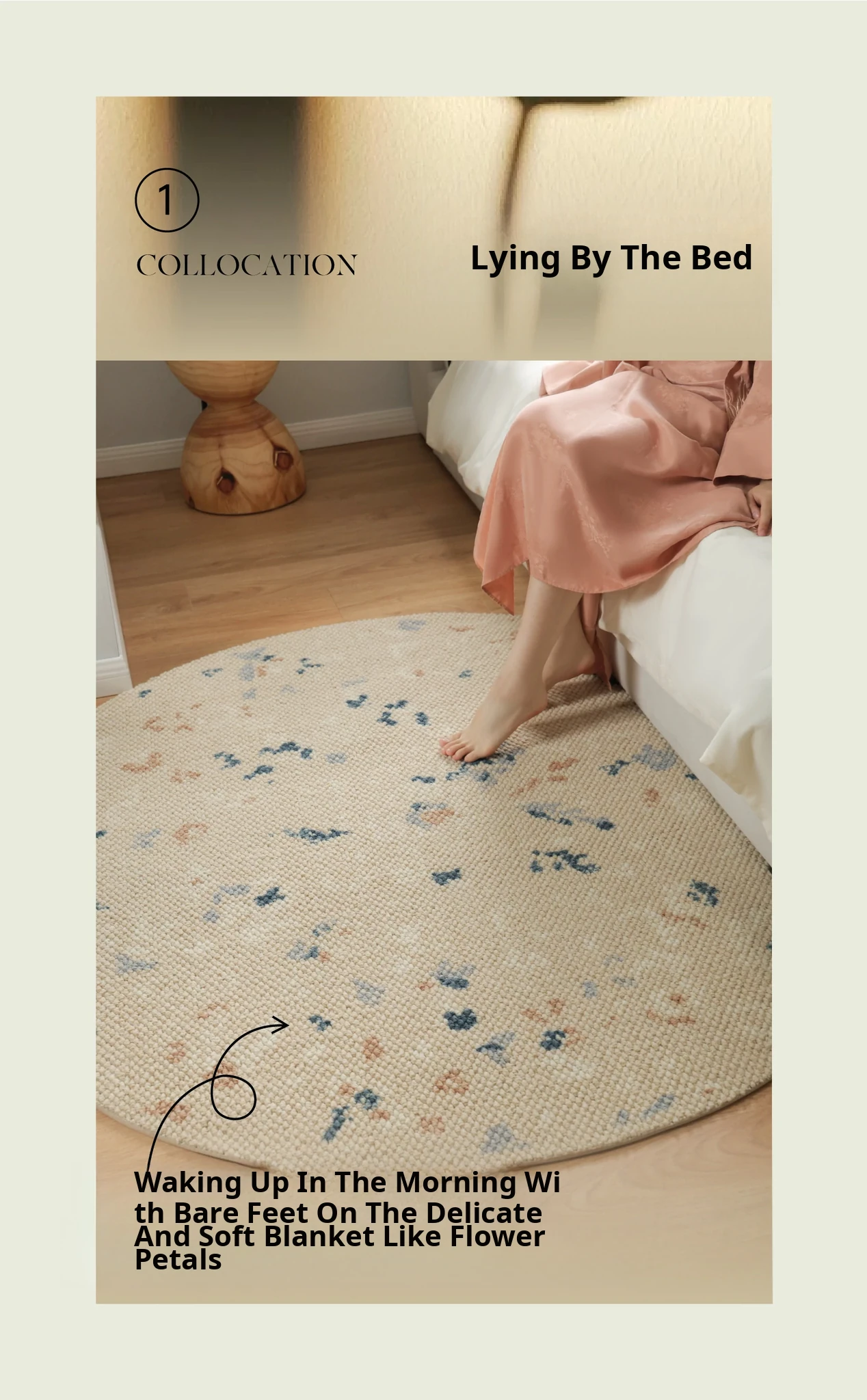 Seabreeze Mirror Flower Moonlight Wool Carpet - Elegant Round Area Rug for French Style Walk-in Closet, Bedroom, or Living Room - Luxurious Touch for Your Home Decor