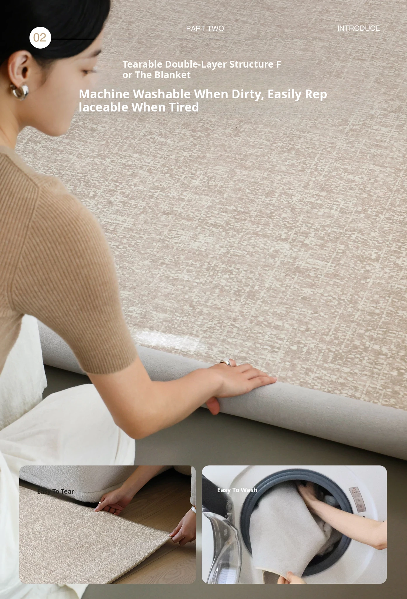 Seabreeze Venice Removable Double-layer Carpet - Minimalist Luxury, Machine Washable, Perfect for Bedroom and Living Room