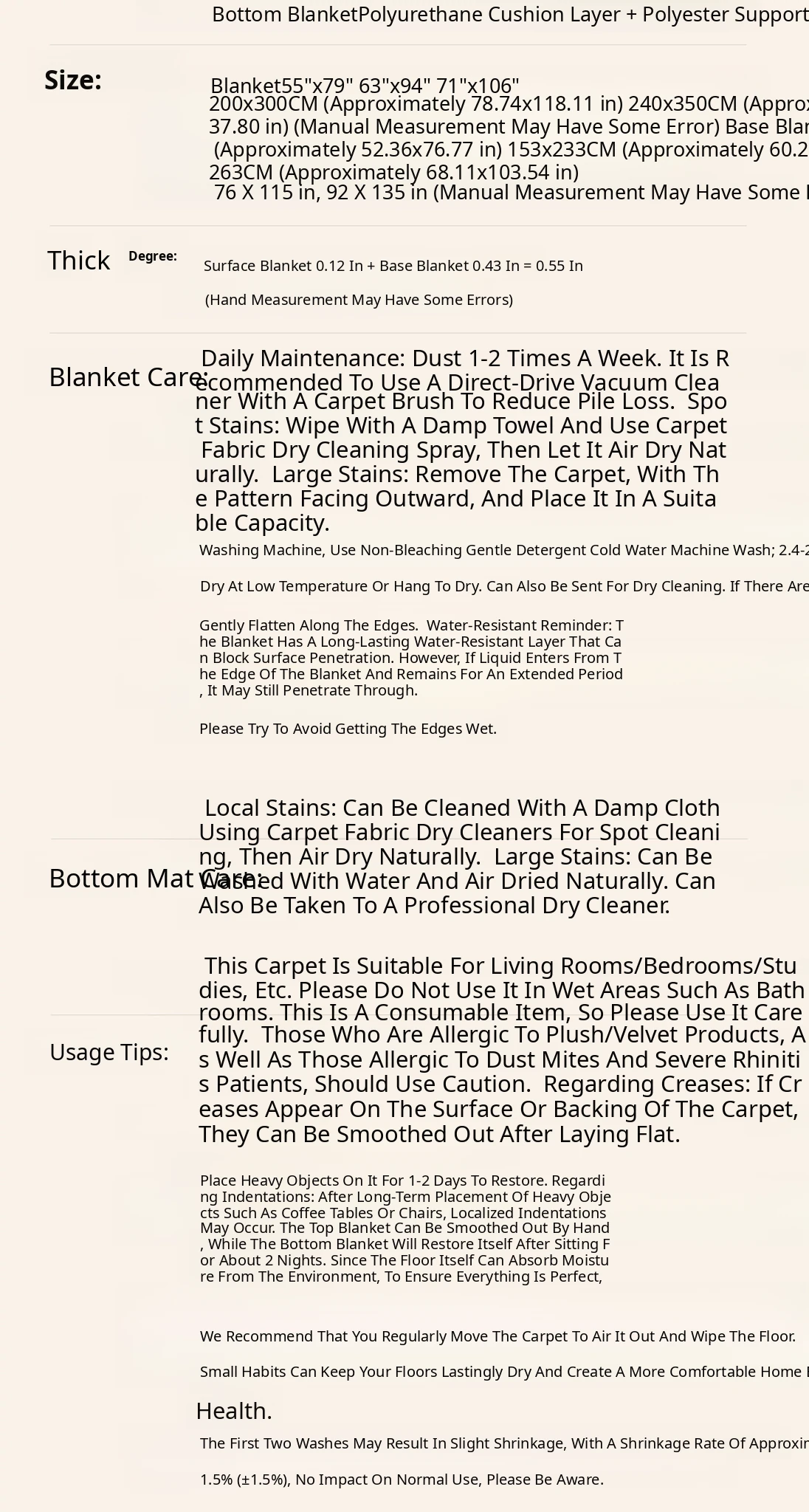 180X270Cm (Carpet Surface + 0.43in Carpet Bottom)