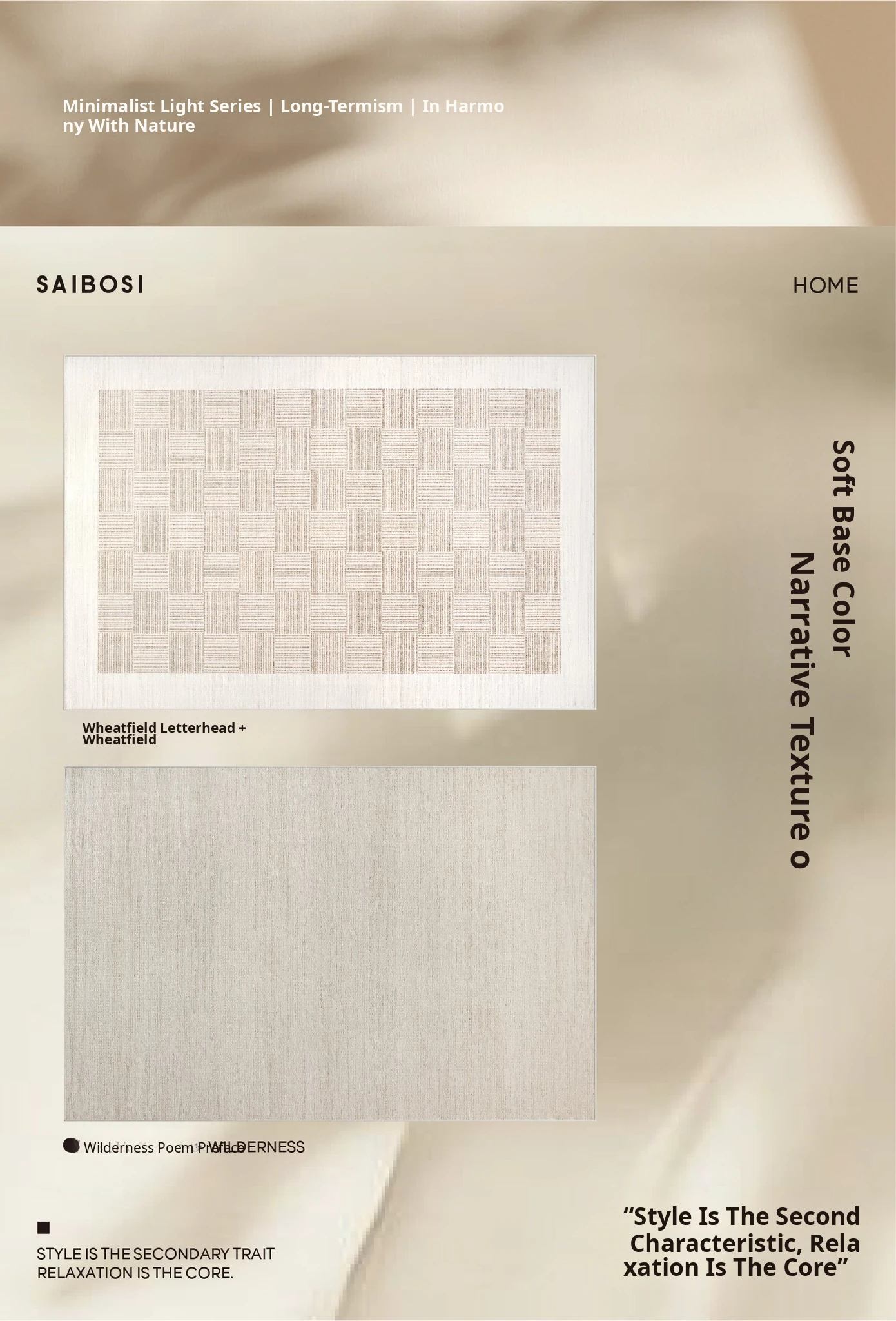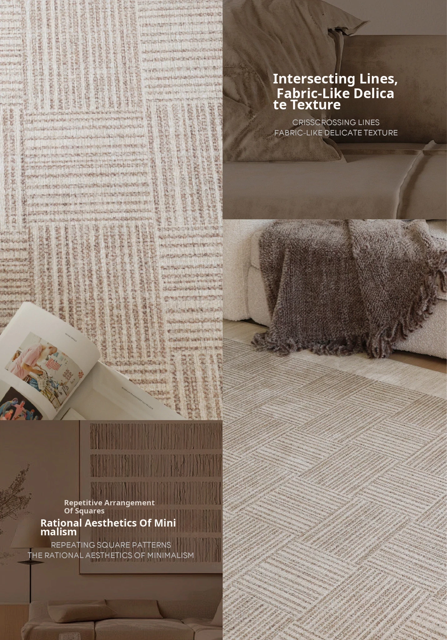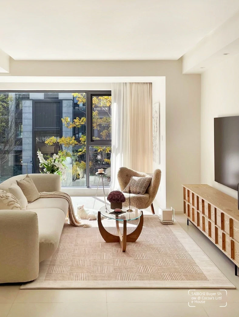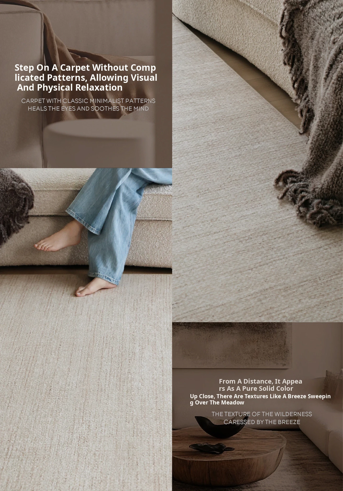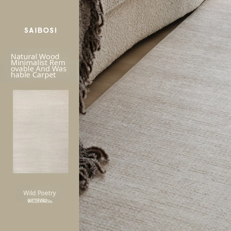 "Seabreeze Wheatfield Removable Double-Layer Carpet - Luxury & Minimalist Design for Living Room Sofa, Machine Washable, Perfect for a Cozy Natural Wood Aesthetic"