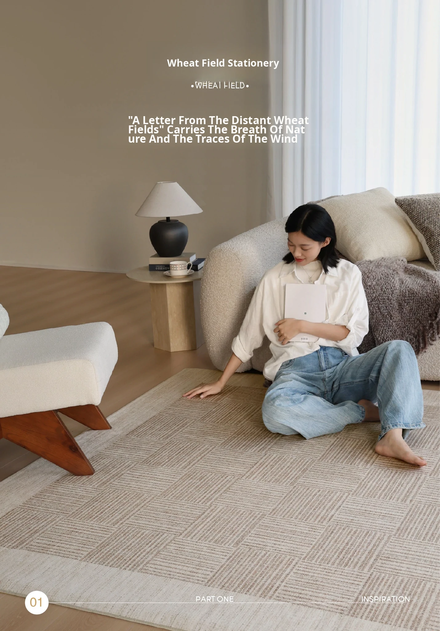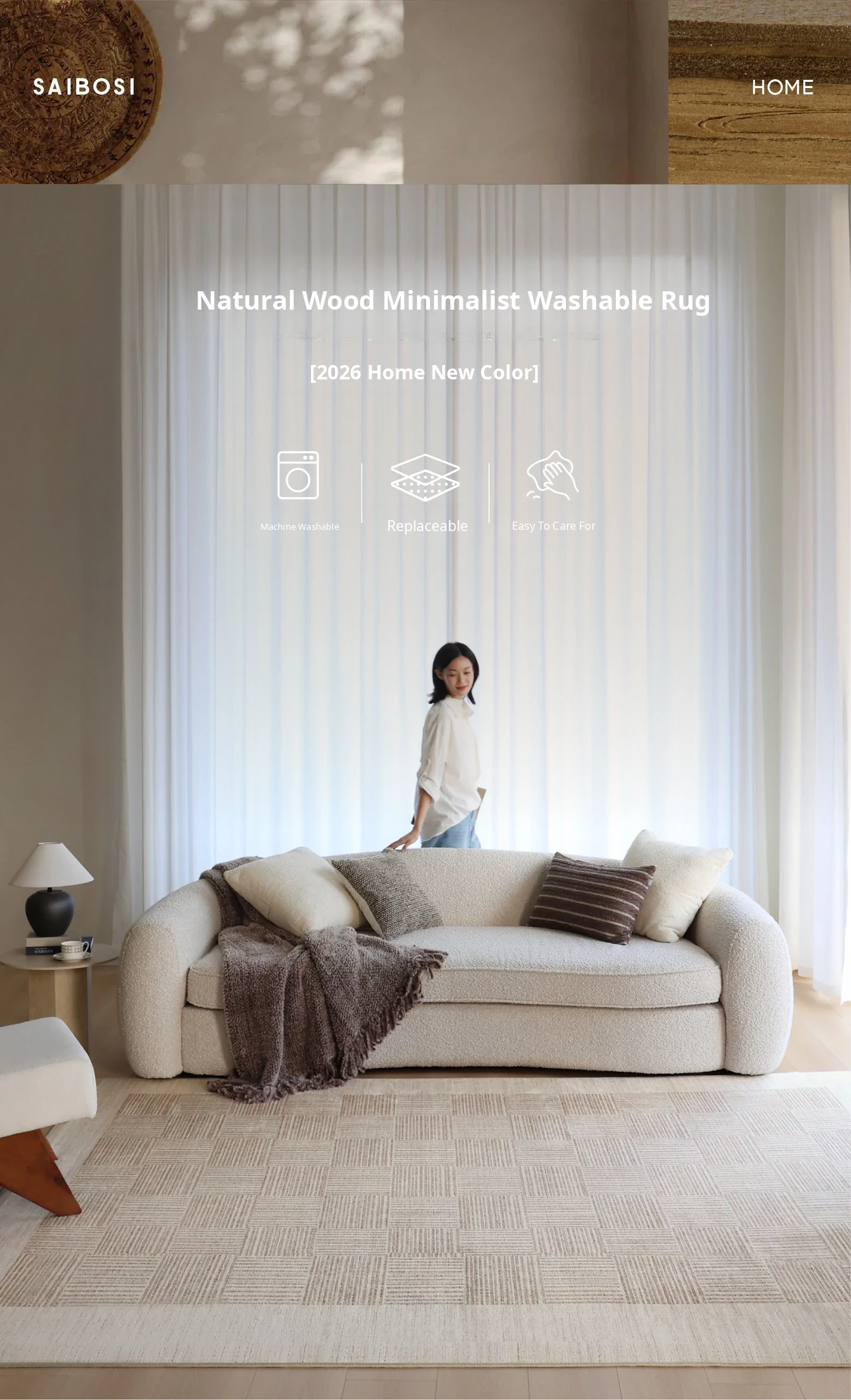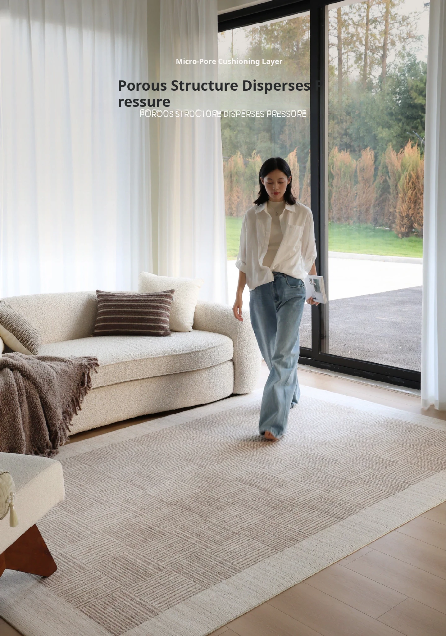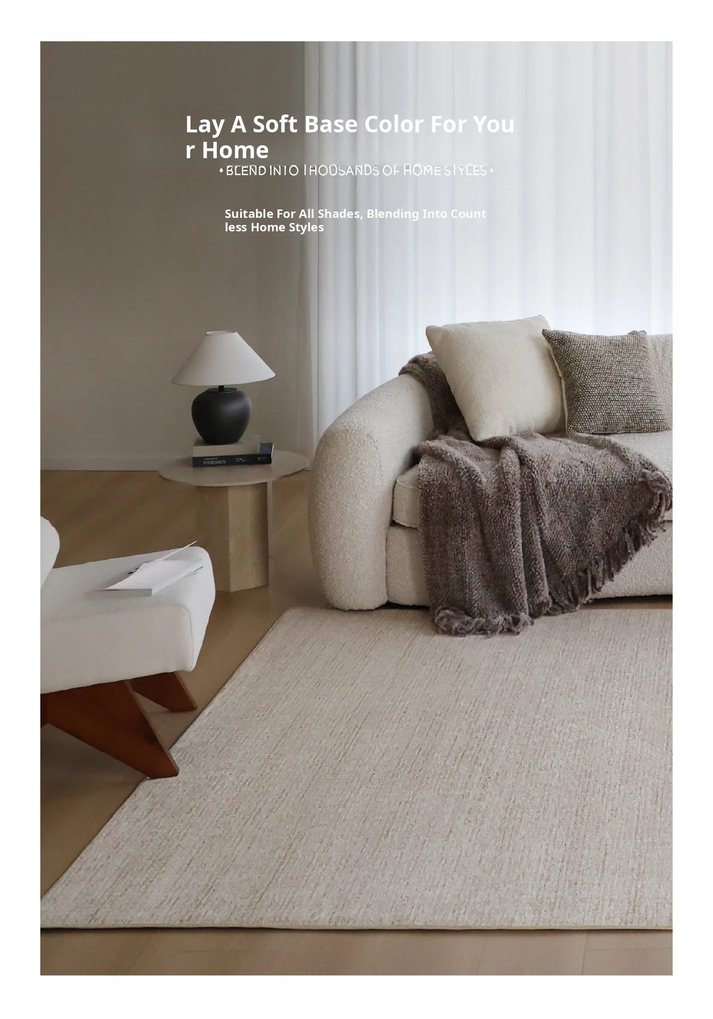 "Seabreeze Wheatfield Removable Double-Layer Carpet - Luxury & Minimalist Design for Living Room Sofa, Machine Washable, Perfect for a Cozy Natural Wood Aesthetic"
