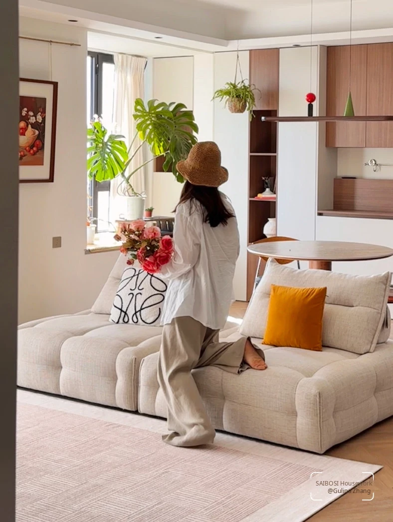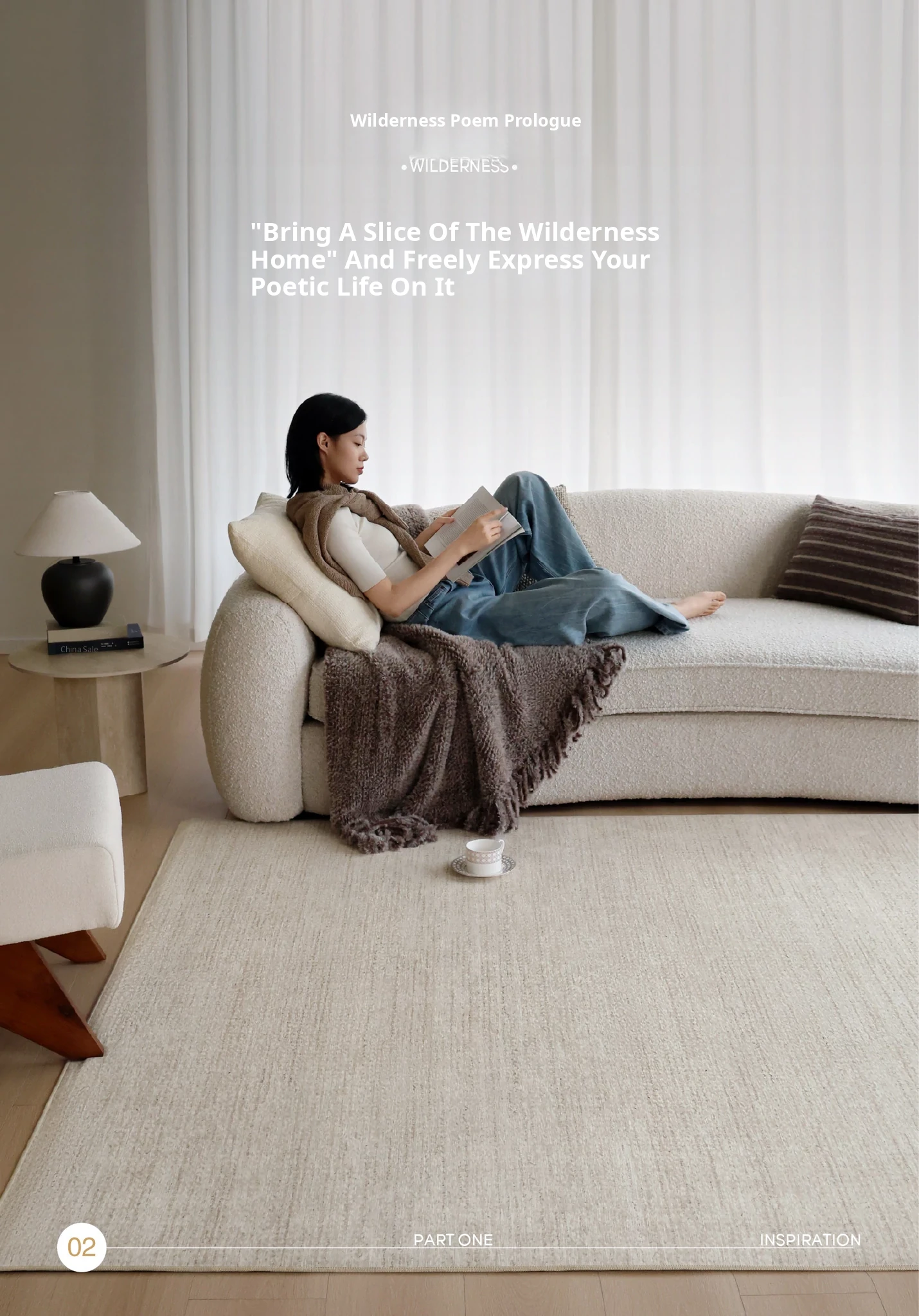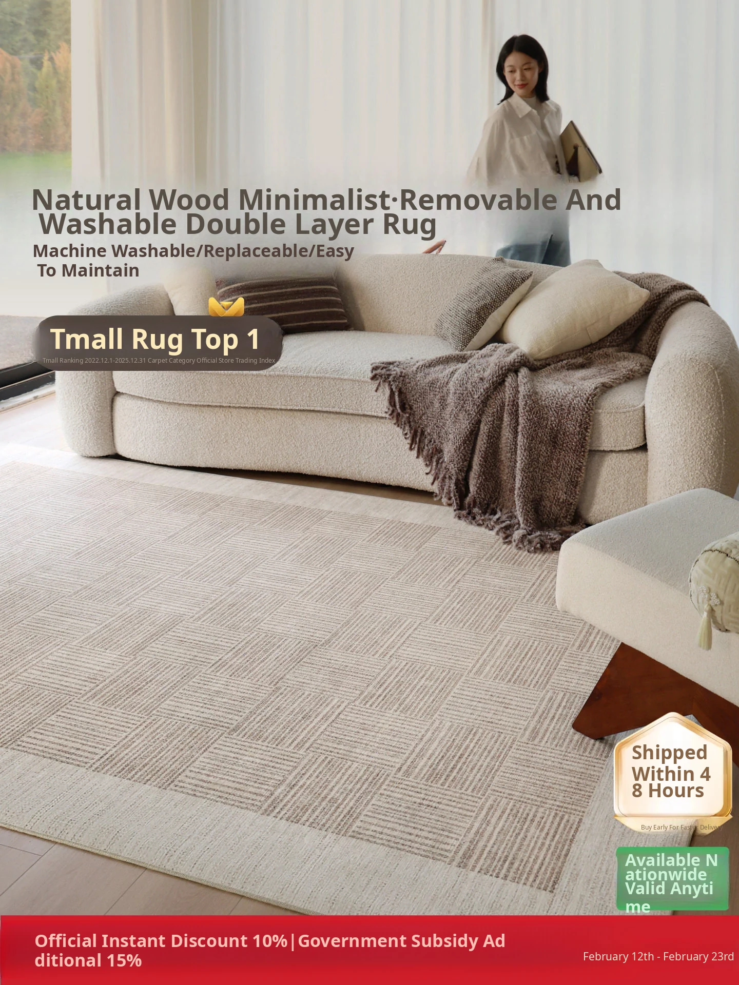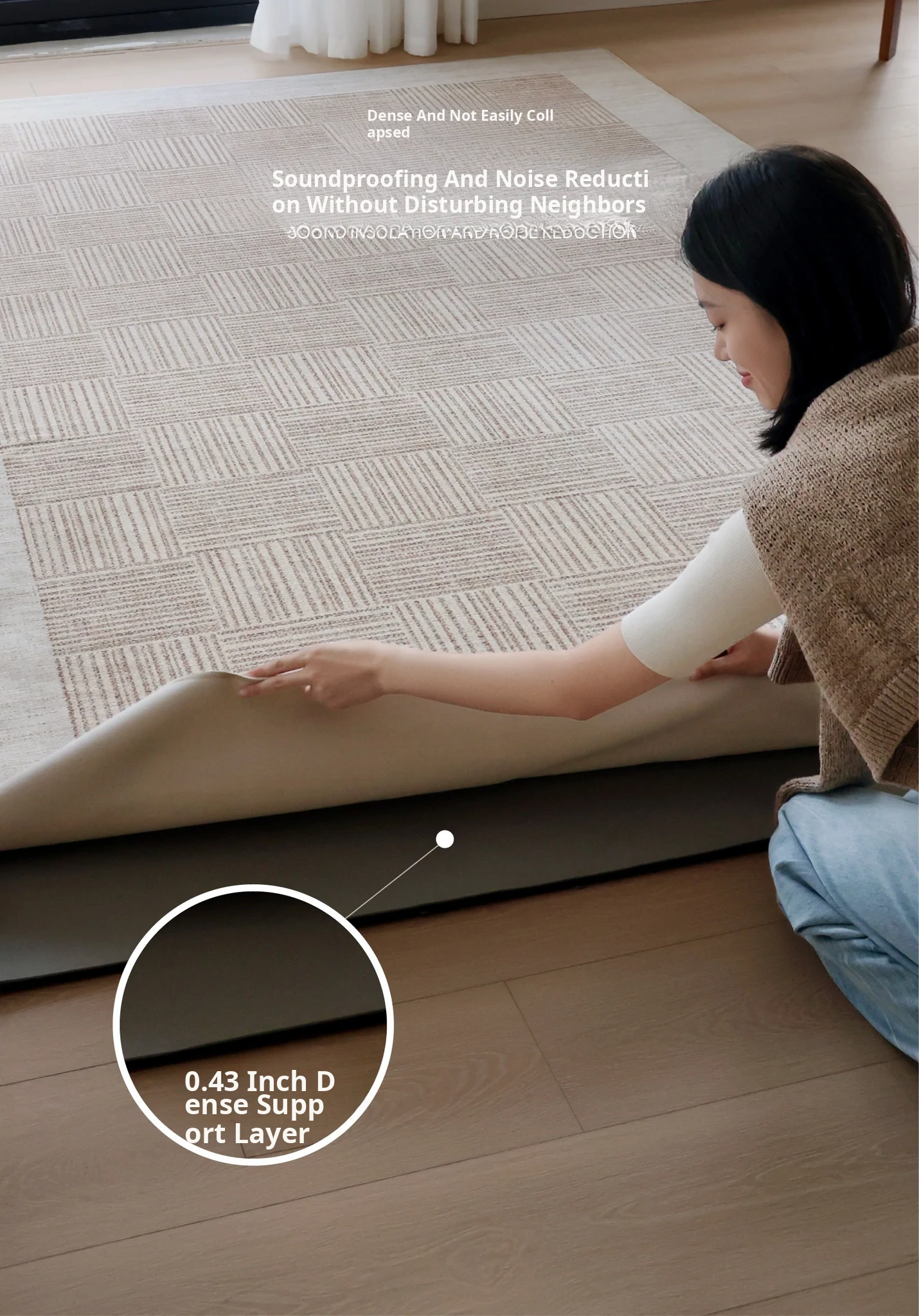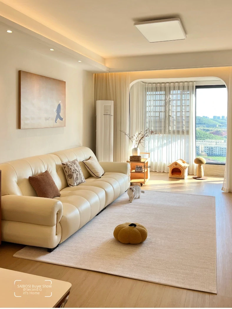 "Seabreeze Wheatfield Removable Double-Layer Carpet - Luxury & Minimalist Design for Living Room Sofa, Machine Washable, Perfect for a Cozy Natural Wood Aesthetic"