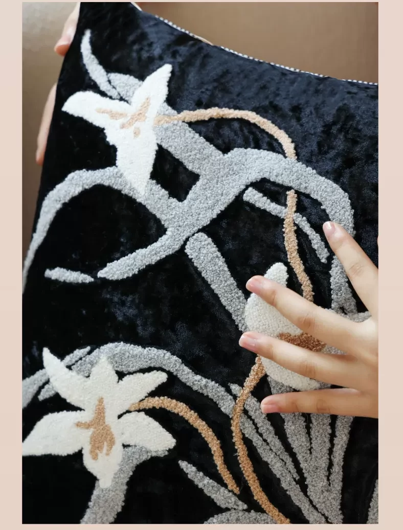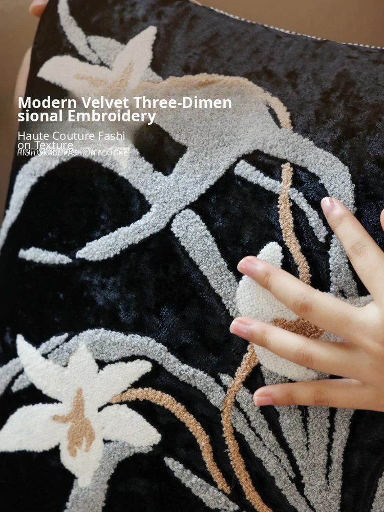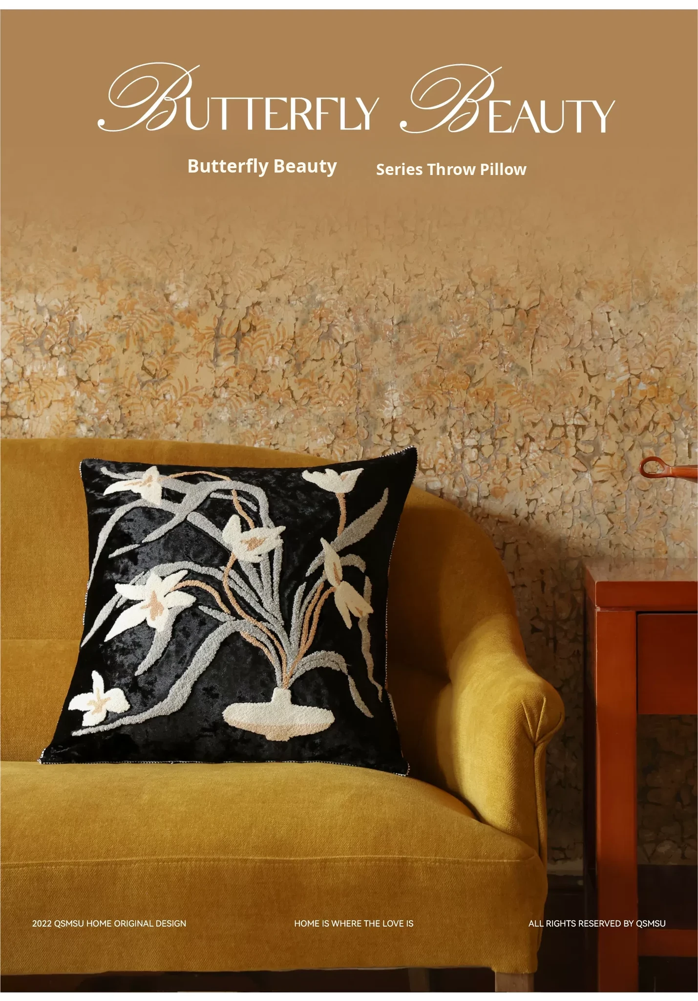 Seibos | Luxurious Velvet Butterfly Beauty Throw Pillow - Exquisite French Style Cushion for Living Room with Oriental Elegance and Intricate Embroidery