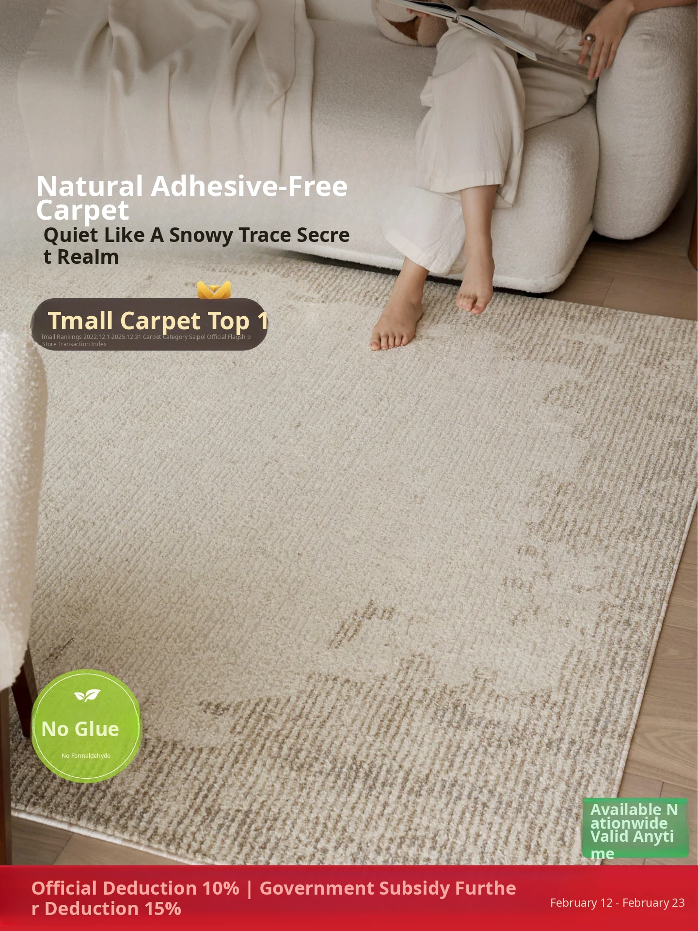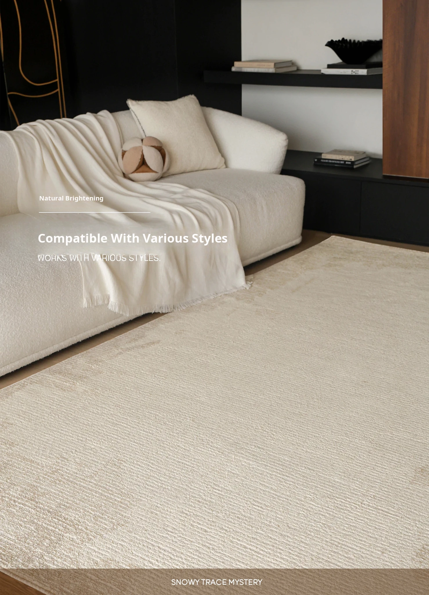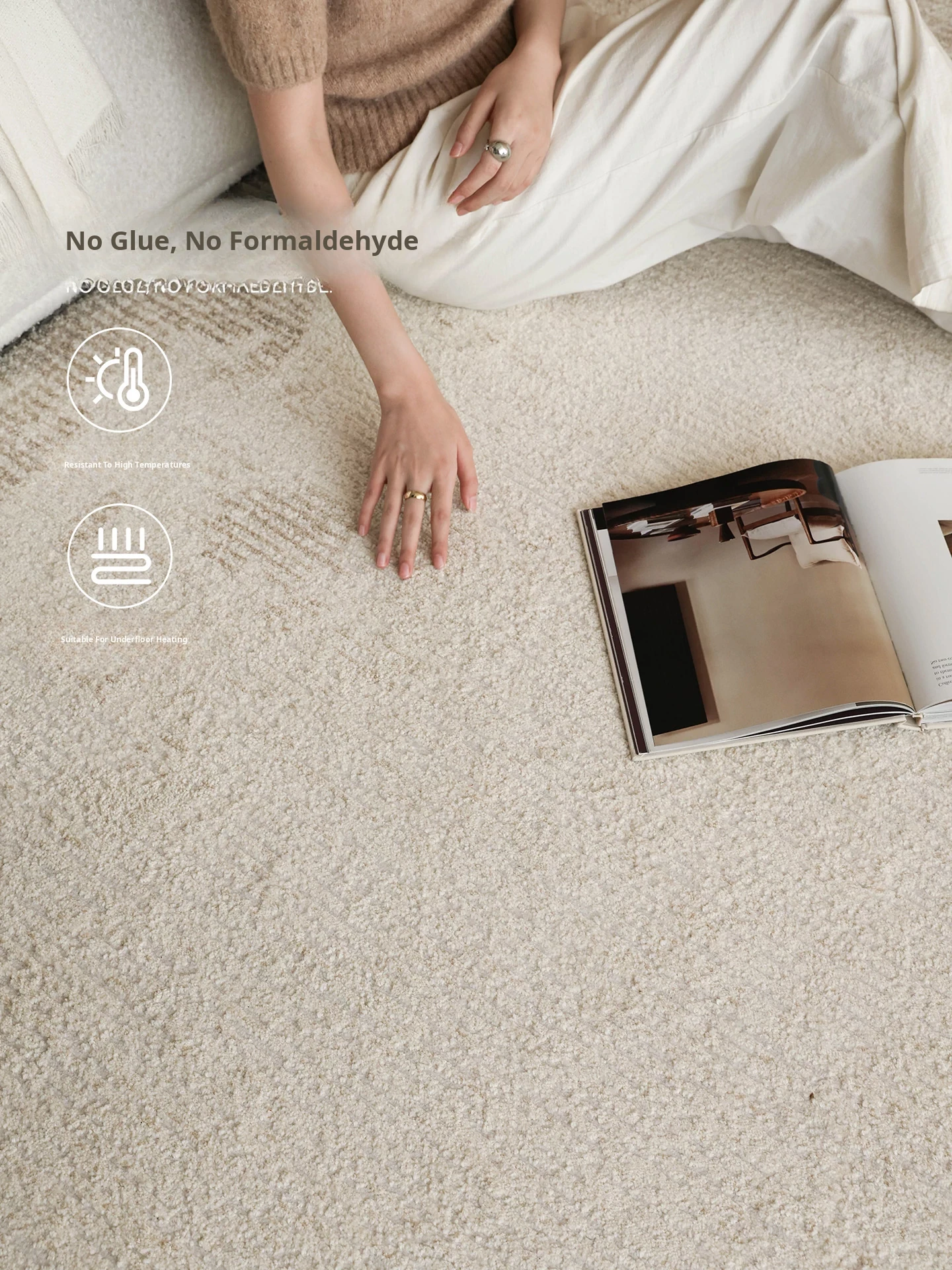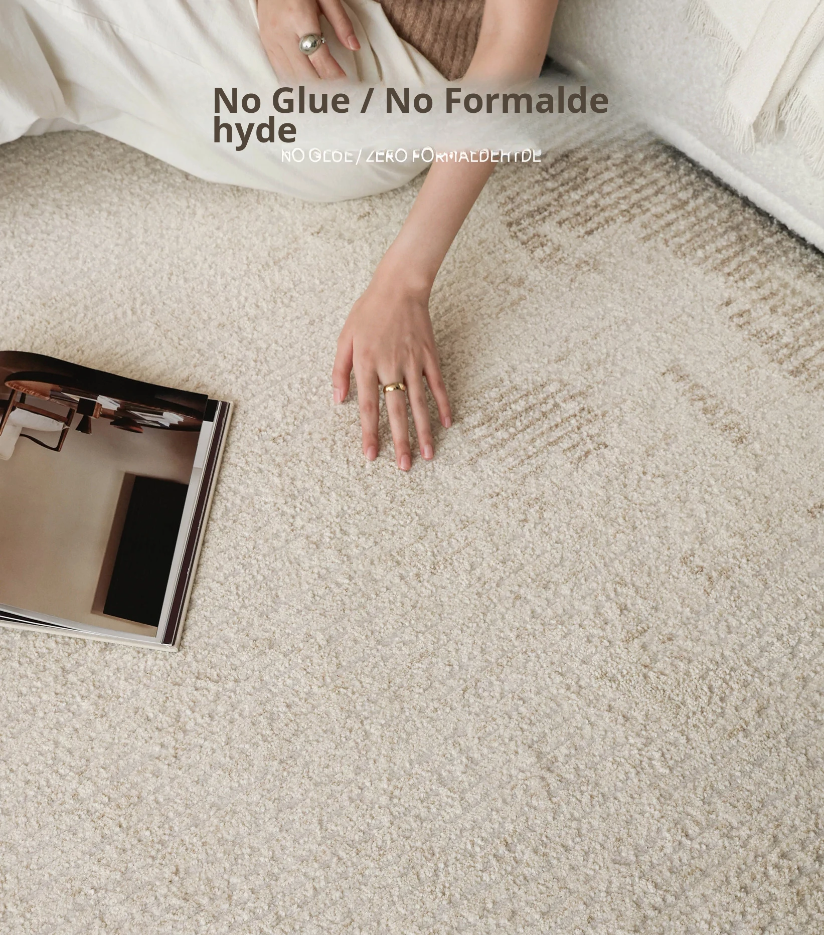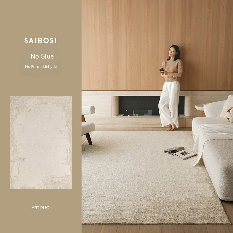 Seibos Snowy Secret Realm Non-Adhesive Carpet - Formaldehyde-Free, 3D Embossed Design, Versatile Italian Cream Style for Luxurious Bedrooms and Living Rooms.