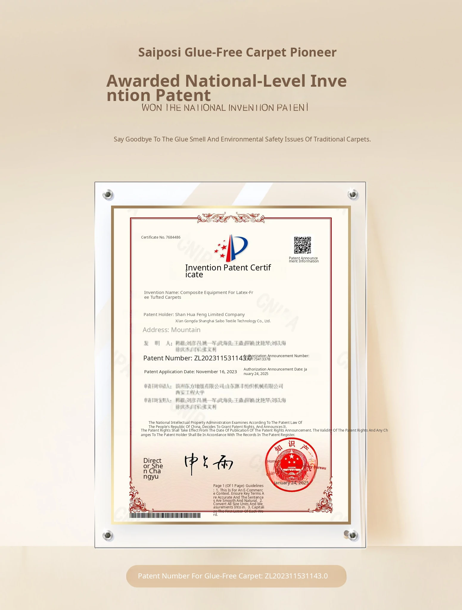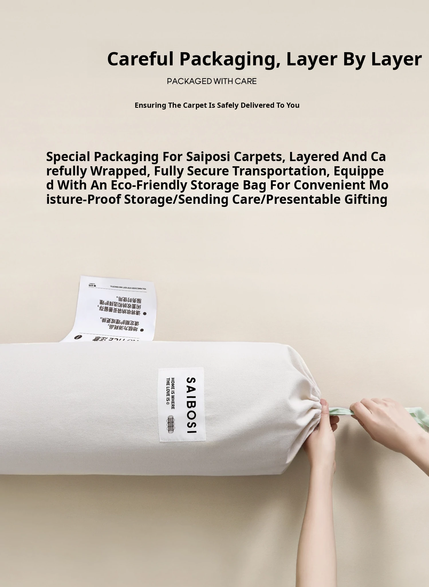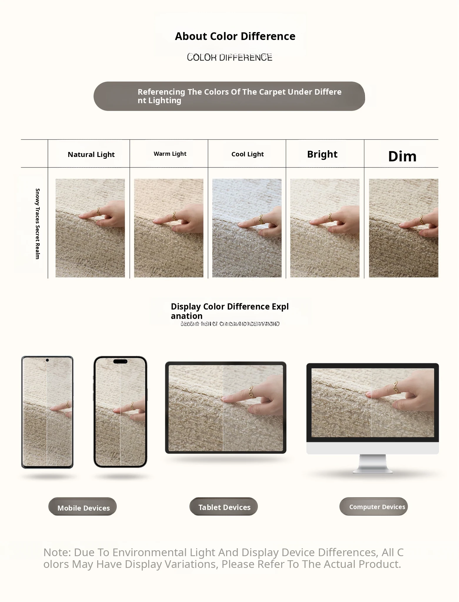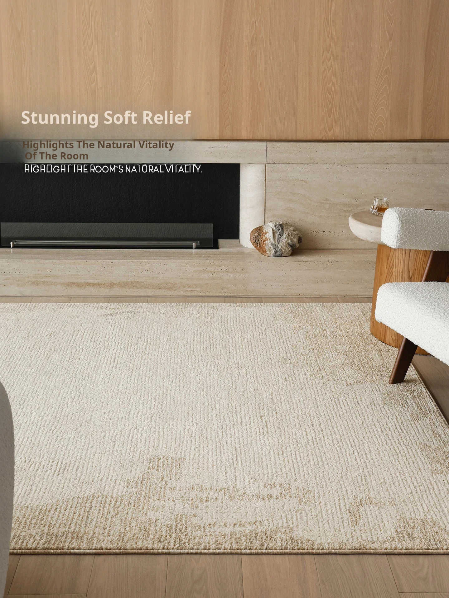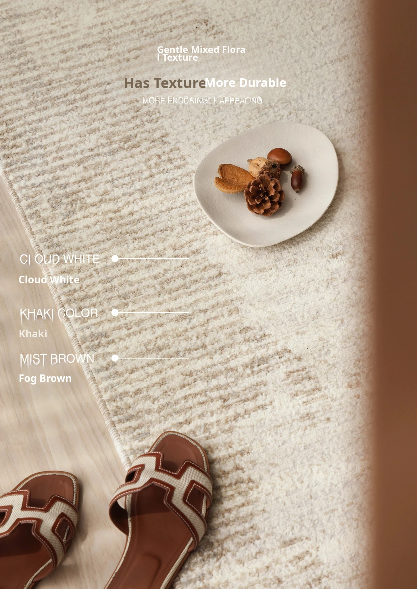 Seibos Snowy Secret Realm Non-Adhesive Carpet - Formaldehyde-Free, 3D Embossed Design, Versatile Italian Cream Style for Luxurious Bedrooms and Living Rooms.