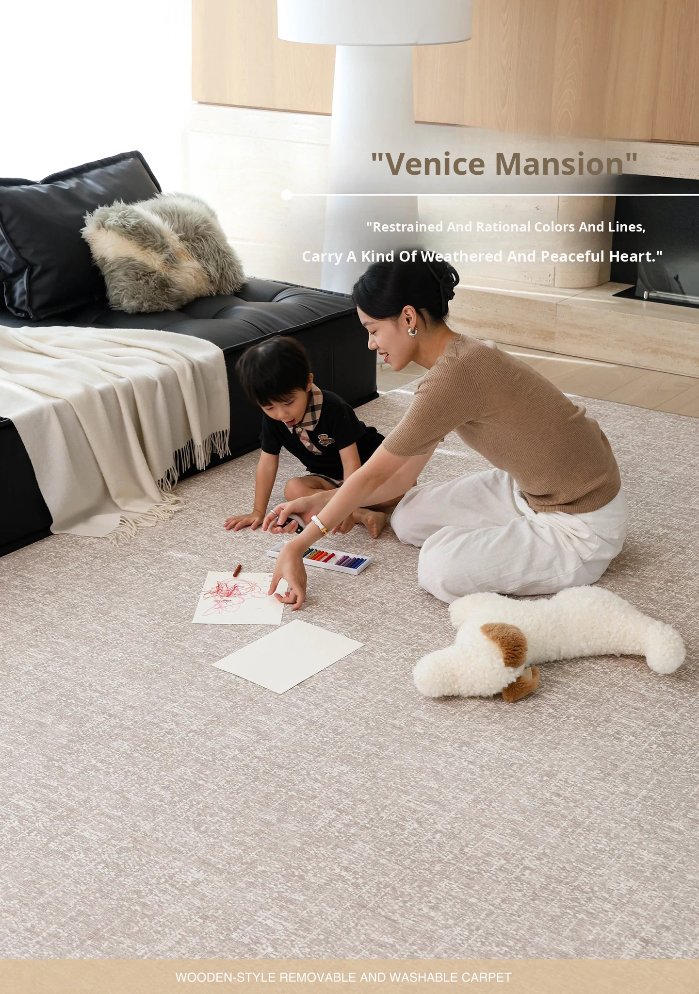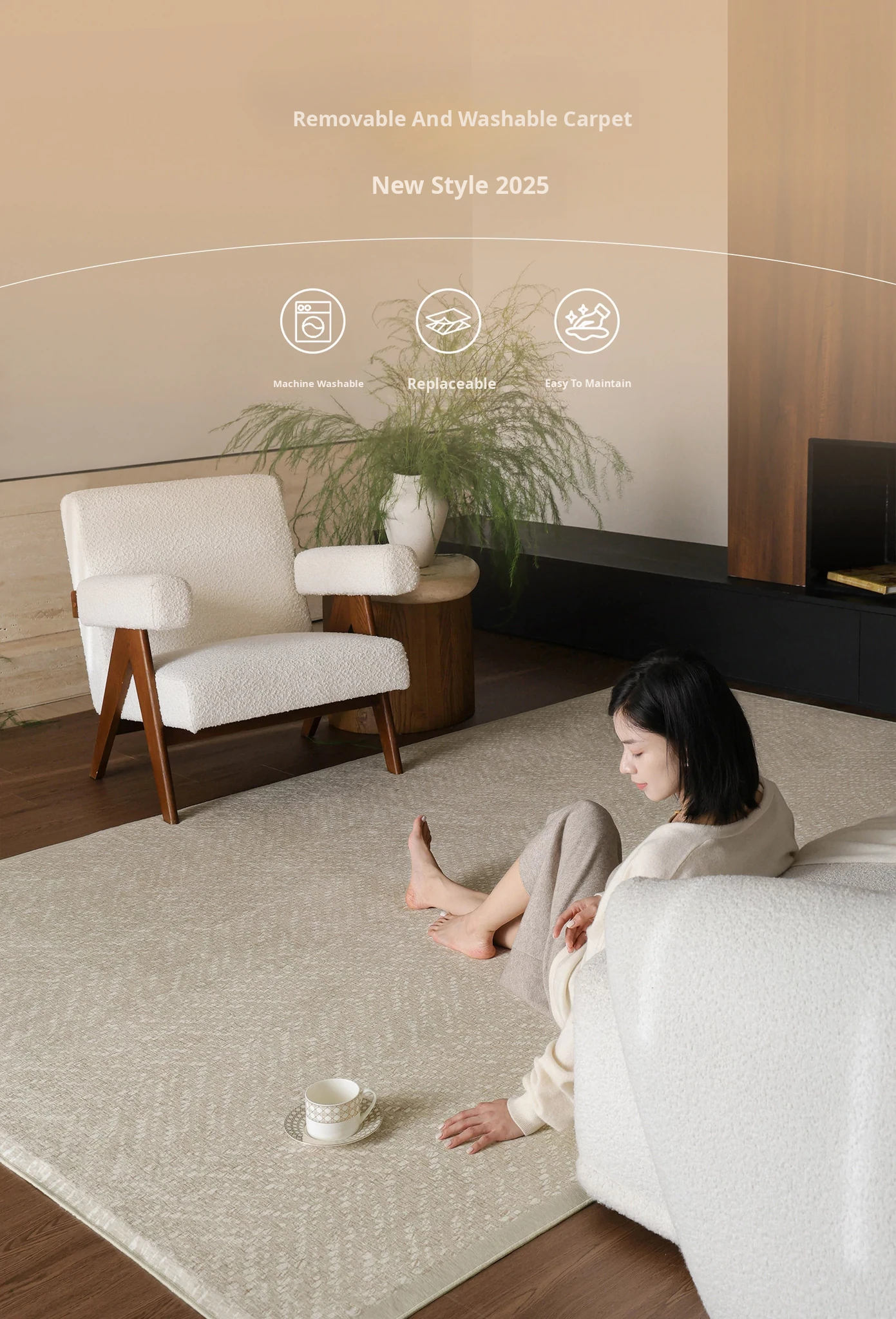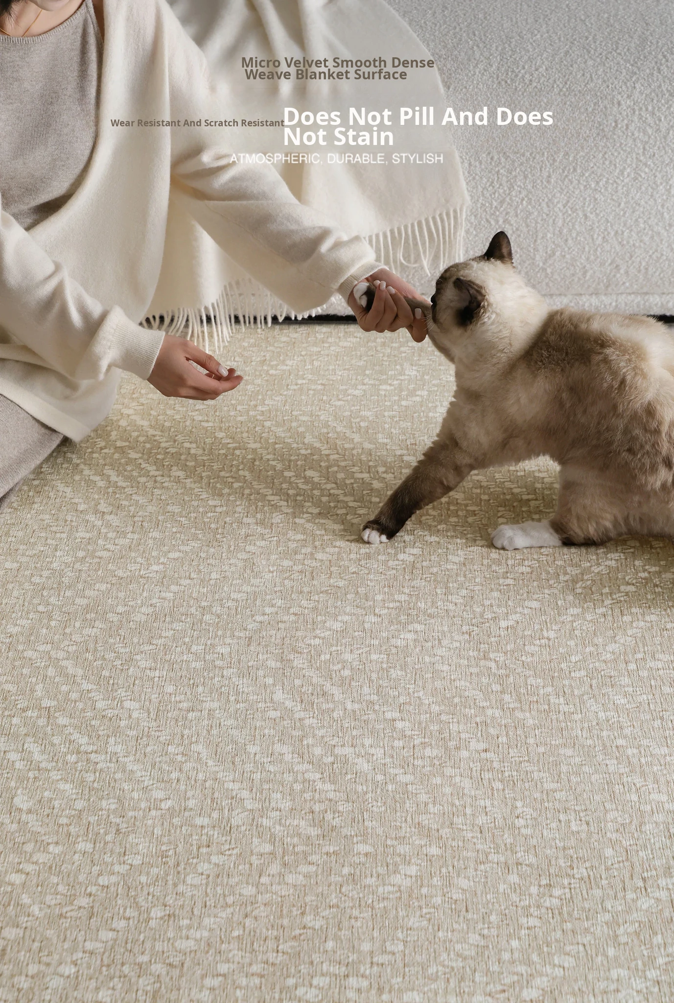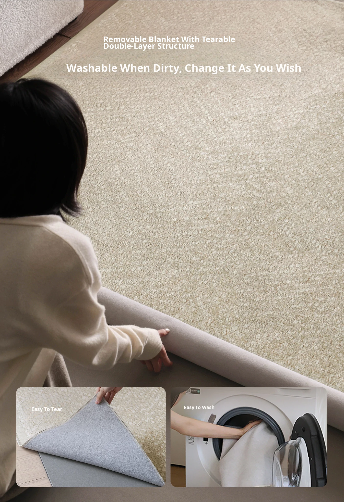 Seipos Cloud Pearl Luxury Removable Double Layer Carpet - Cat Scratch Resistant, Machine Washable, Perfect for Living Room and Bedroom Sofa Decor